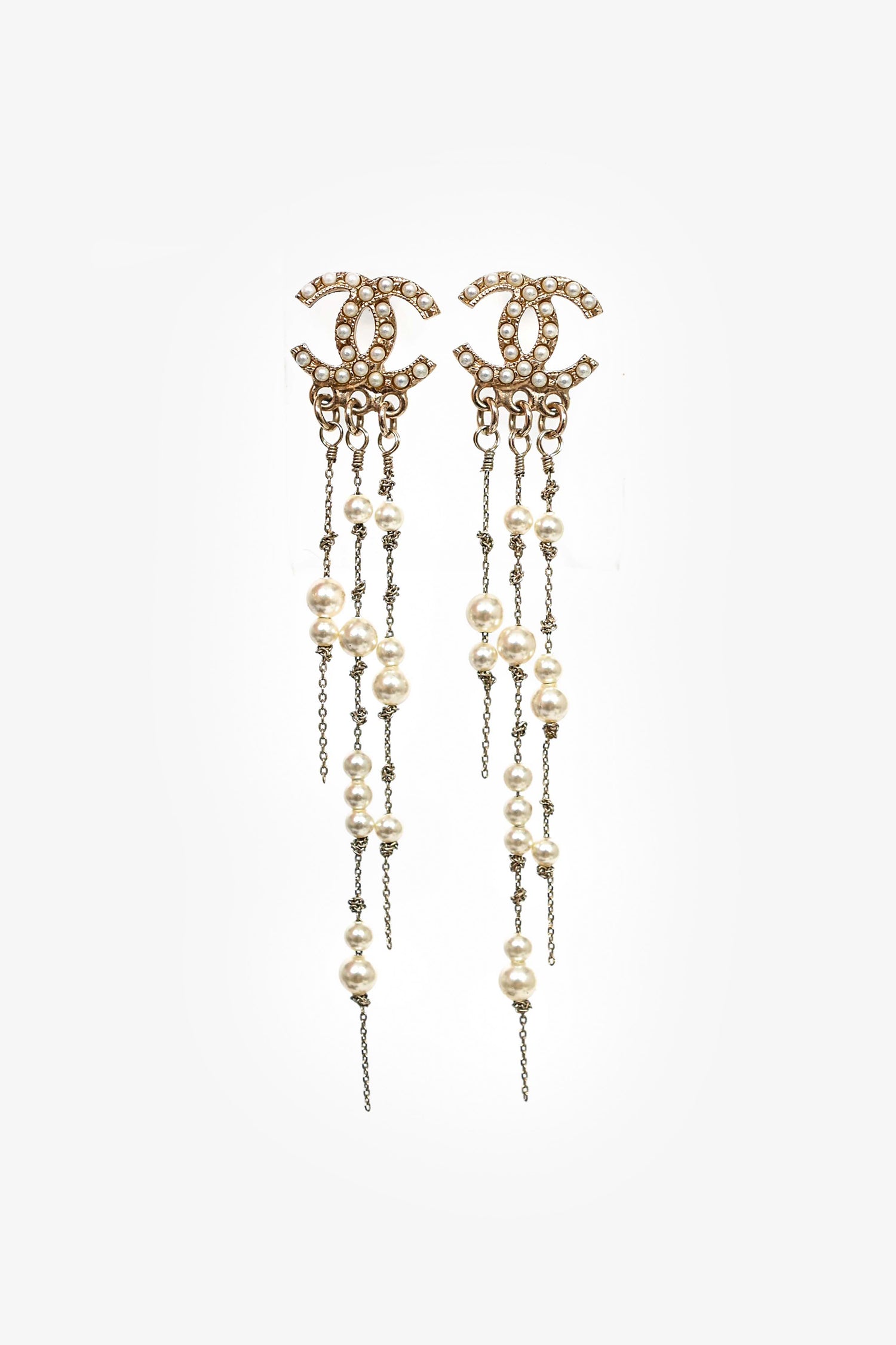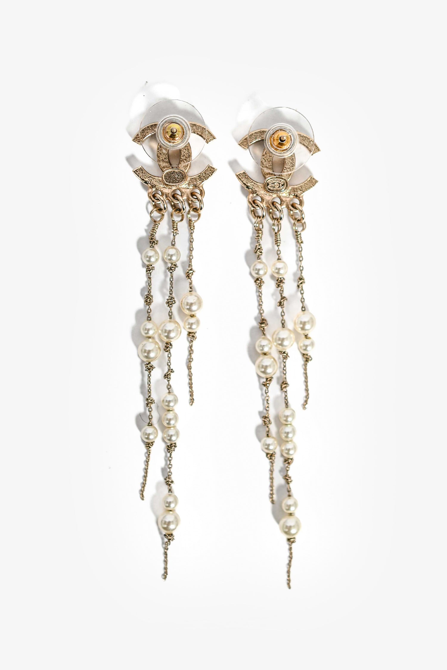 Refresh availabilityPre-Loved Chanel™ 2018 Silver Tone CC Pearl Dangly Earrings. Push-pin closure.