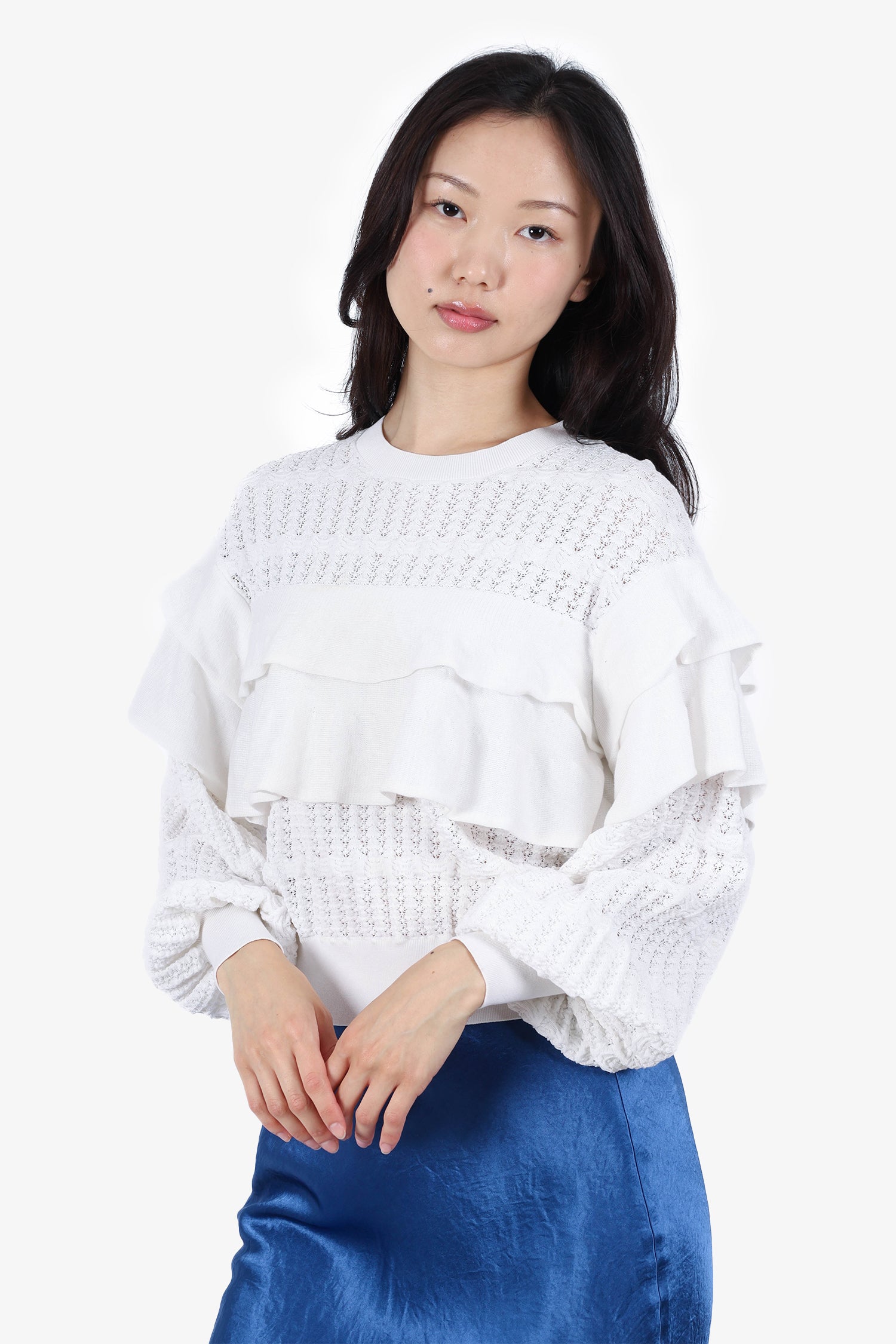 Pre-Loved Chanel™ 2018 White Ruffled Knitted Jumper Size 36