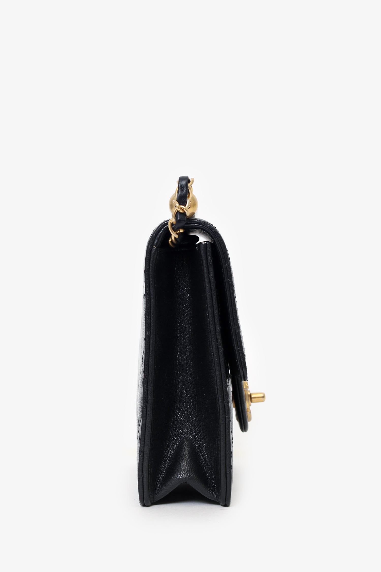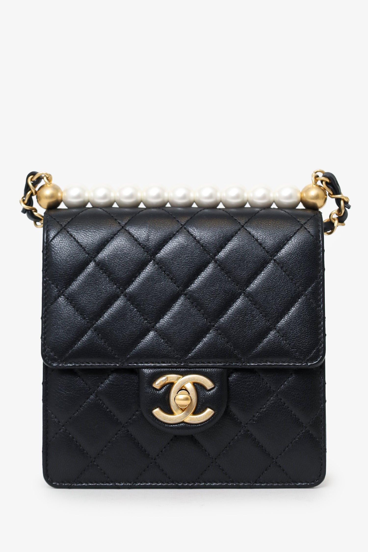 Refresh availabilityPre-Loved Chanel™ 2019 Black Leather Quilted Chic Pearl Square Flap Bag. Front fold-over flap with turn-lock closure. Chainlink crossbody strap. Lined interior. 2 interior slip pockets. Gold-tone hardware. Tonal stitching.