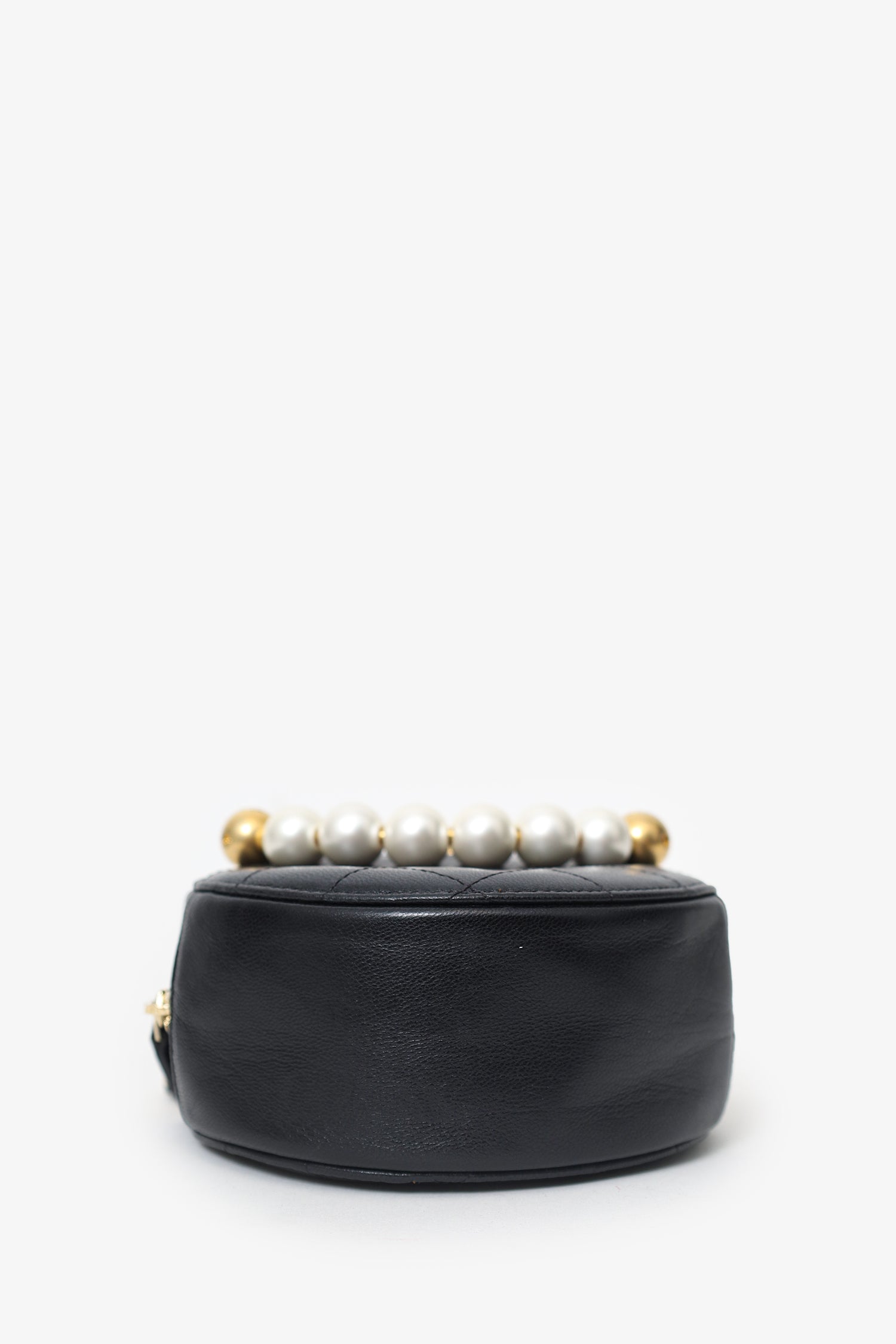 Pre-Loved Chanel™ 2019 Black Quilted Lambskin Round Chic Pearls Crossbody Bag