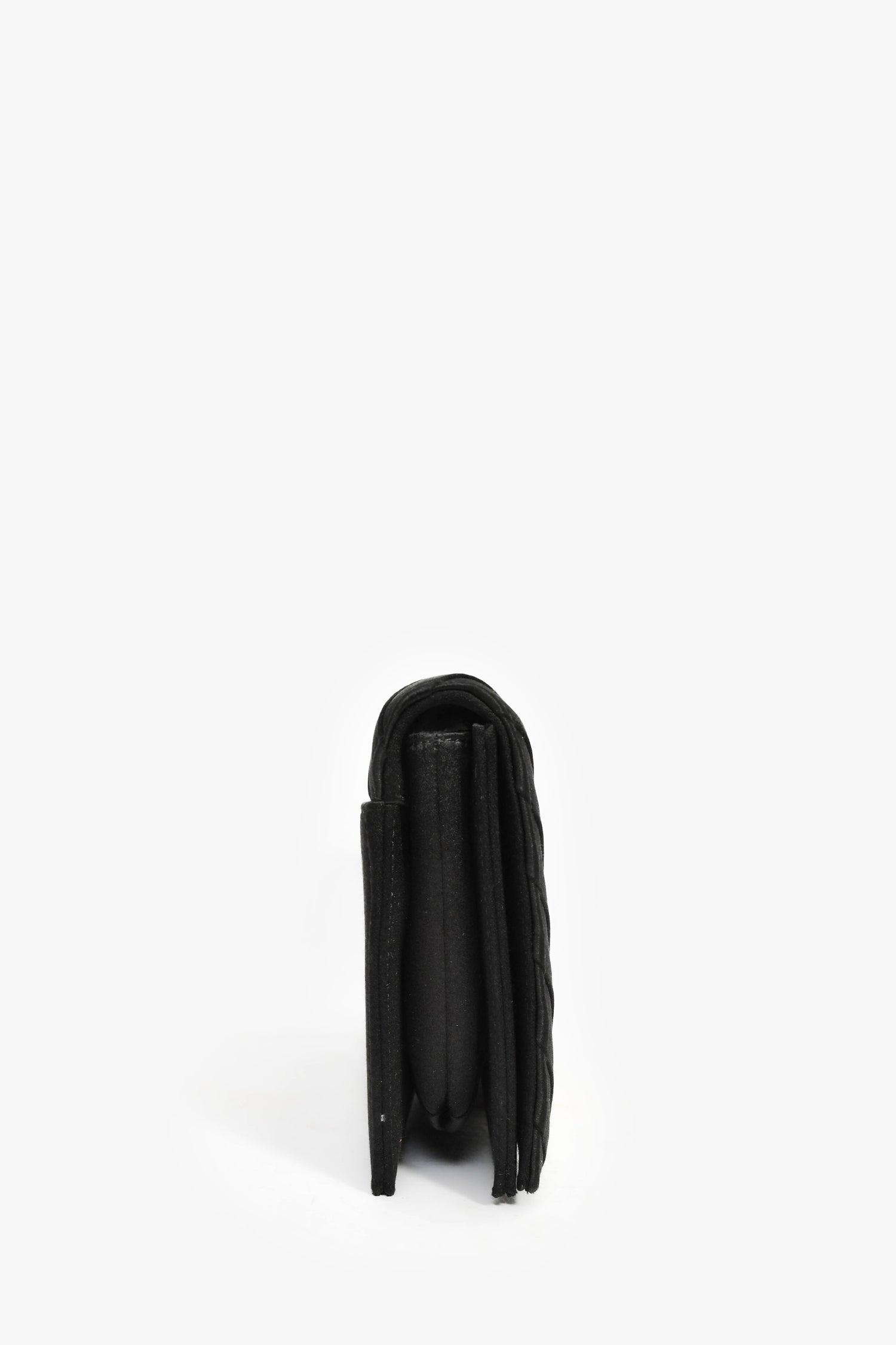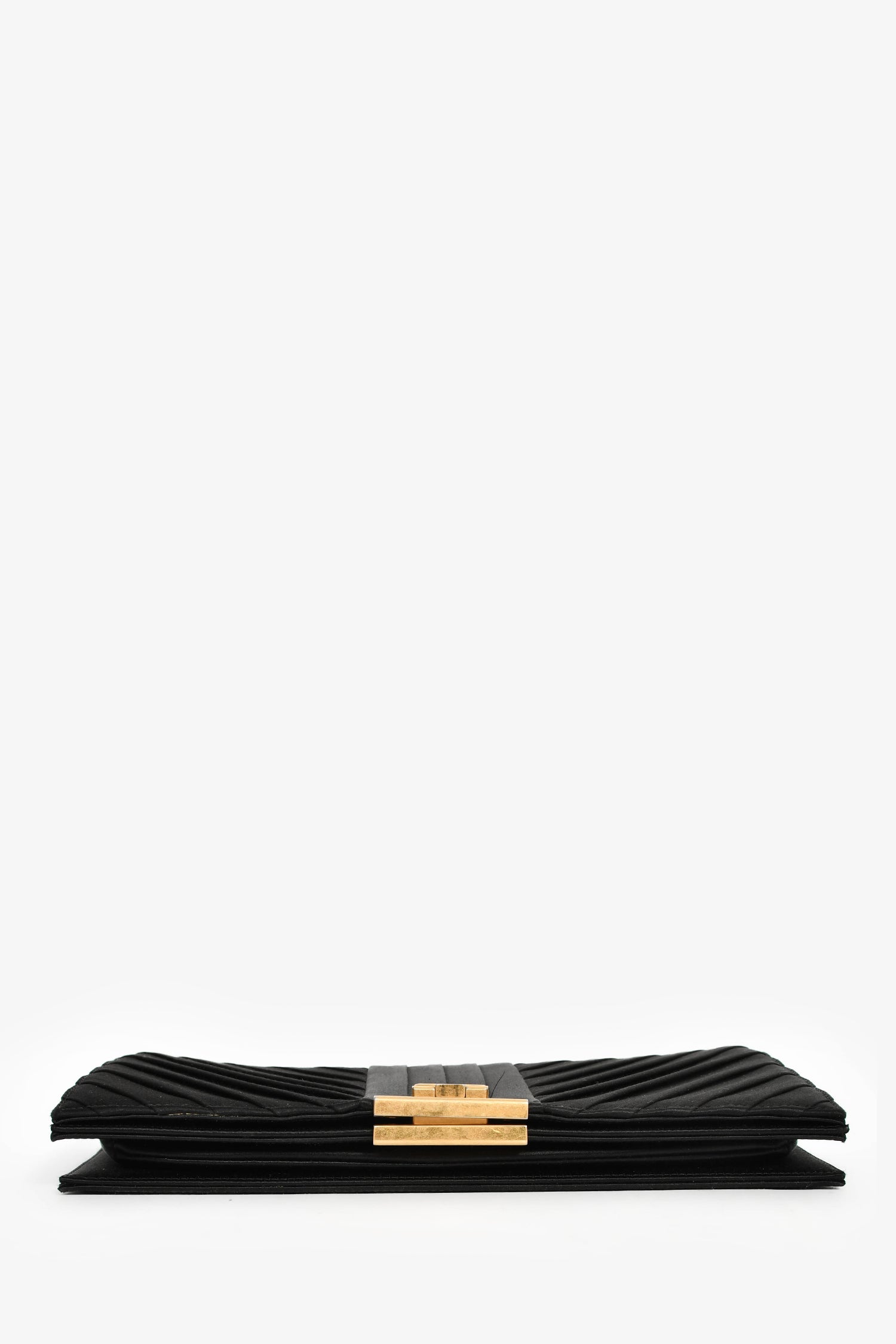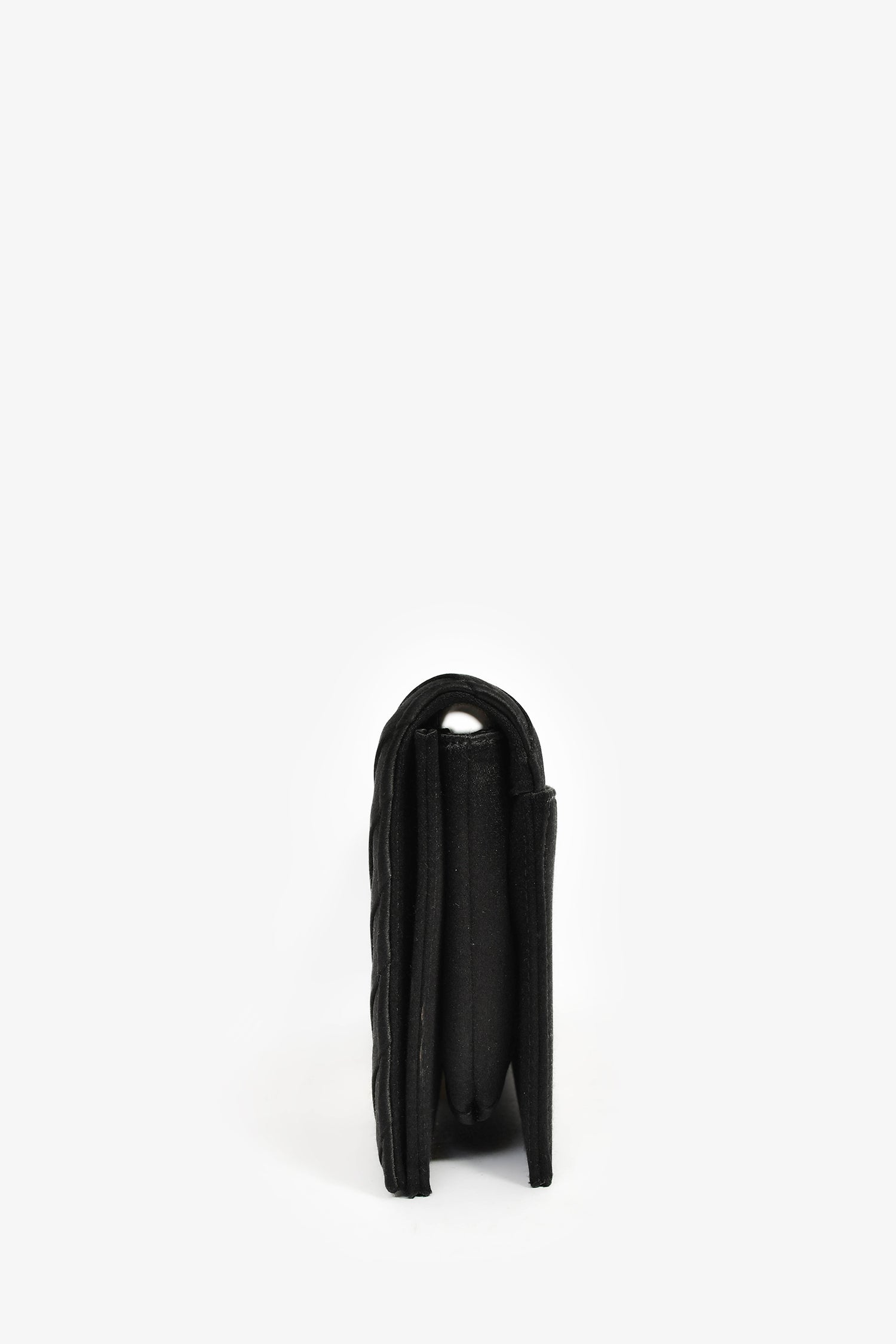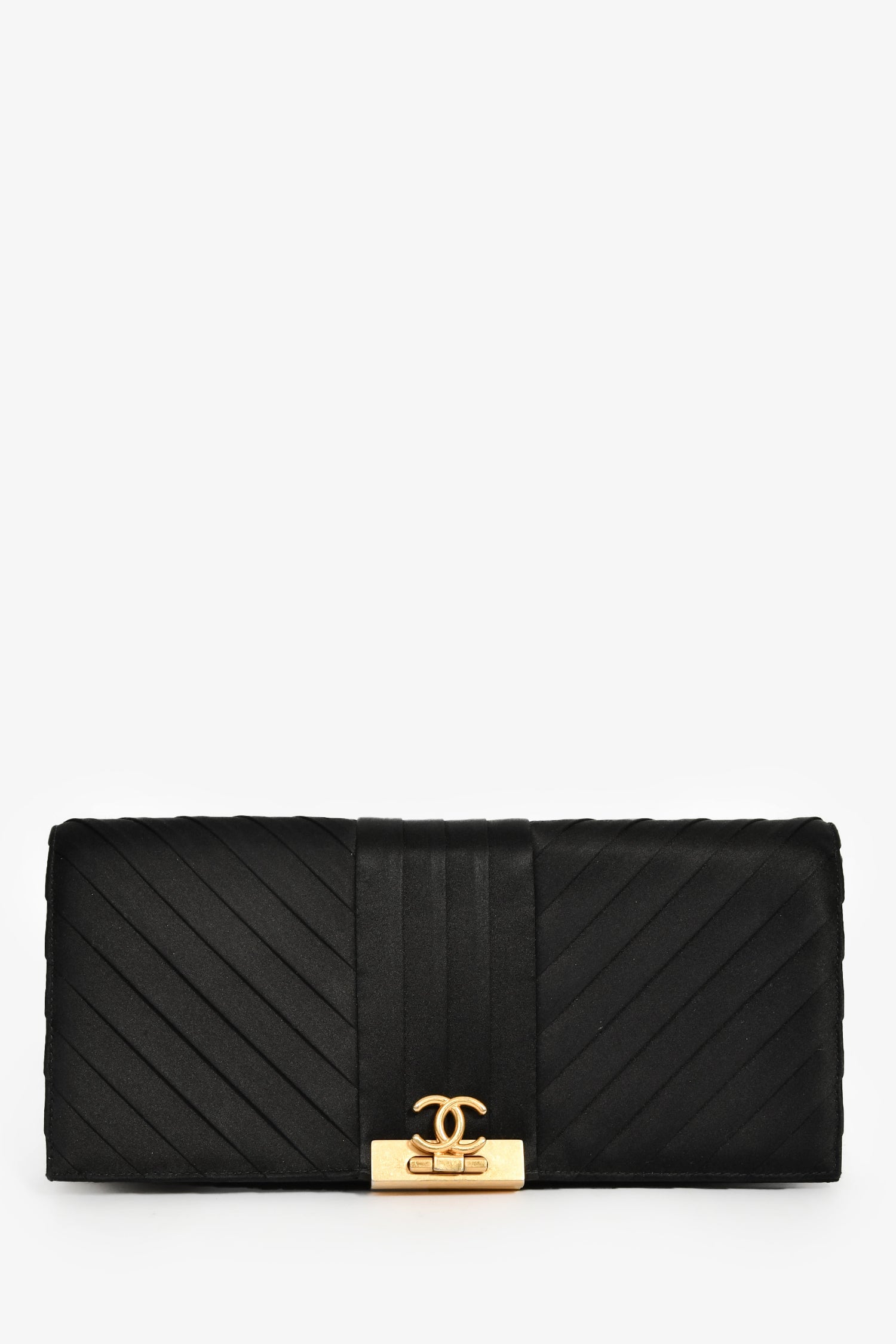 Refresh availabilityPre-Loved Chanel™ 2019 Black Silk Pleated CC Flip Lock Clutch. Fold-over flap with a flip-lock closure. Silk-lined interior with single card slot. Gold-tone hardware. Tonal stitching.