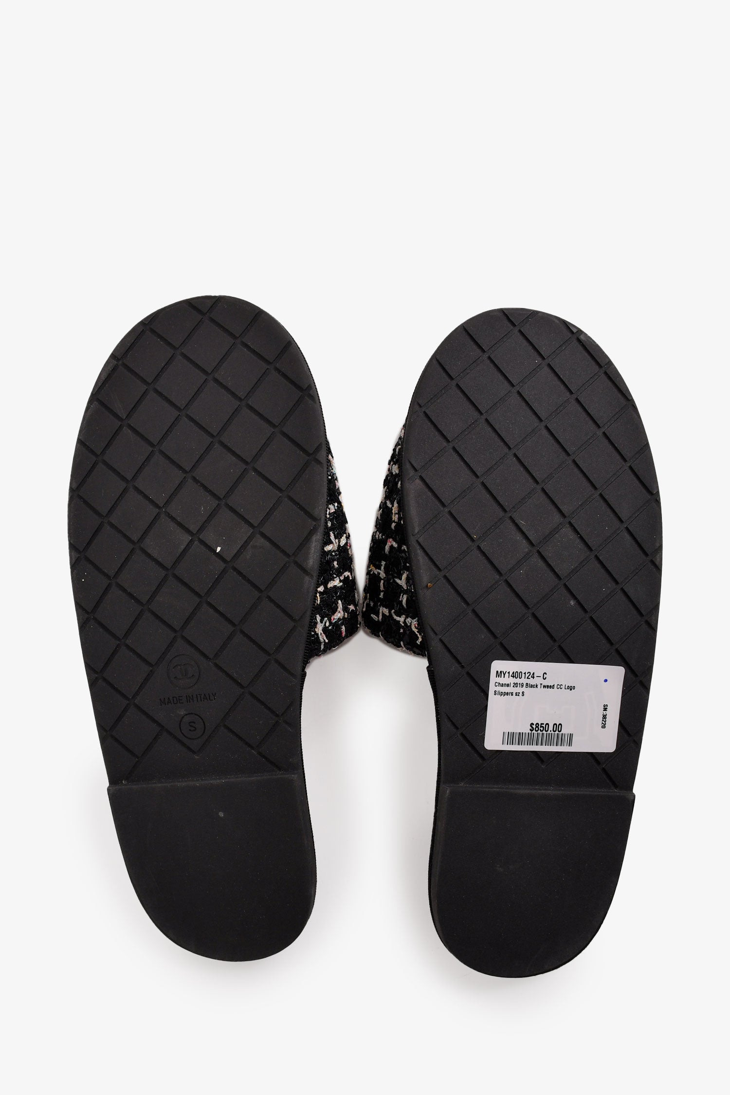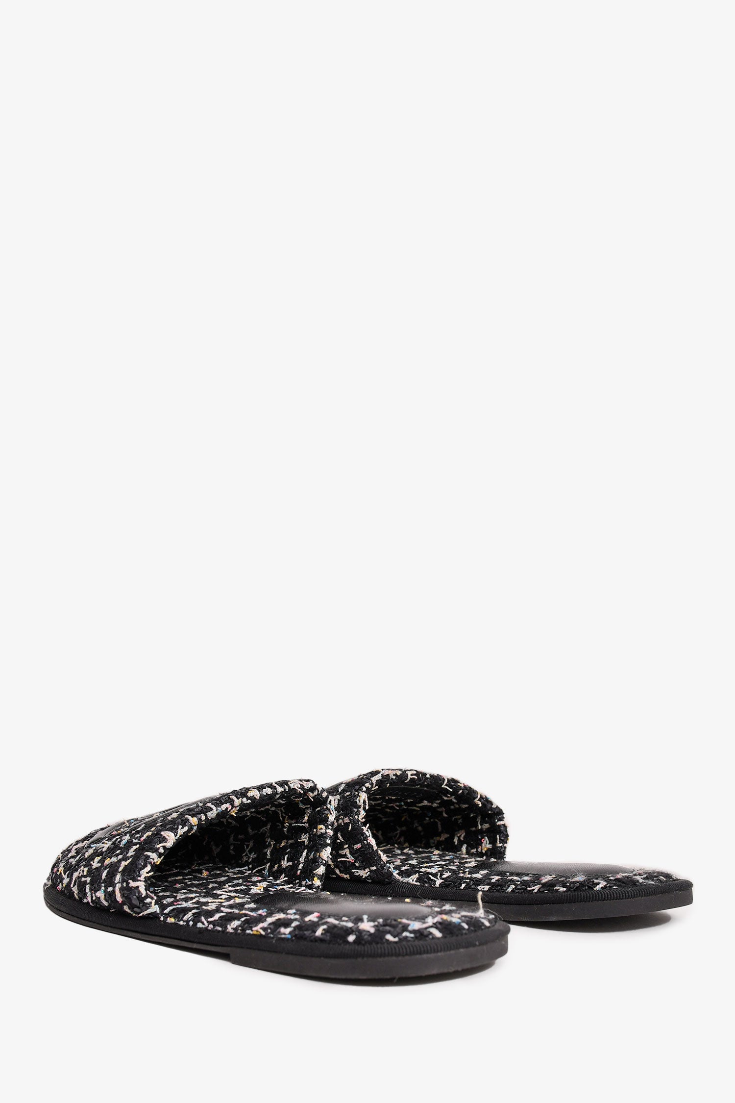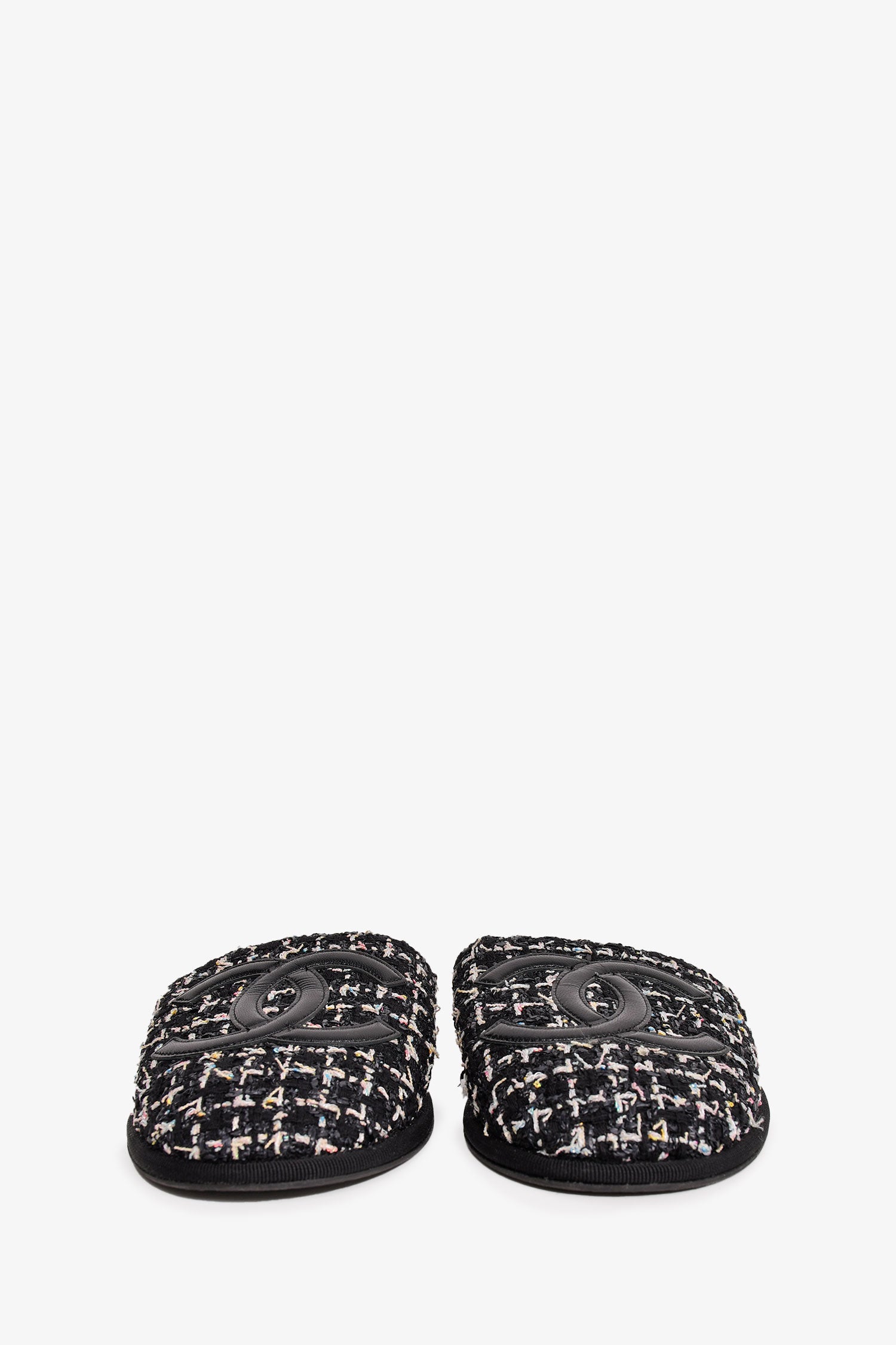Refresh availabilityPre-Loved Chanel™ 2019 Black Tweed CC Logo Slippers. Slip-on. Round toe. Open back.
