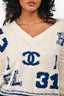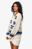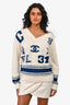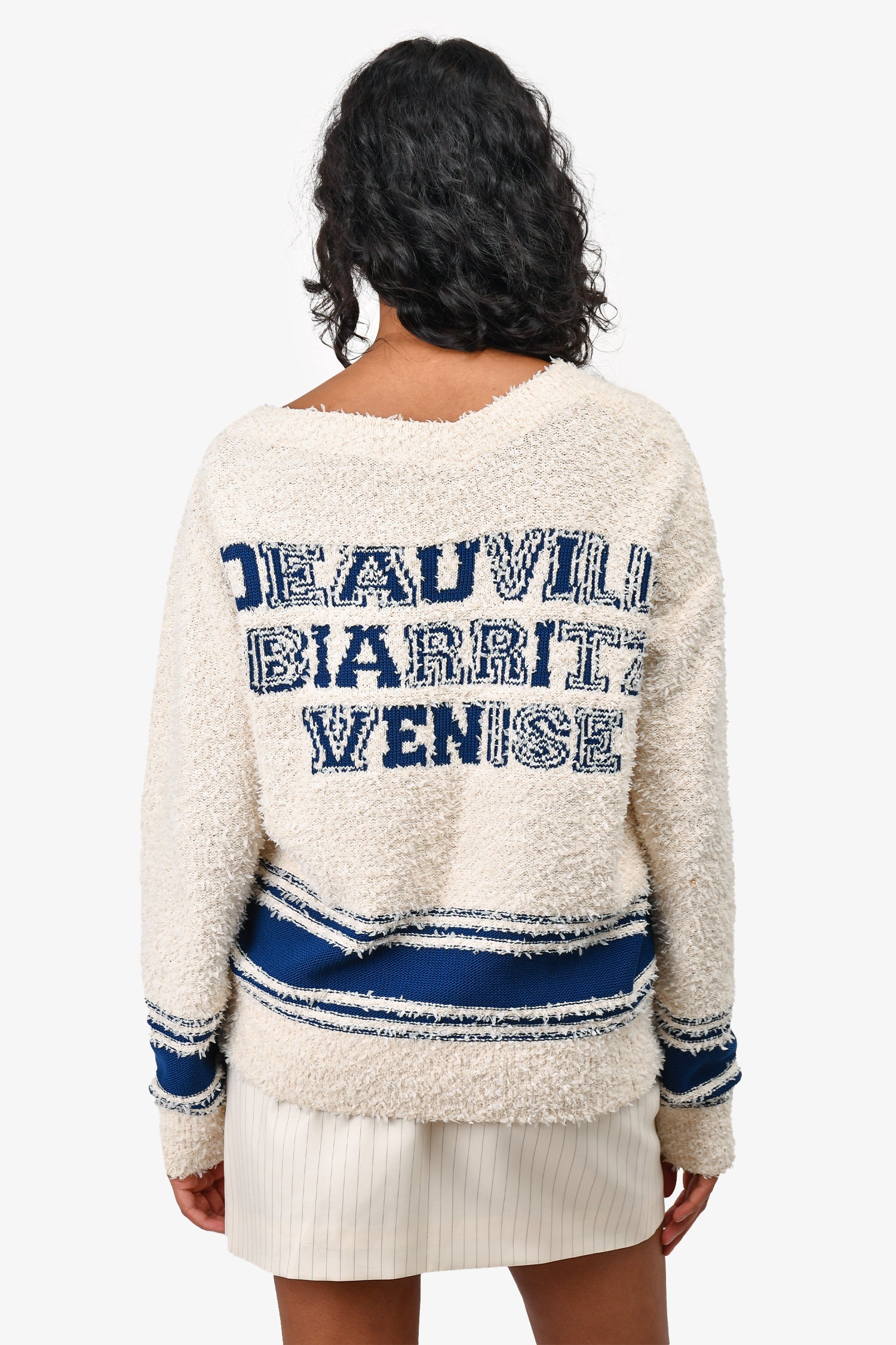 Pre-Loved Chanel™ 2019 White/Blue Cotton/Silk Varsity Logo Sweater Size 38