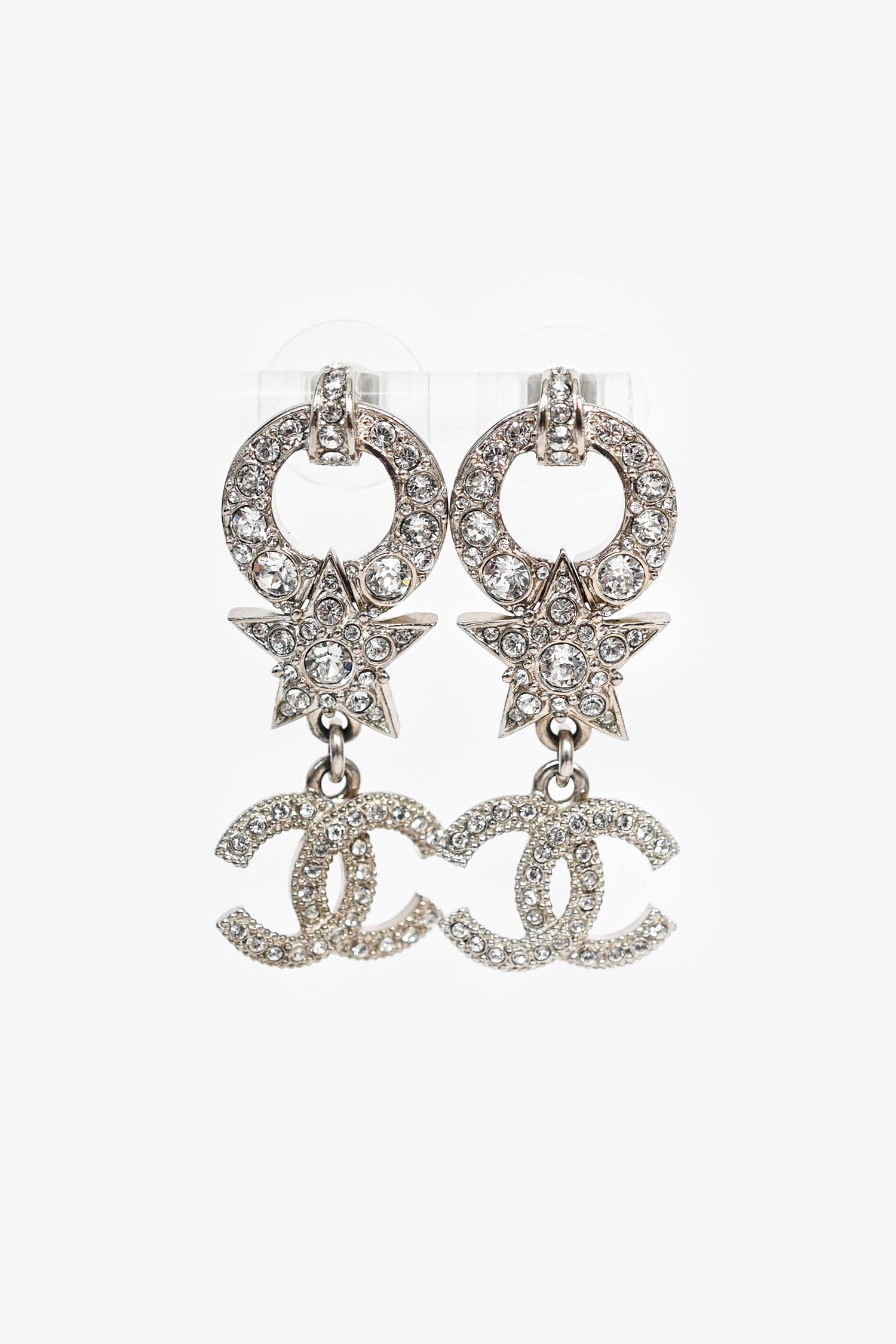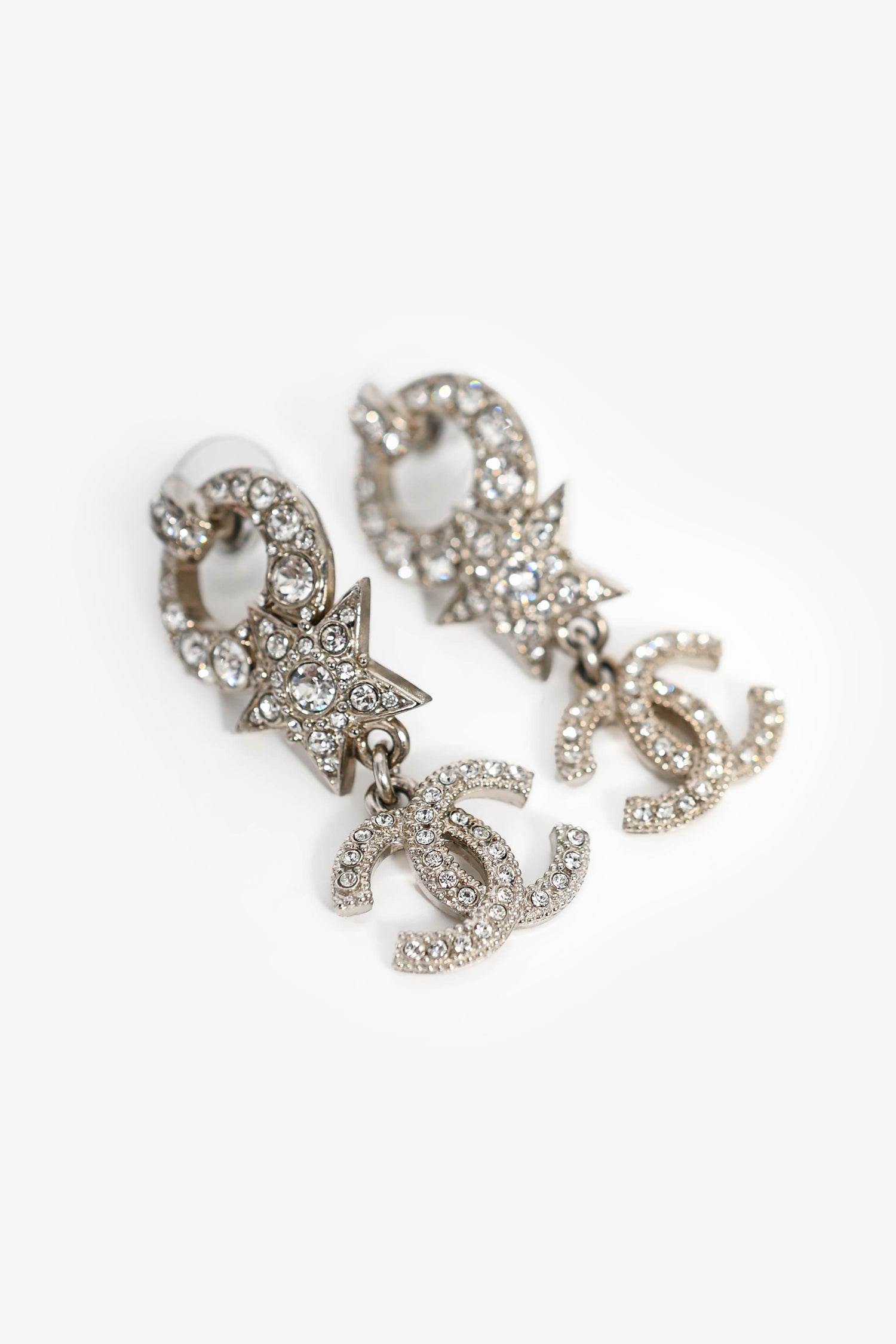 Refresh availabilityPre-Loved Chanel™ 2020 Silver Tone Crystal Star CC Earrings. Push pin closure.
