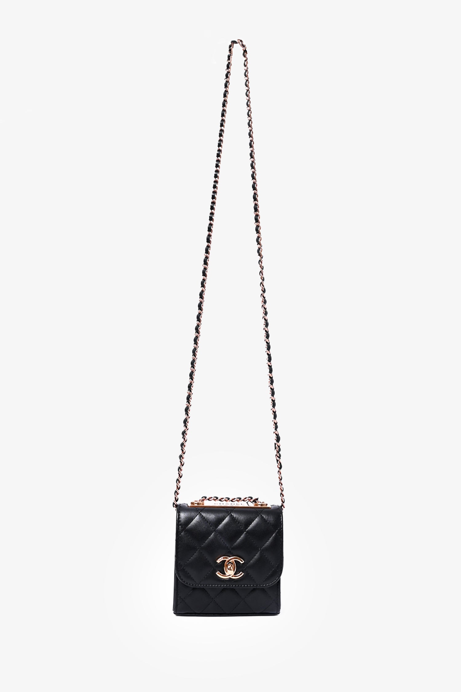 Refresh availabilityPre-Loved Chanel™ 2021 Black Lambskin Mini Trendy CC On Chain Rose Gold. Front turn-lock closure. Chain-link shoulder strap. 2 interior card slip pockets. Canvas-lined interior. Tonal stitching. Rose gold-toned hardware.