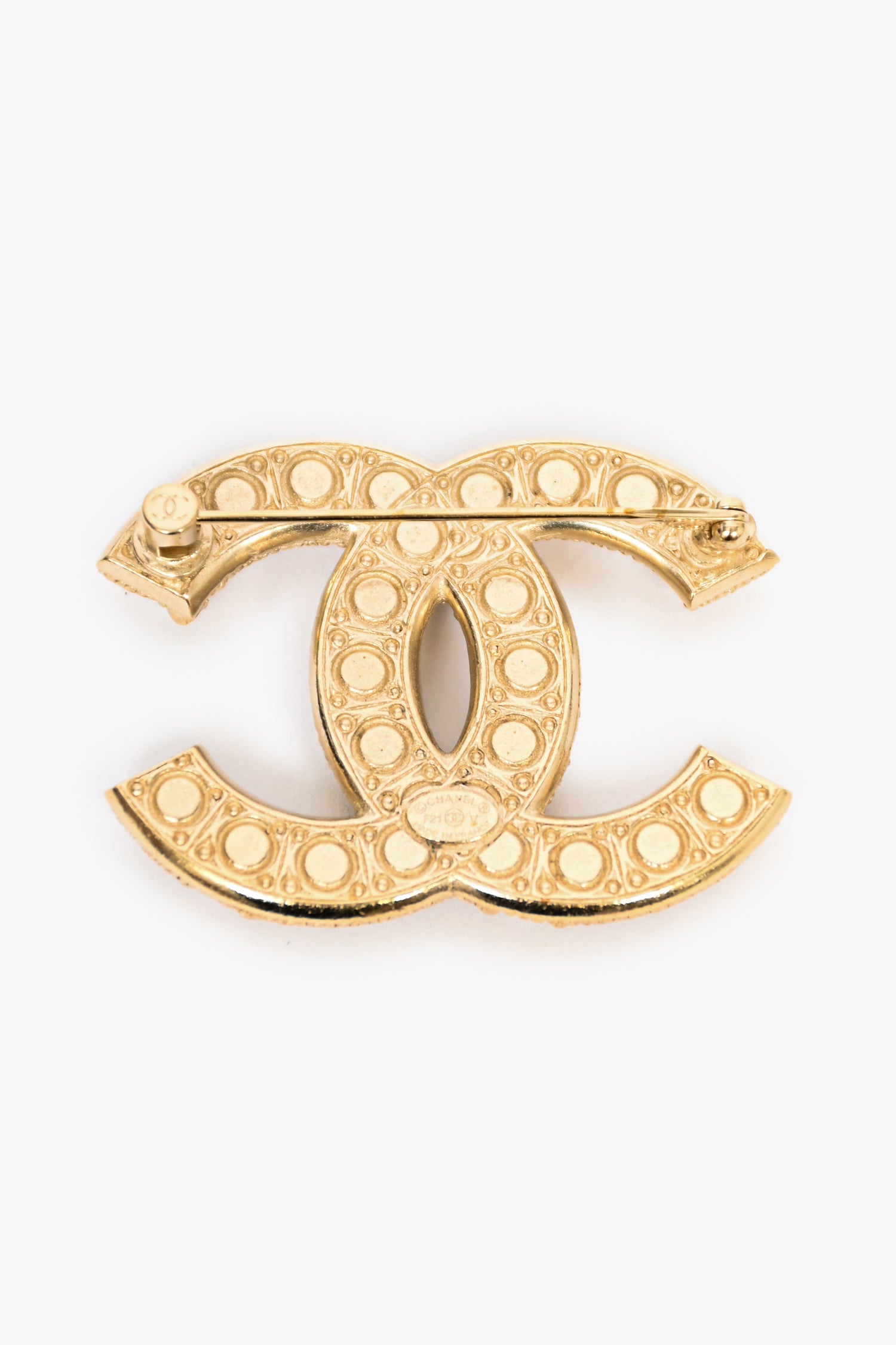 Refresh availabilityPre-Loved Chanel™ 2021 Gold Toned Pearl Embellished CC Brooch. Gold-tone hardware. Pin closure at the back.