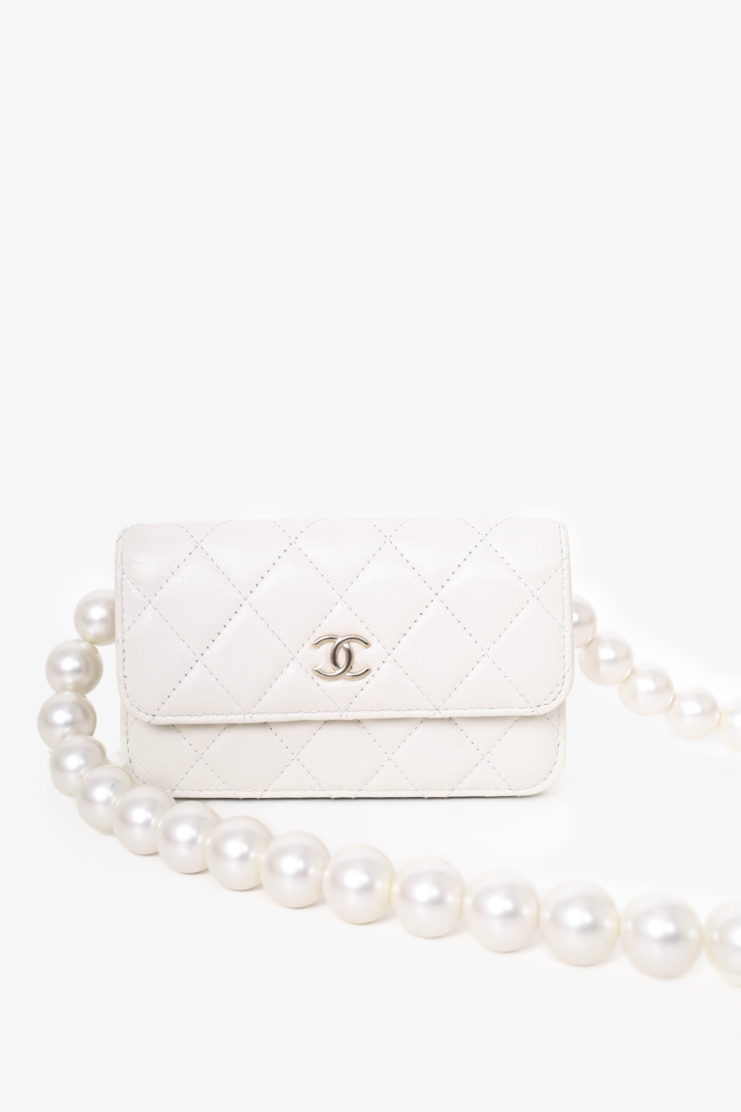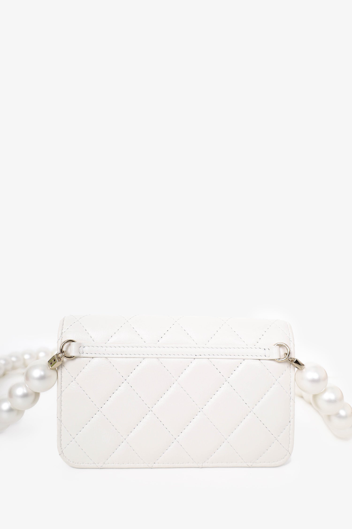 Pre-Loved Chanel™ 2021 White Calfskin Quilted Mini Maxi Pearls Wallet On Chain