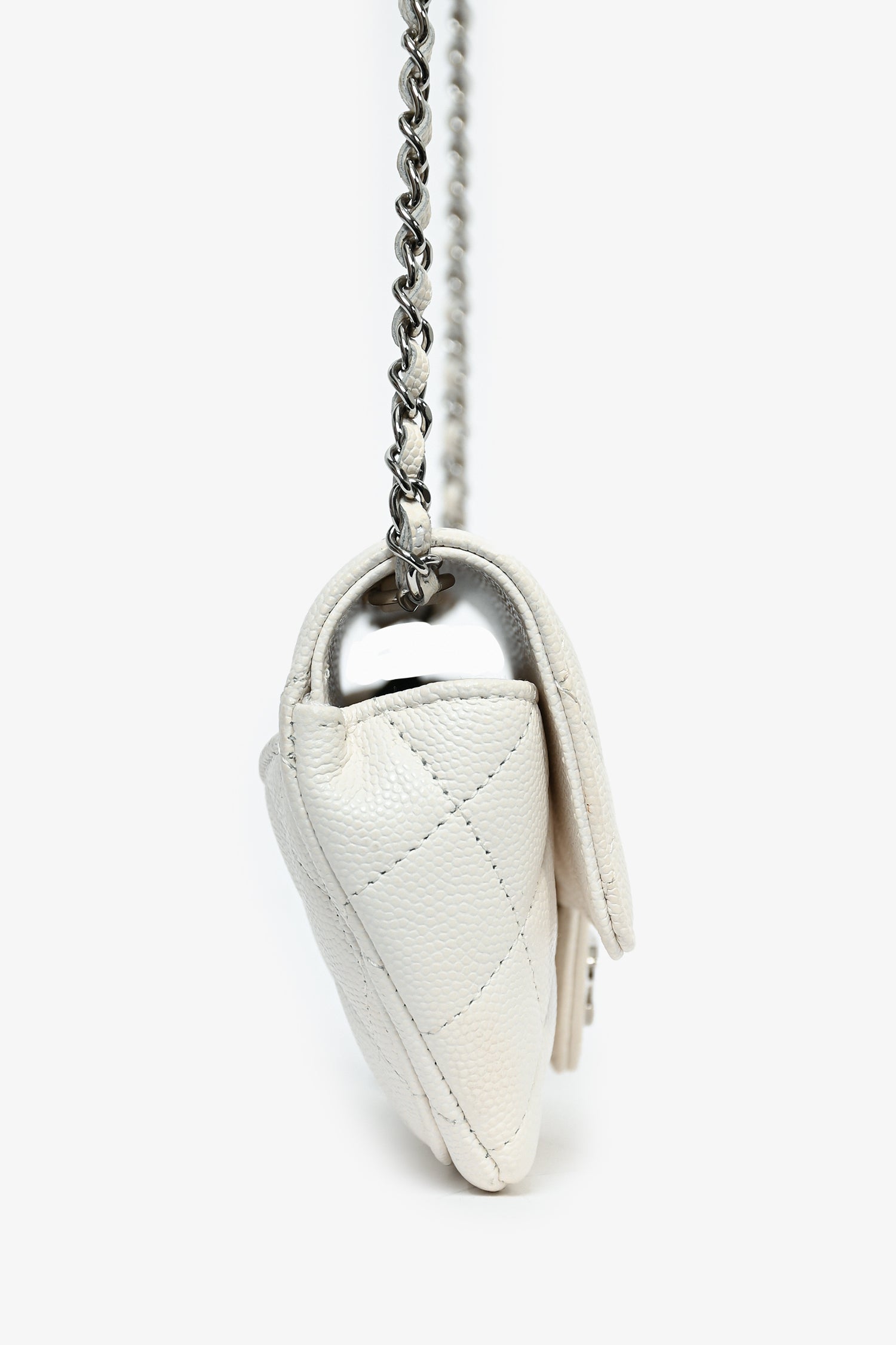 Pre-Loved Chanel™ 2021 White Caviar Leather Sunglass Case with Chain
