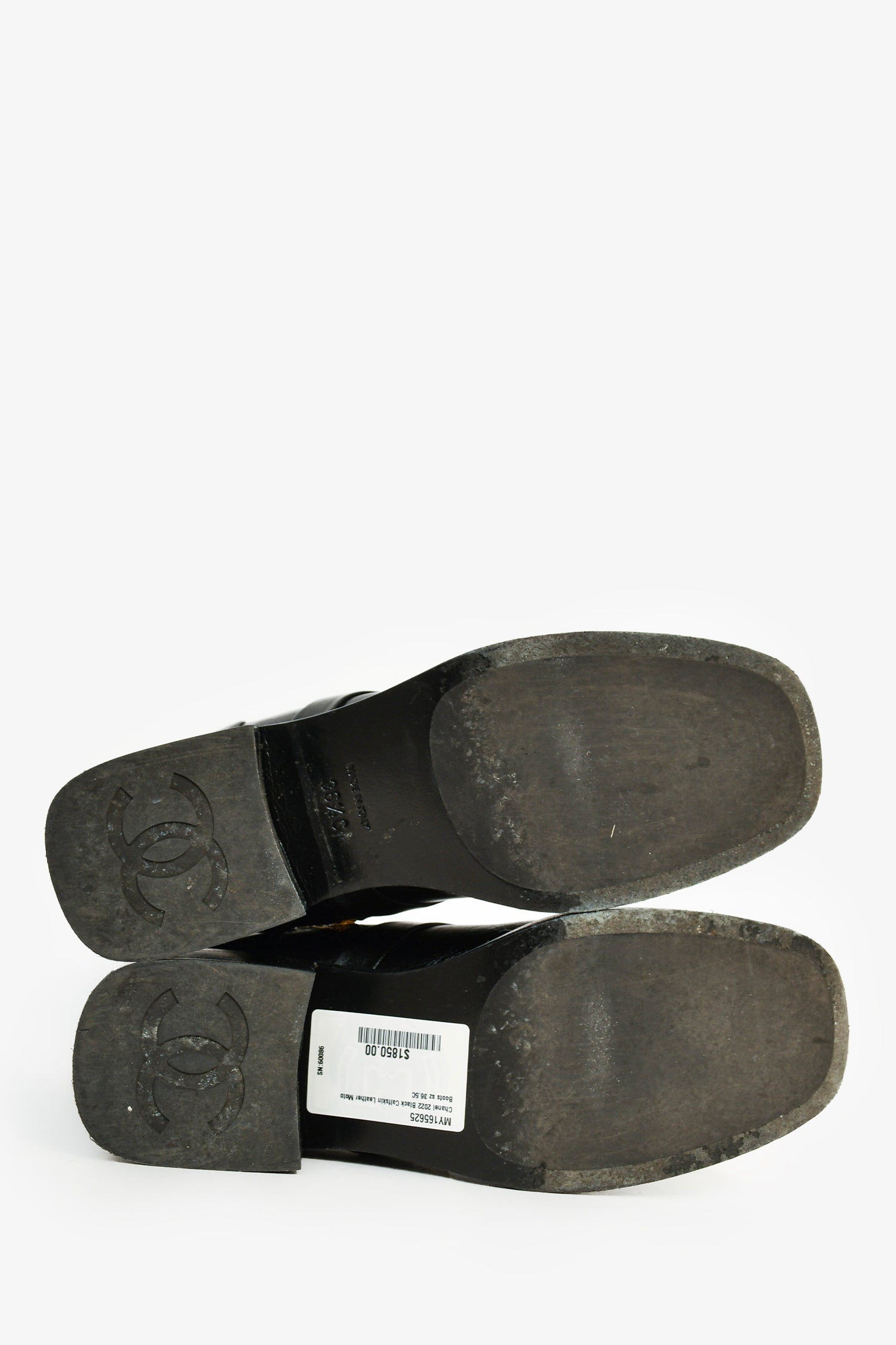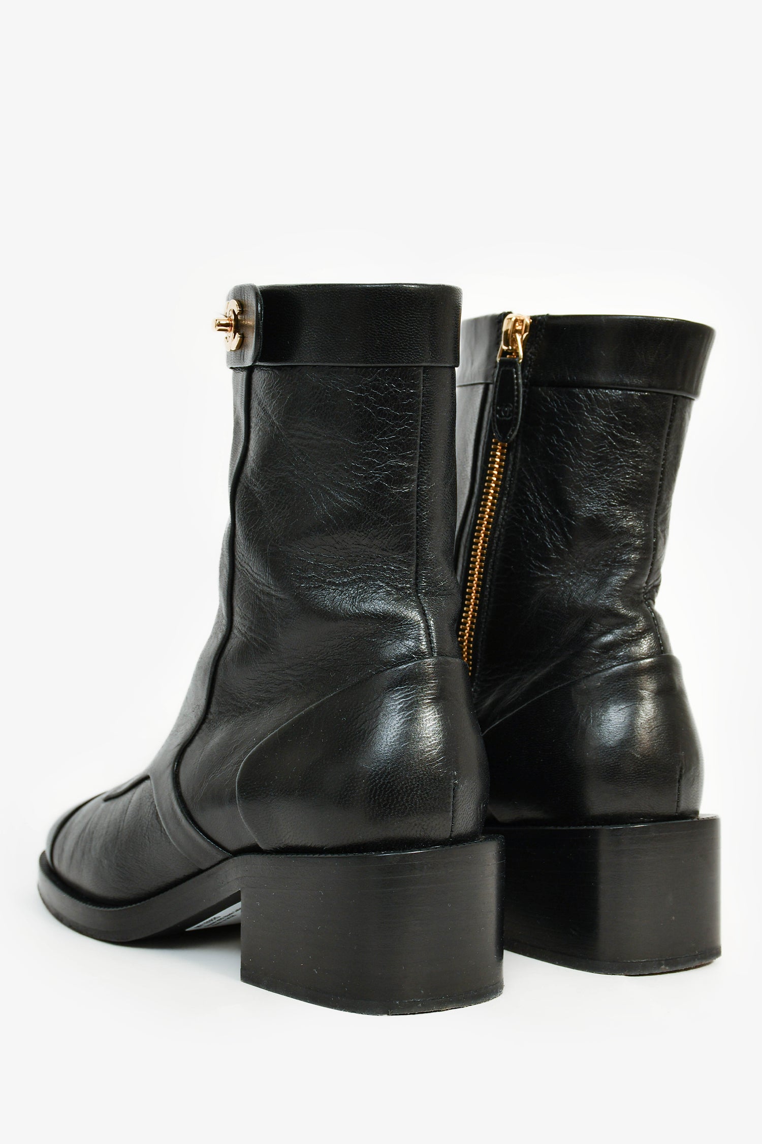 Pre-Loved Chanel™ 2022 Black Calfskin Leather Moto Boots Size 36.5C