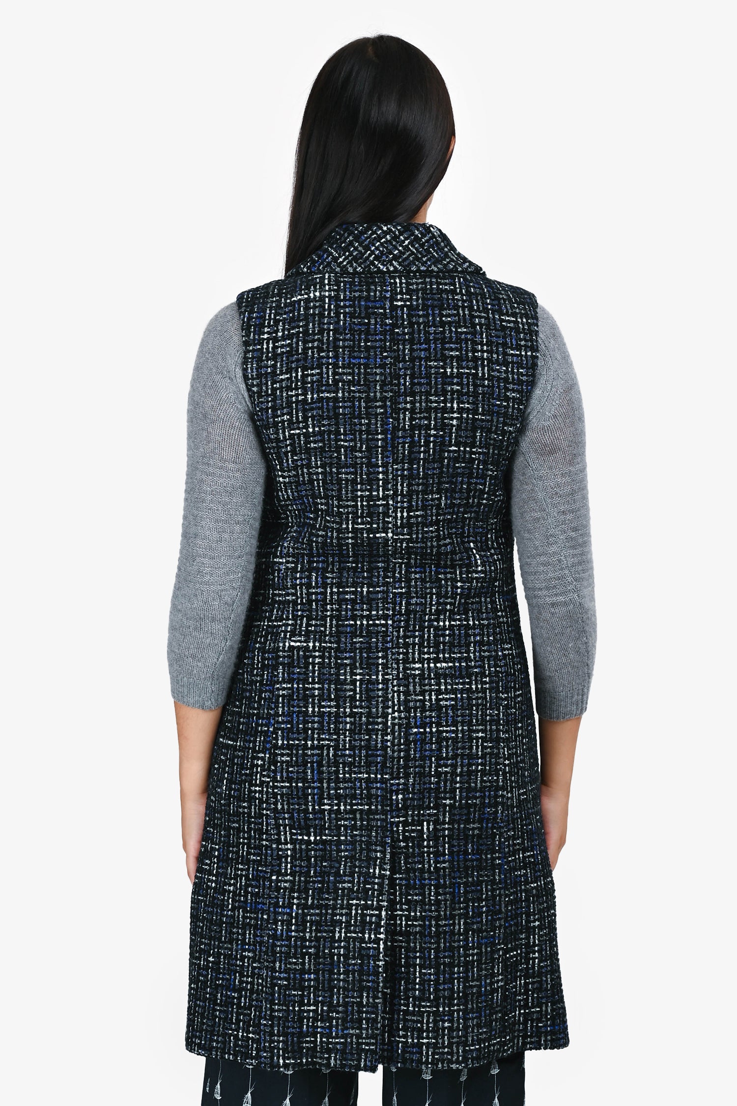 Pre-Loved Chanel™ 2022 Blue/Black Tweed Crystal Buttoned Over Vest Size 34