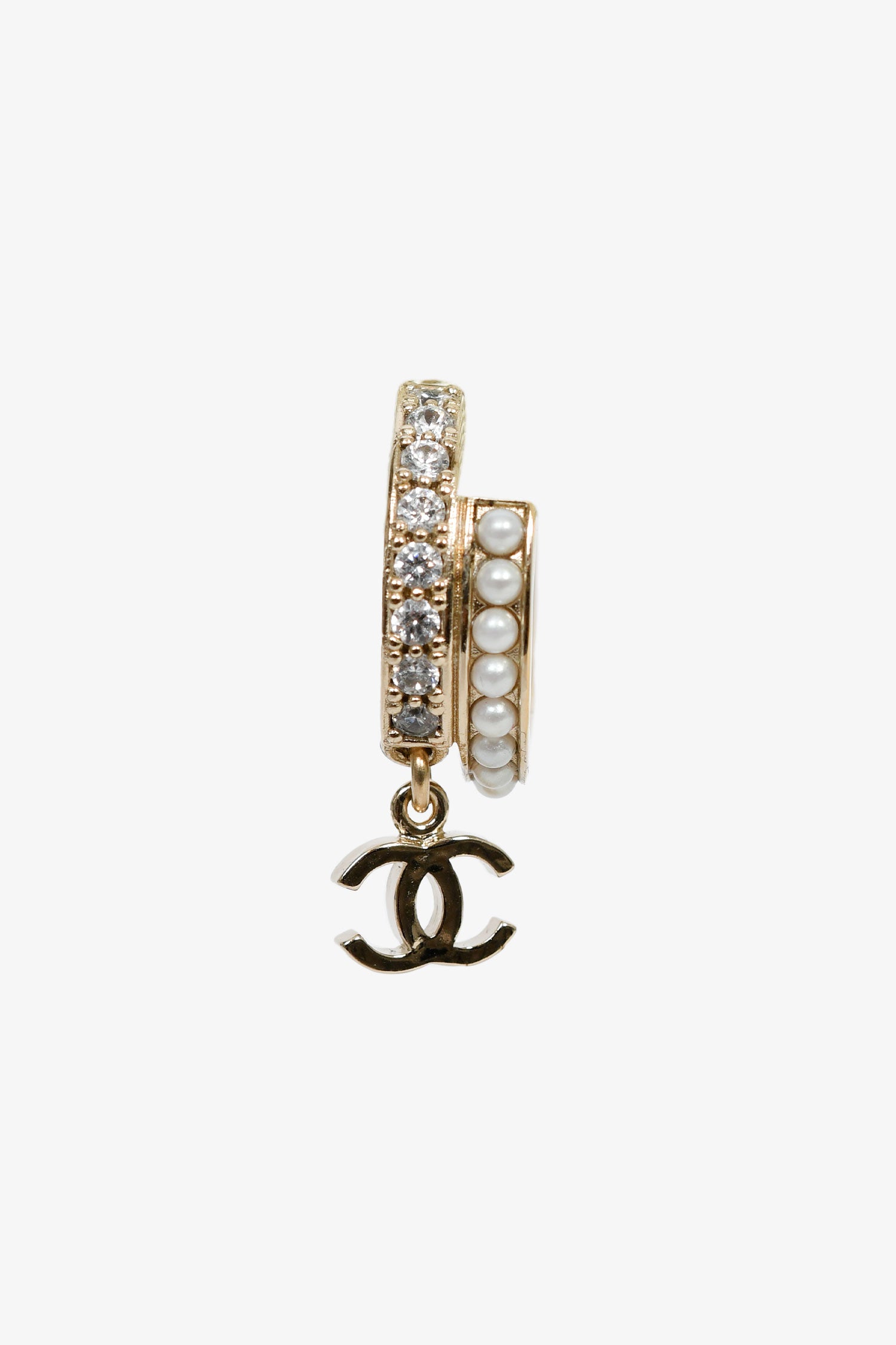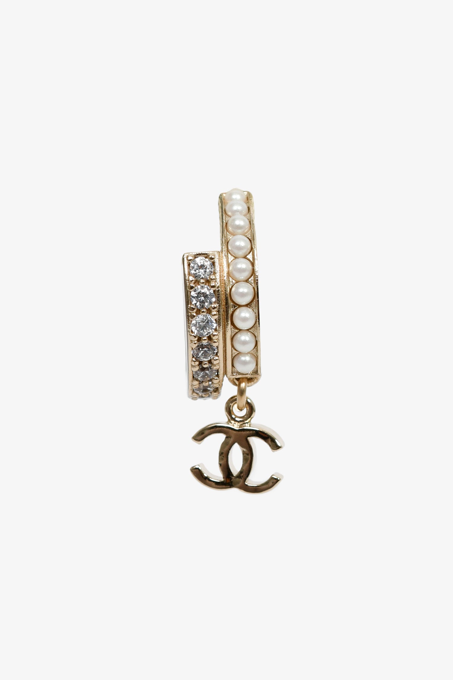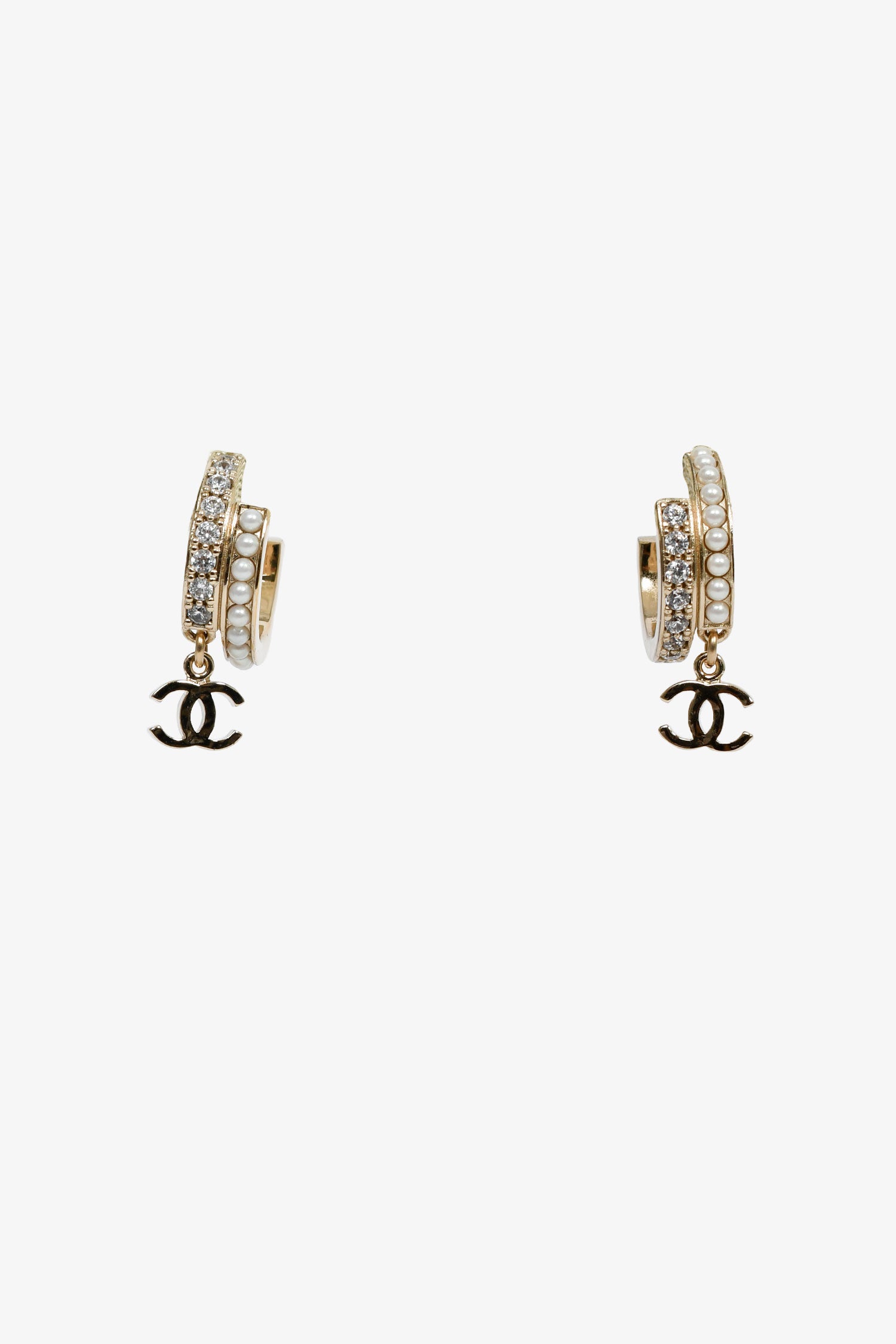 Refresh availabilityPre-Loved Chanel™ 2022 Champagne Gold Toned Faux Pearl CC Hoops. Post-stud closures.