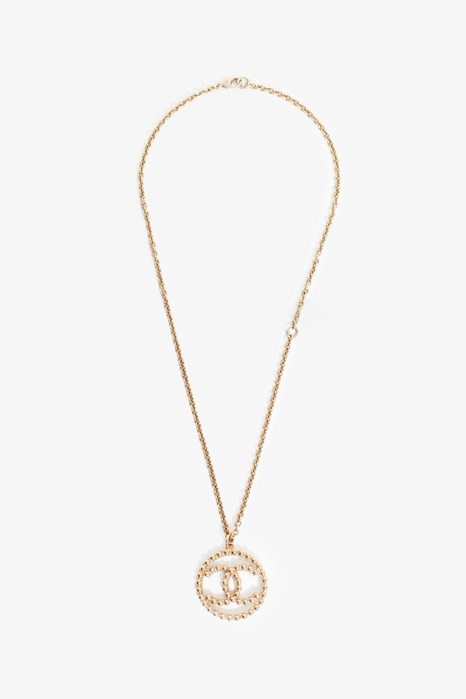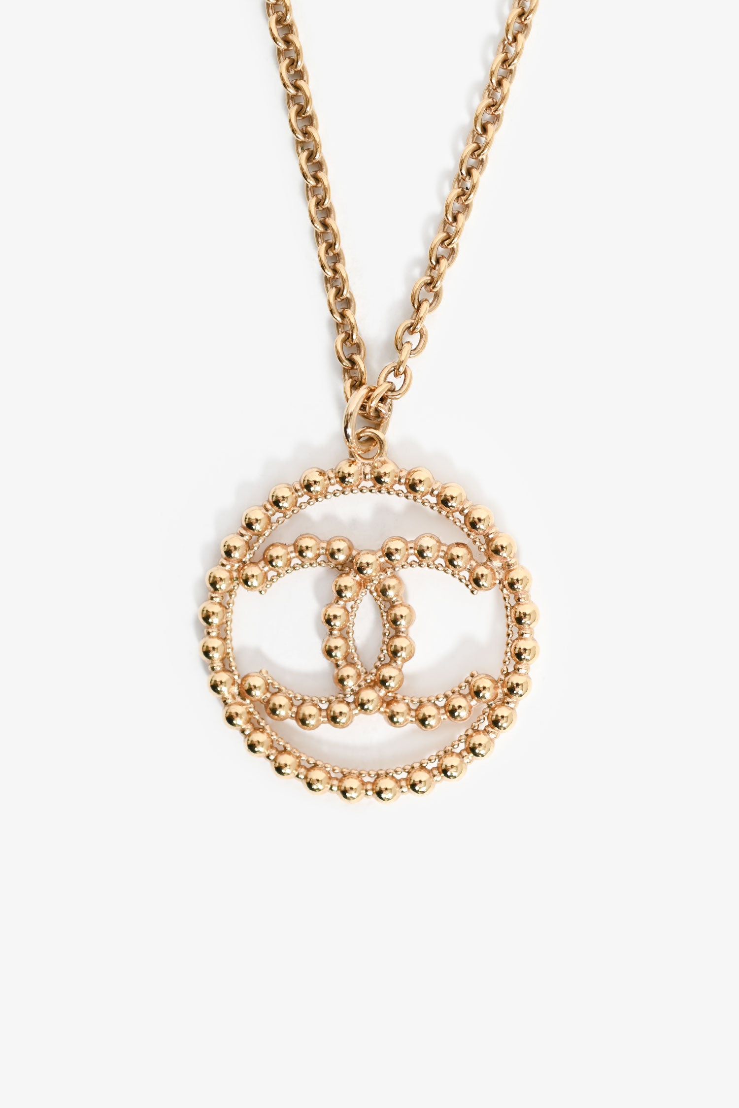 Pre-Loved Chanel™ 2022 Gold Toned Bubble Round CC Pendant Necklace
