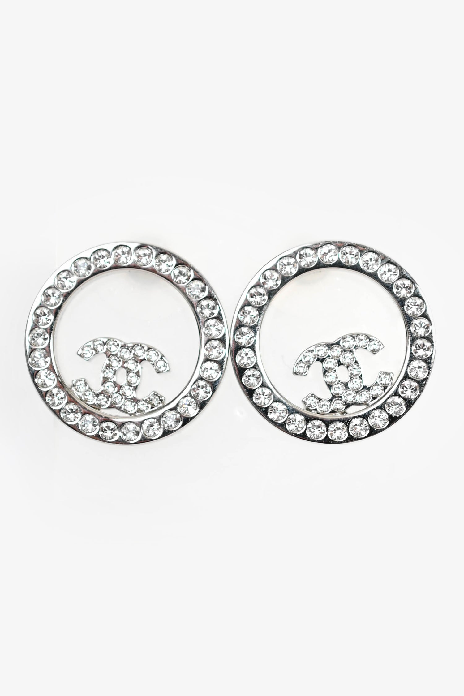 Refresh availabilityPre-Loved Chanel™ 2022 Silver Toned Crystal Ring CC Studs. Push-pin studs.