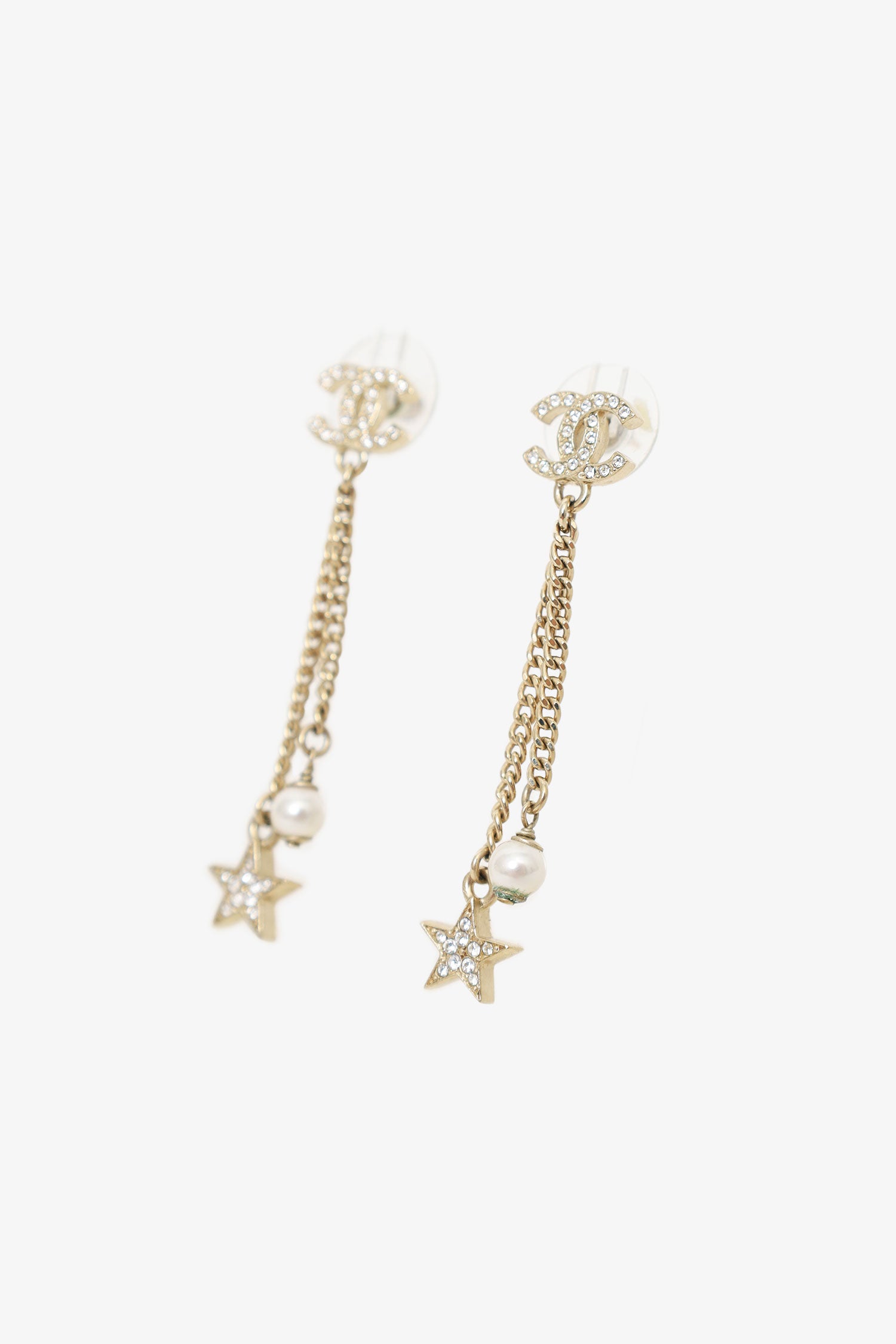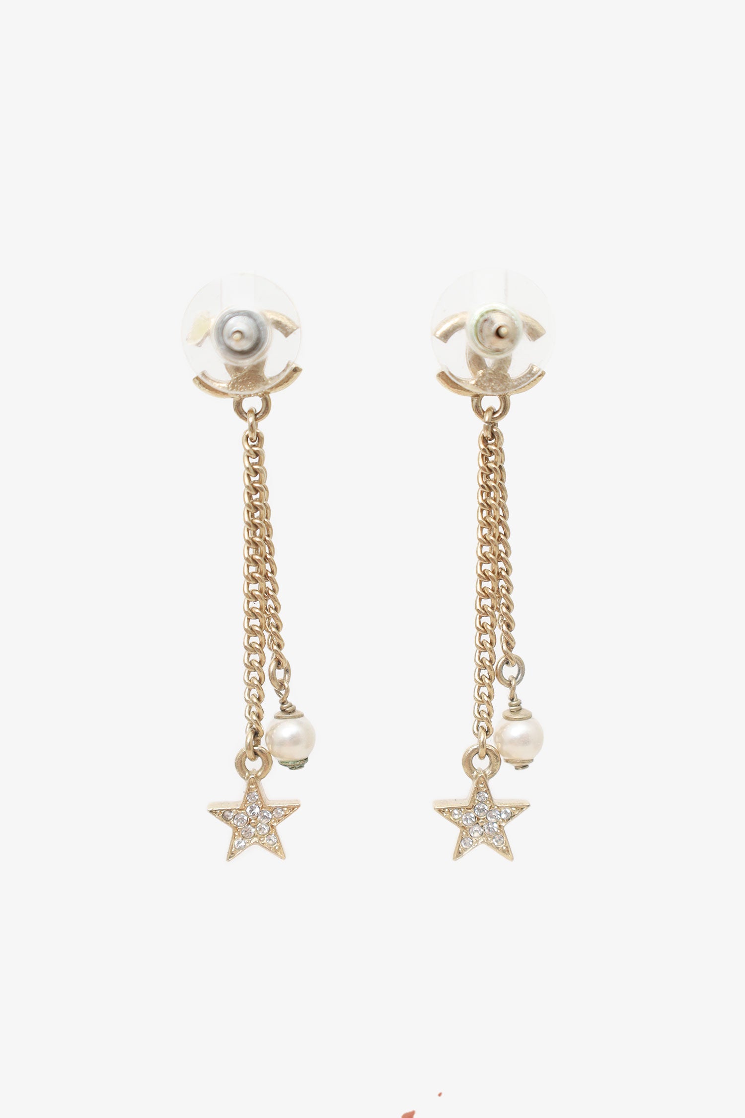 Refresh availabilityPre-loved Chanel™ 2023 Gold Tone Faux Pearl & Strass Star Drop Earrings. Push closure.