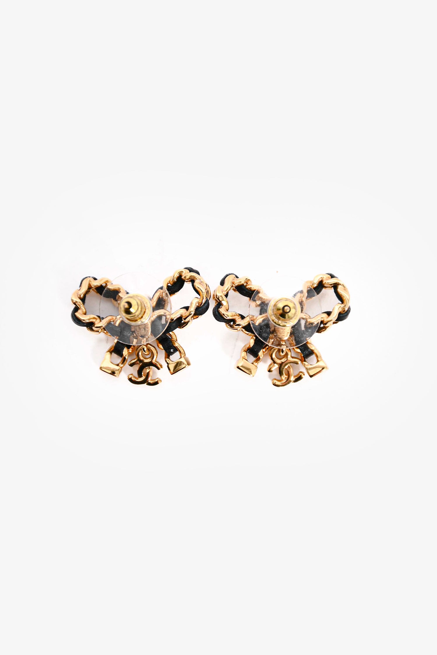 Refresh availabilityPre-Loved Chanel™ 2023 Gold Toned Woven Leather Bow Stud Earrings. Push pin closure.