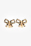Pre-Loved Chanel™ 2023 Gold Toned Woven Leather Bow Stud Earrings