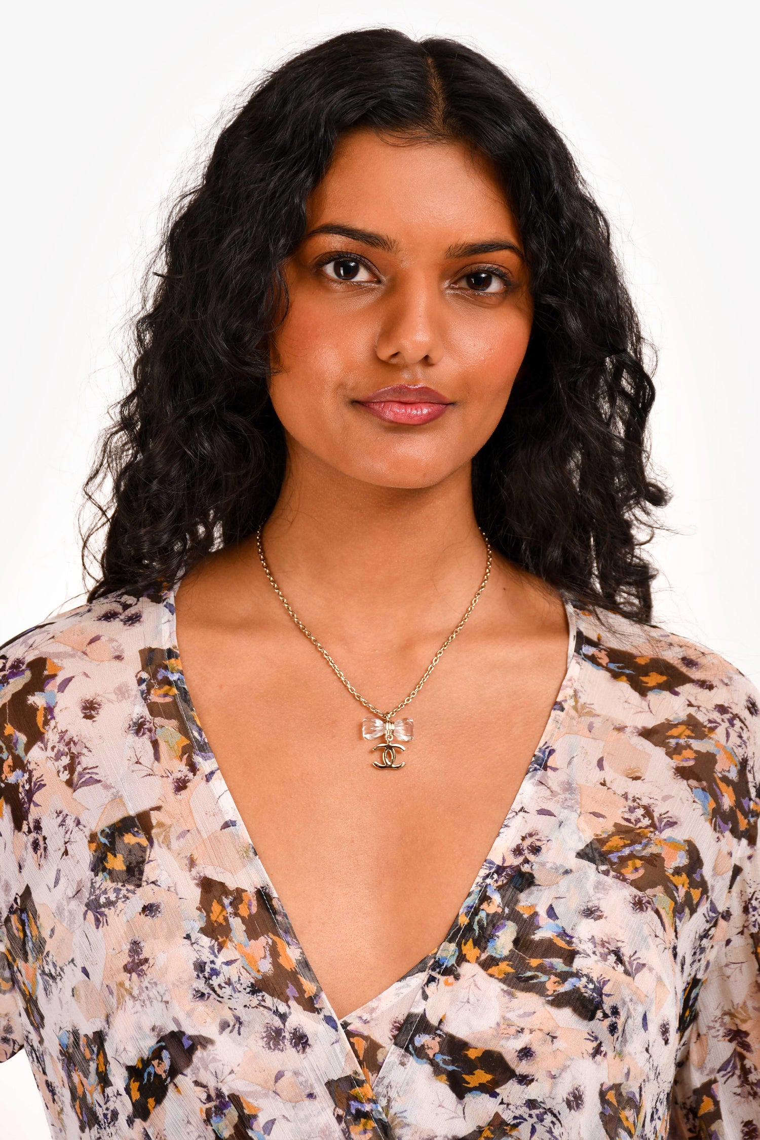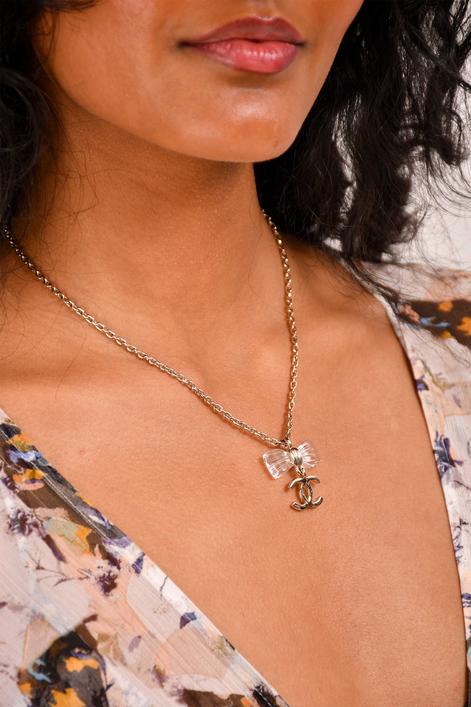 Refresh availabilityPre-Loved Chanel™ 2025 Silver Toned CC Resin Bow Necklace. Lobster clasp closure with adjustable length. Engraved Chanel hallmark tag. Tonal stitching.