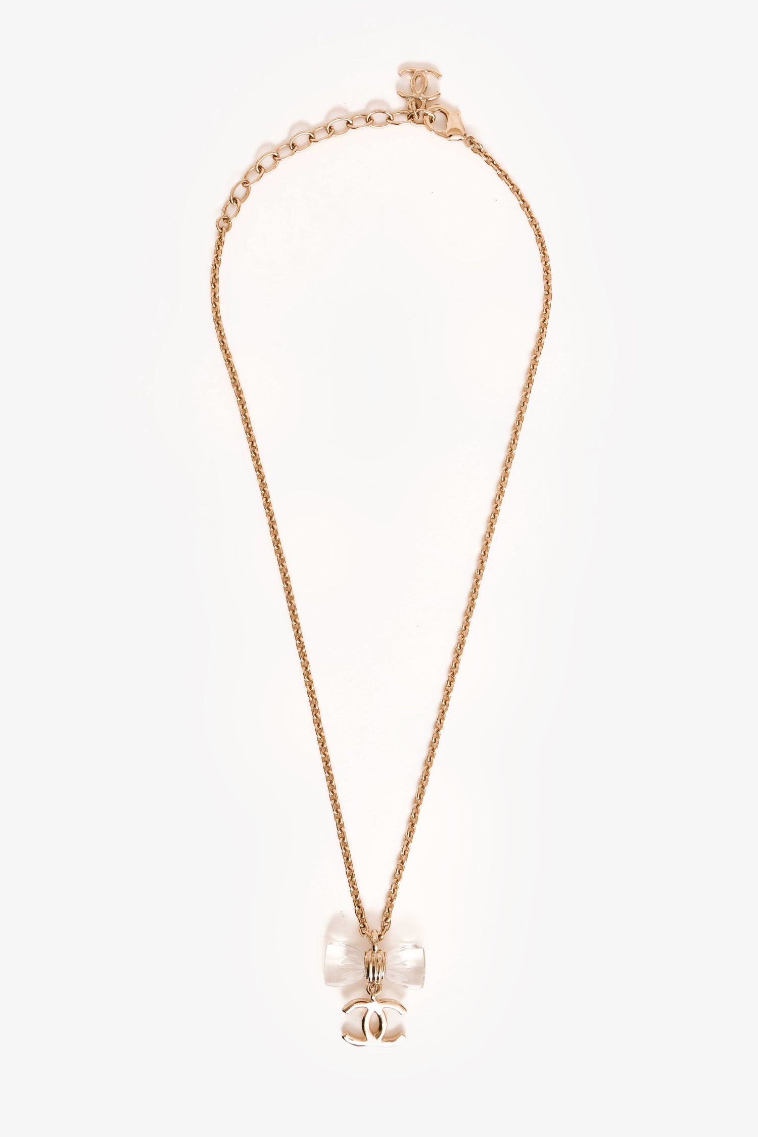 Pre-Loved Chanel™ 2025 Silver Toned CC Resin Bow Necklace