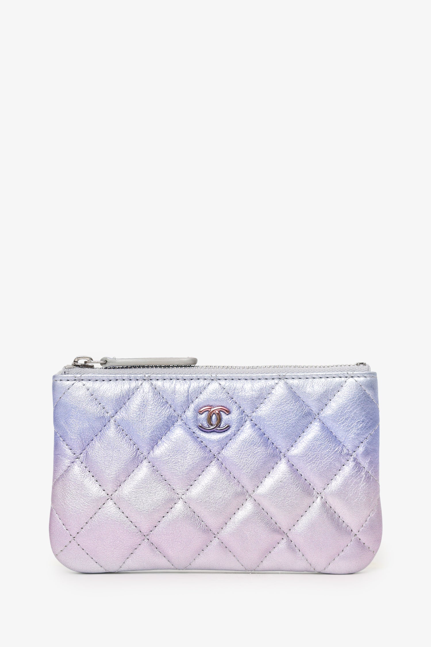 Refresh availabilityPre-Loved Chanel™ 21K Iridescent Ombre Purple Leather Mini O-case Pouch. Top zip closure. Open-lined interior. Silver-tone hardware. Tonal stitching.