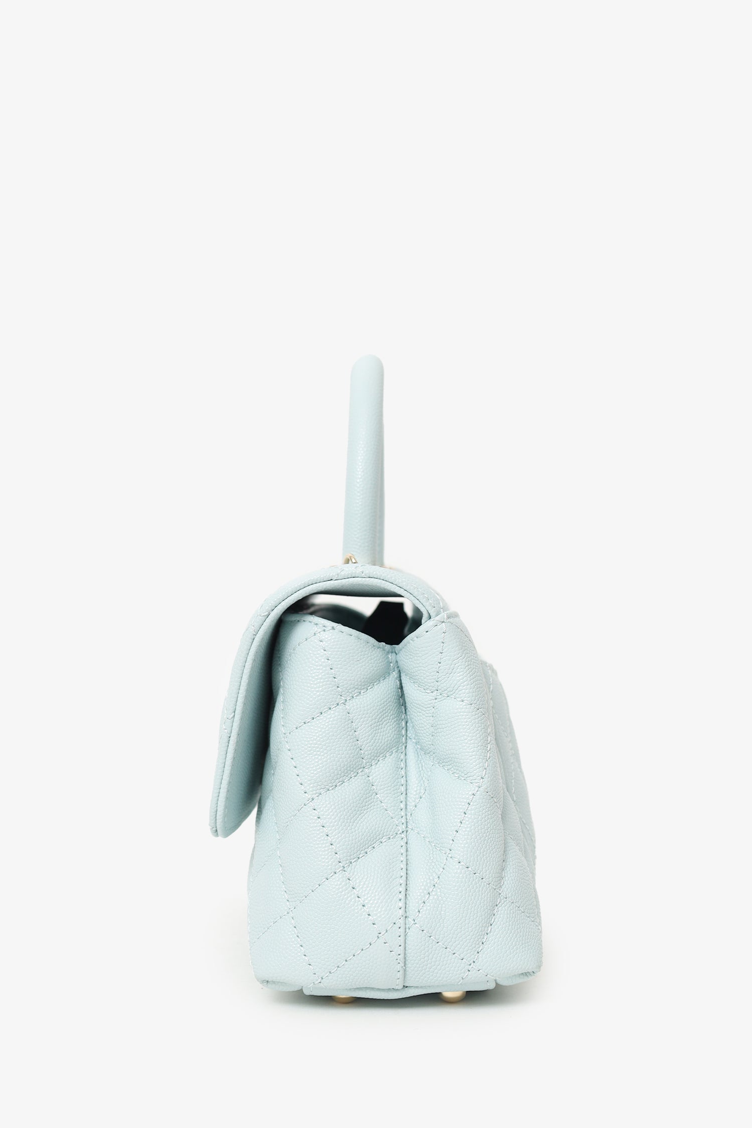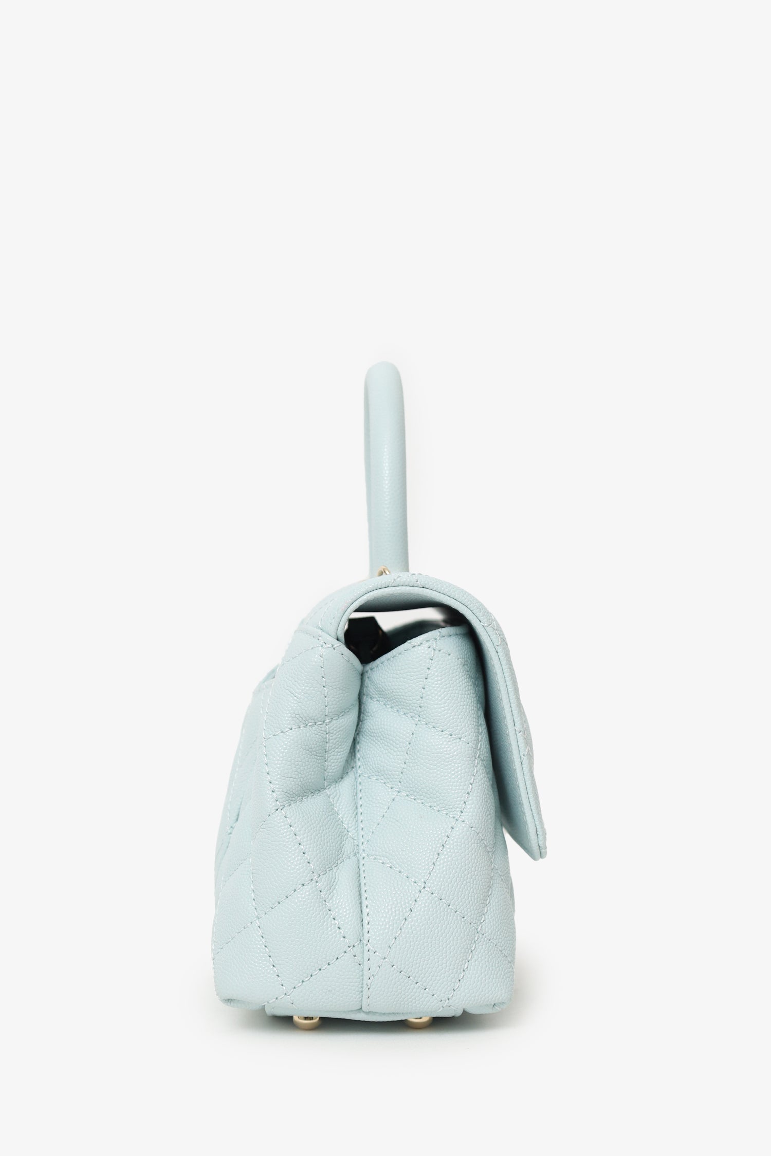 Pre-Loved Chanel™ 21S Tiffany Blue Caviar Leather Small Coco Handle