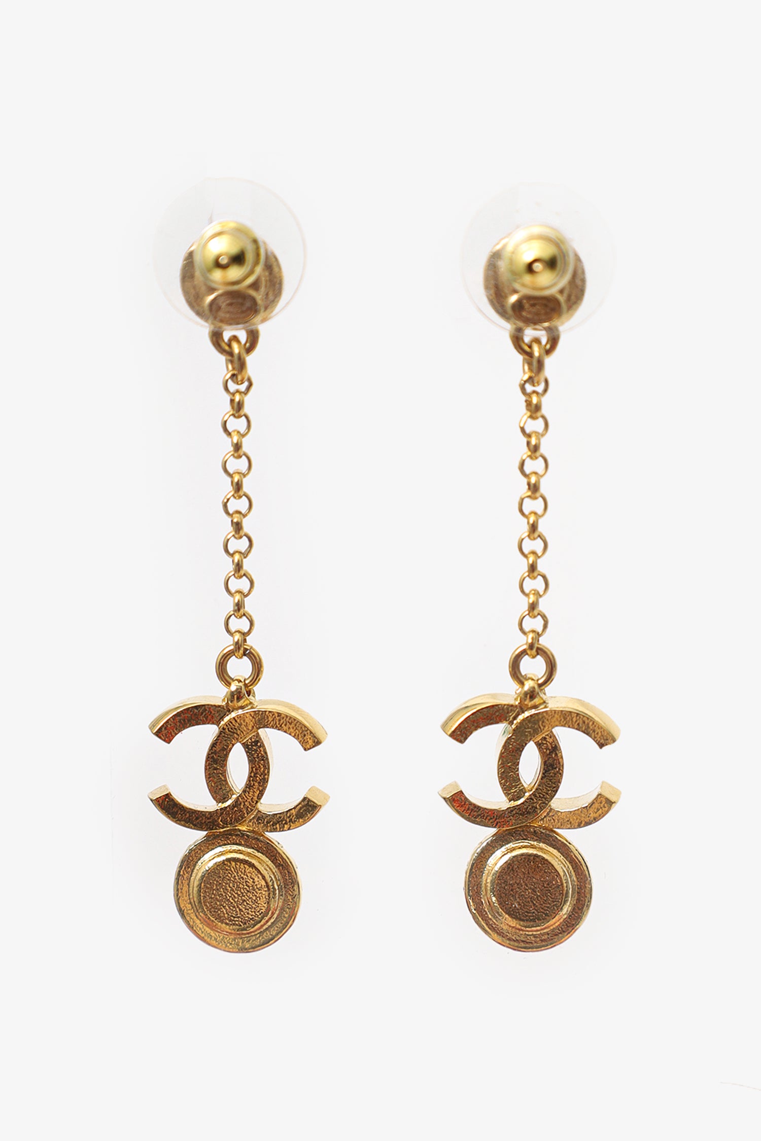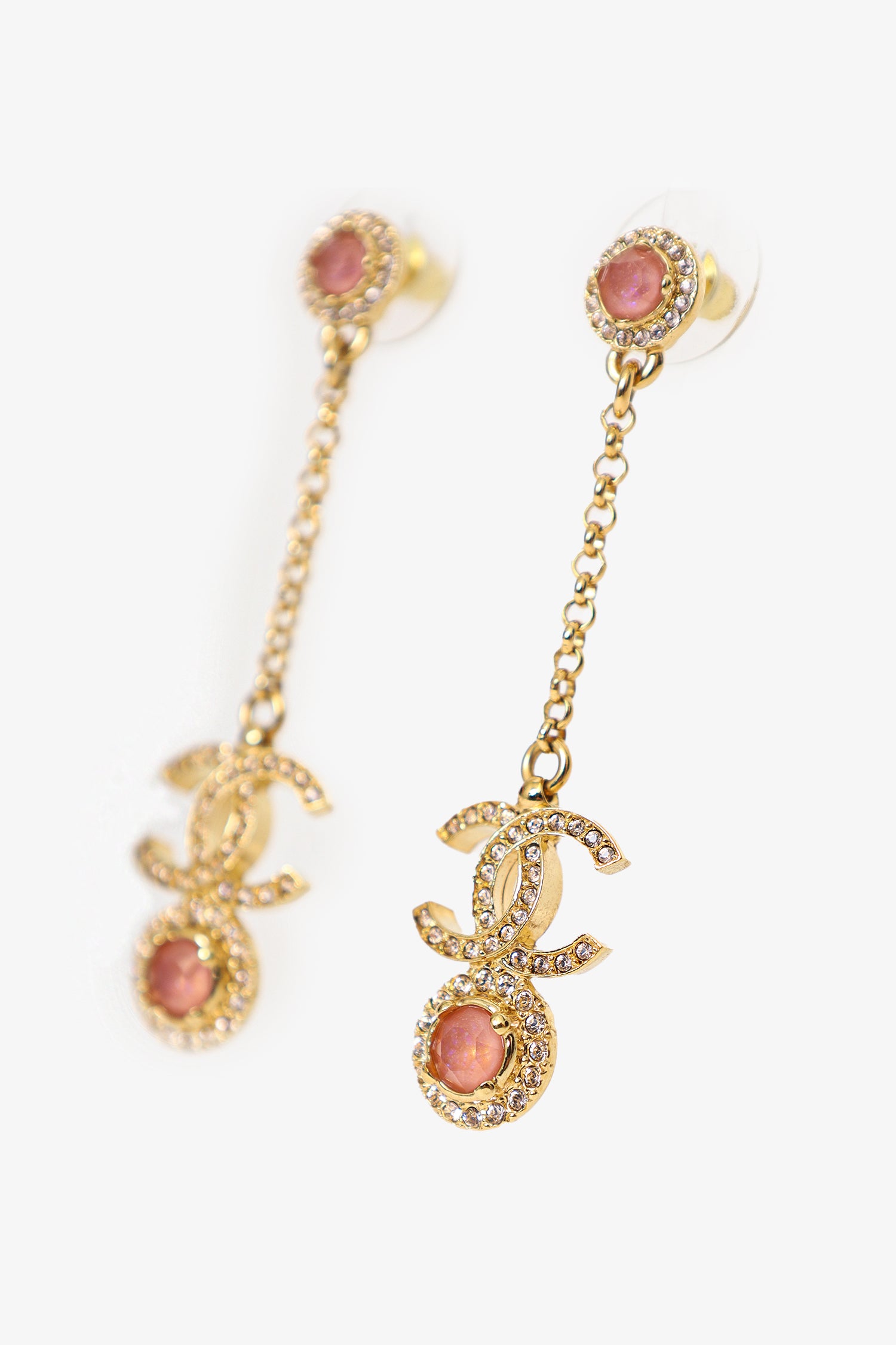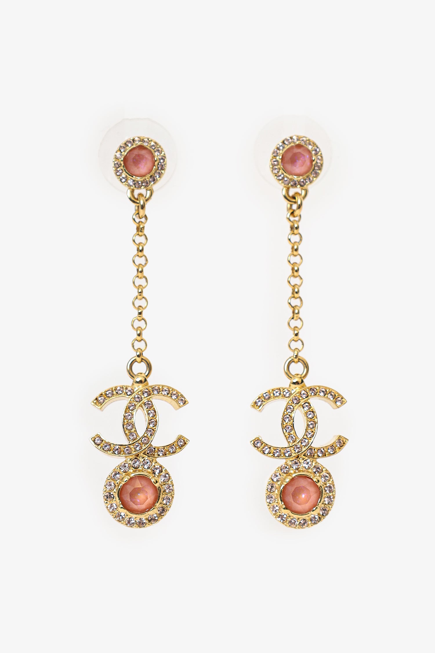 Pre-Loved Chanel™ 23B Gold Tone Coco Mark Rhinestone Drop Earrings