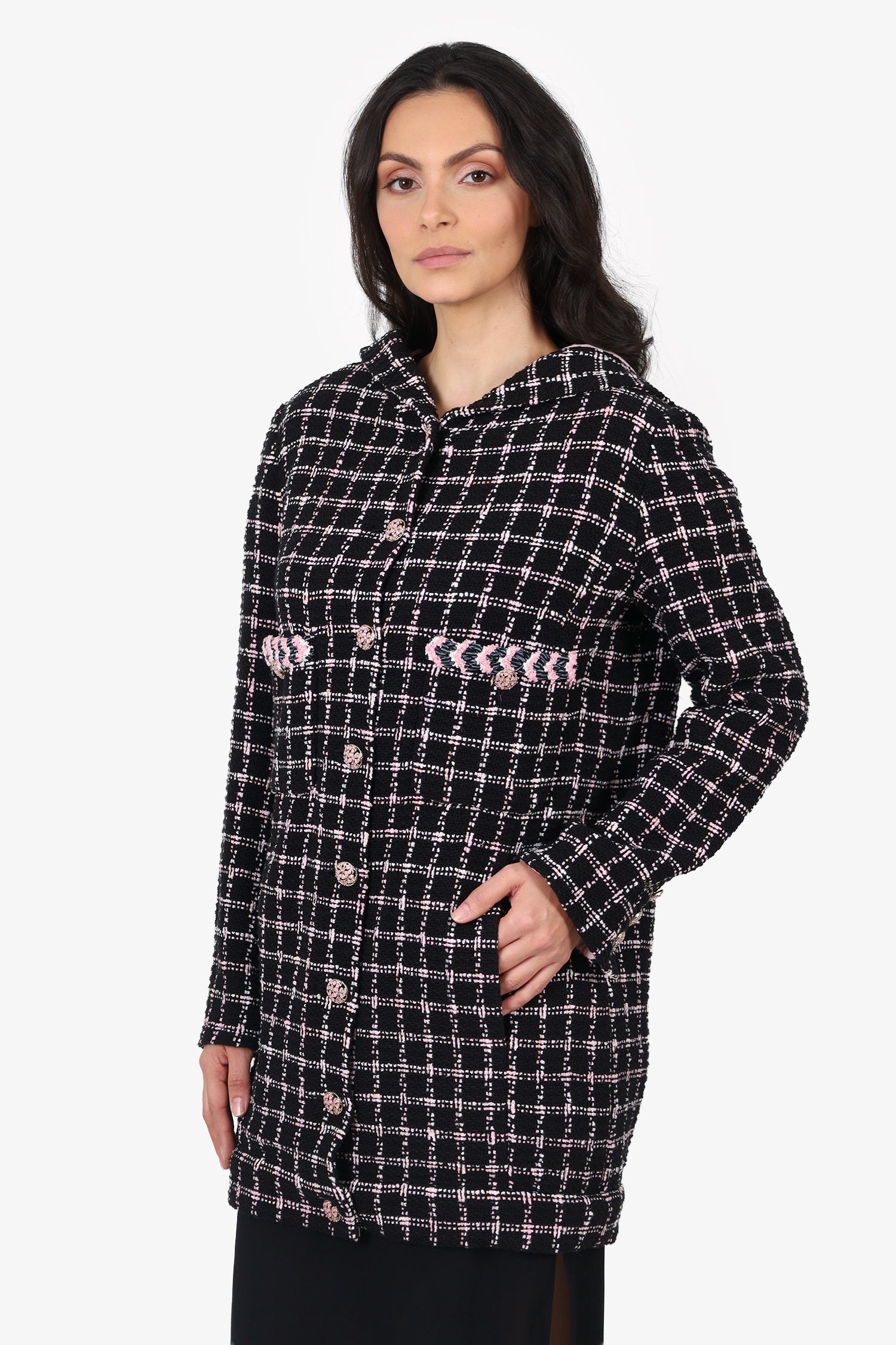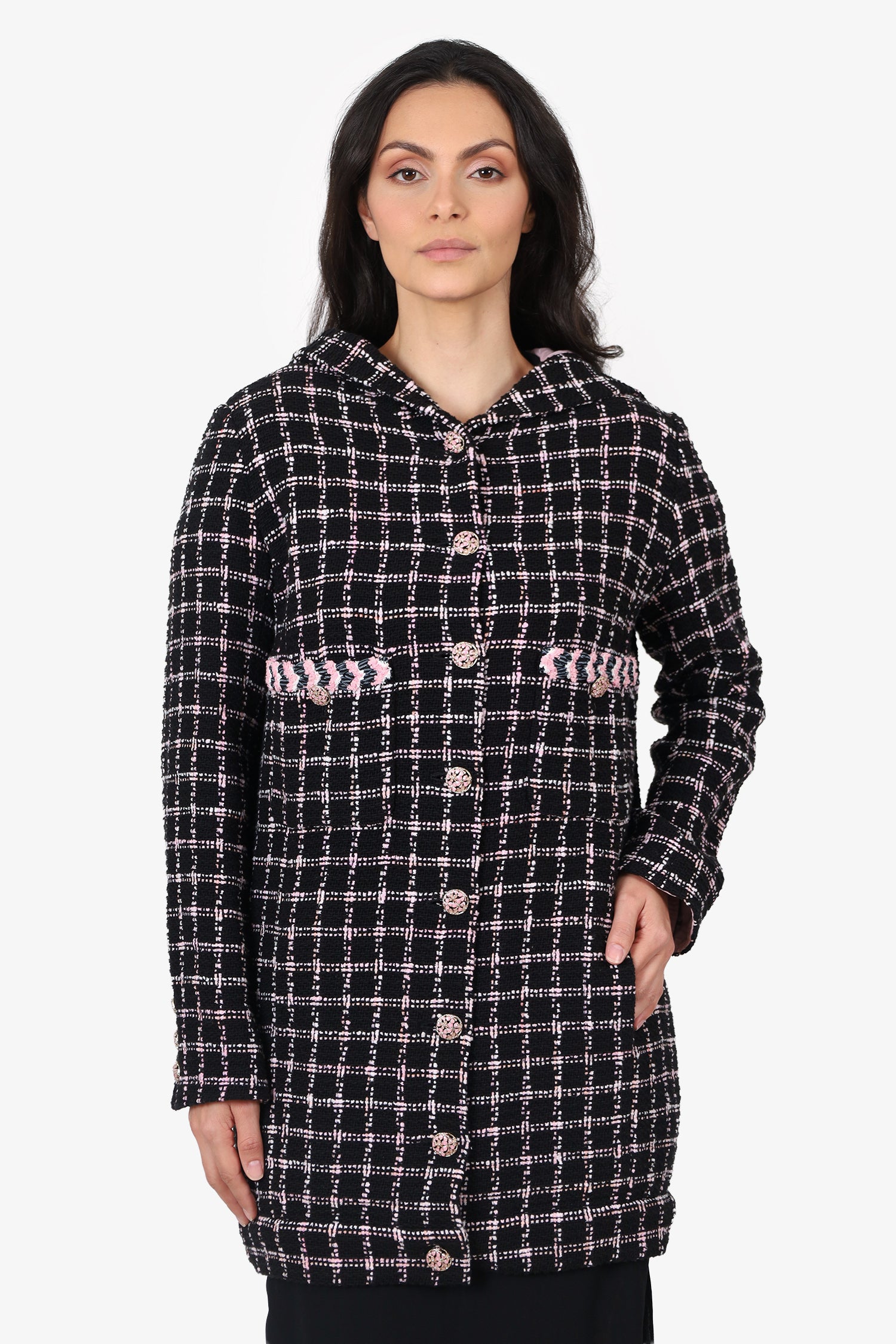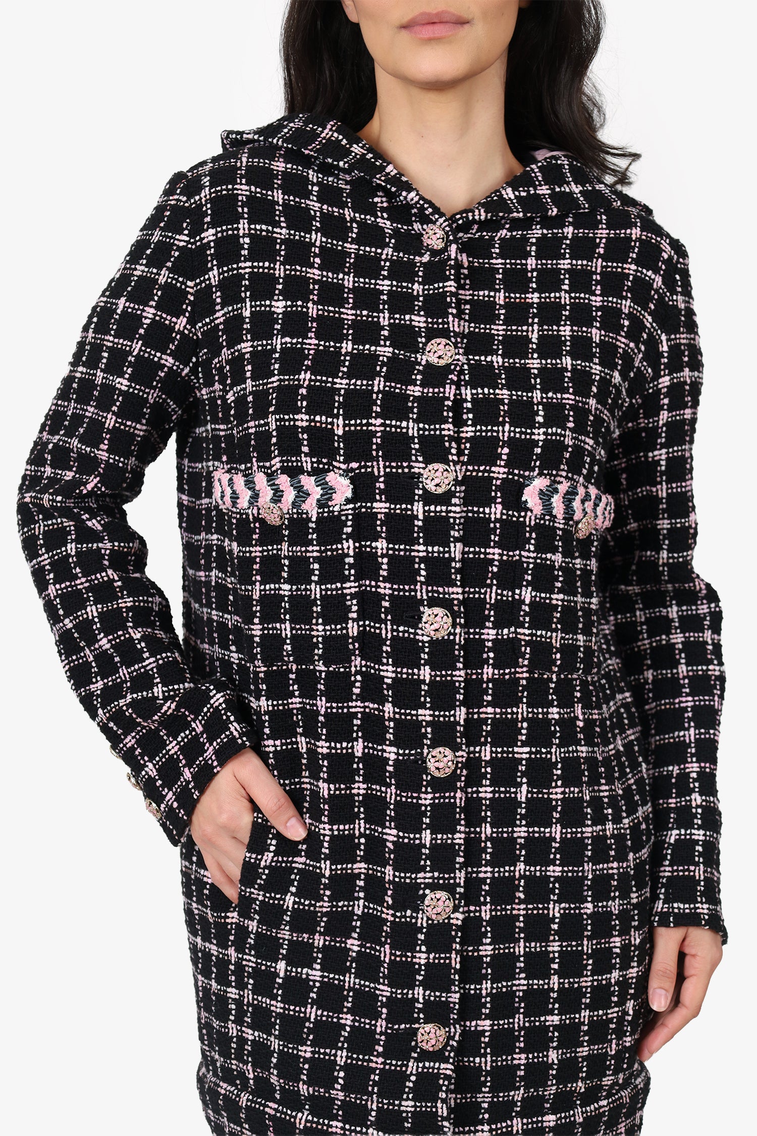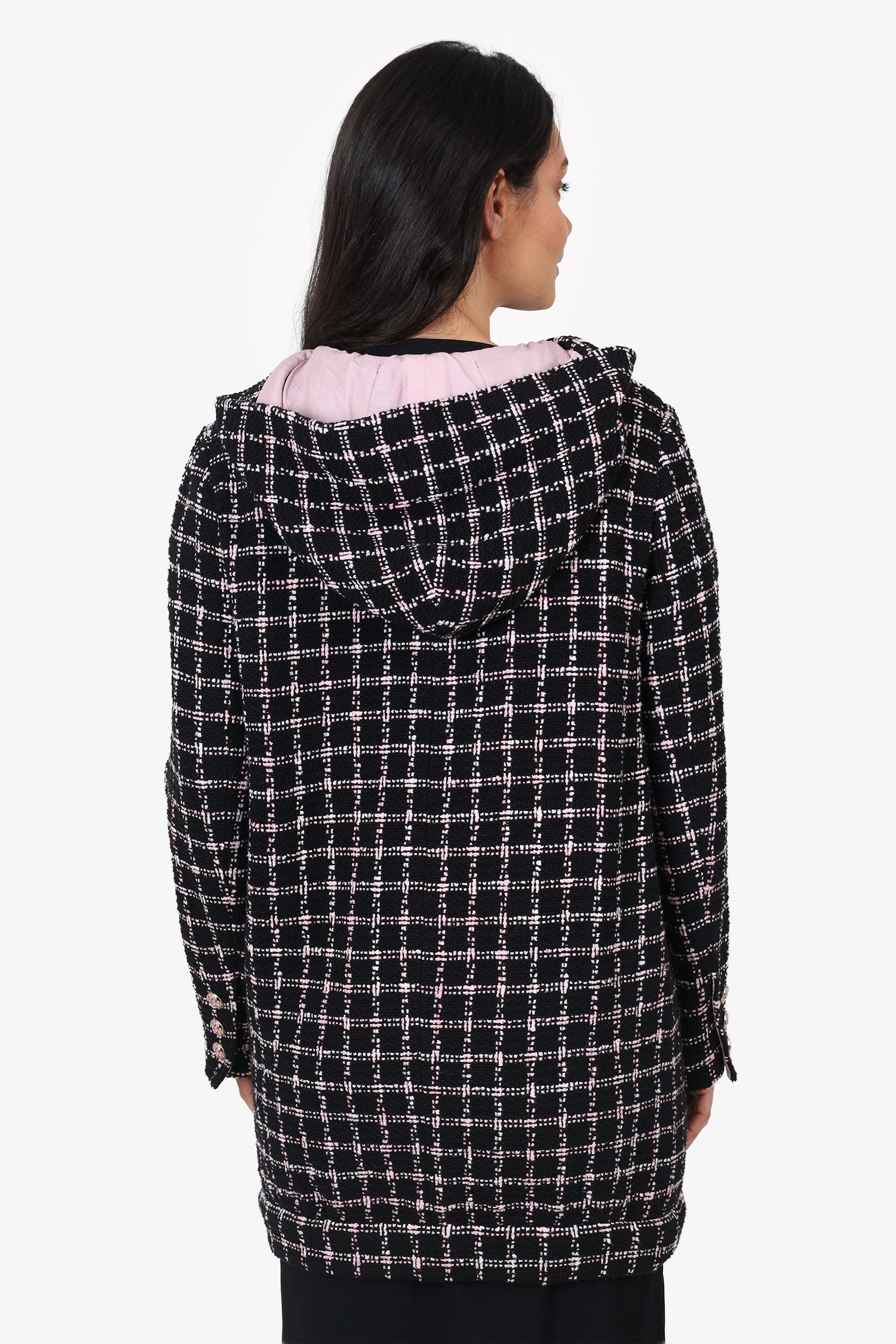 Pre-Loved Chanel™ 24S Black/Pink Tweed Coat With Hood Size 42