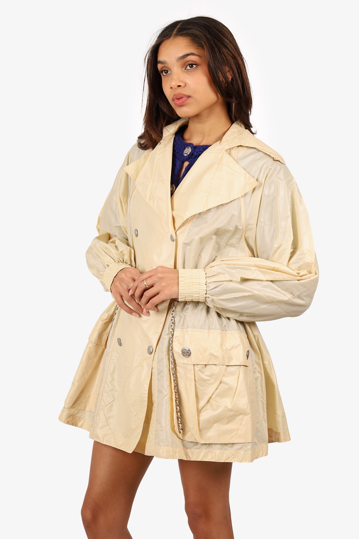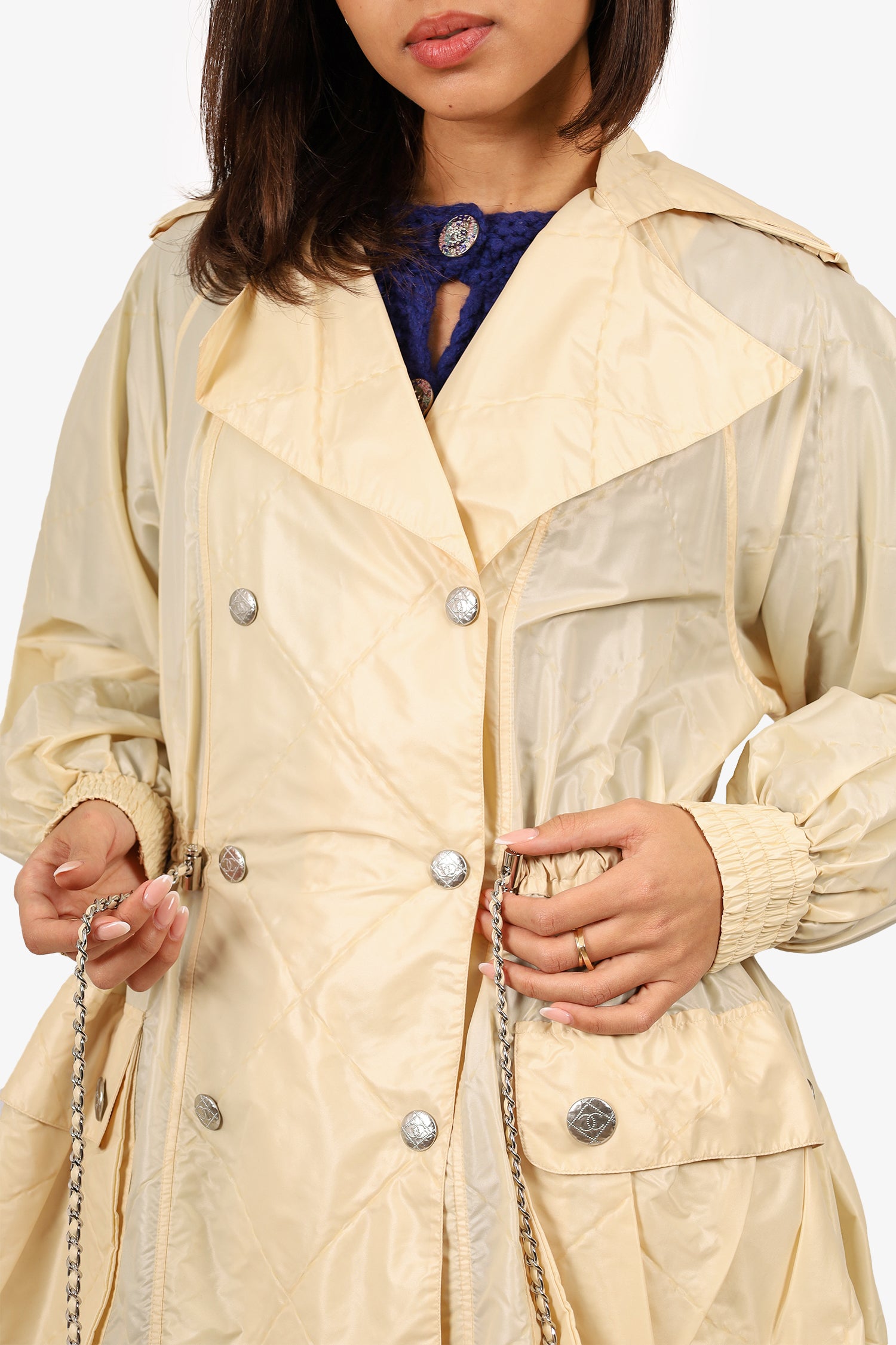 Pre-Loved Chanel™ 94P Beige Cotton Gold Chain CC Oversized Trench Coat Size 34 (As Is)