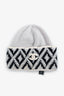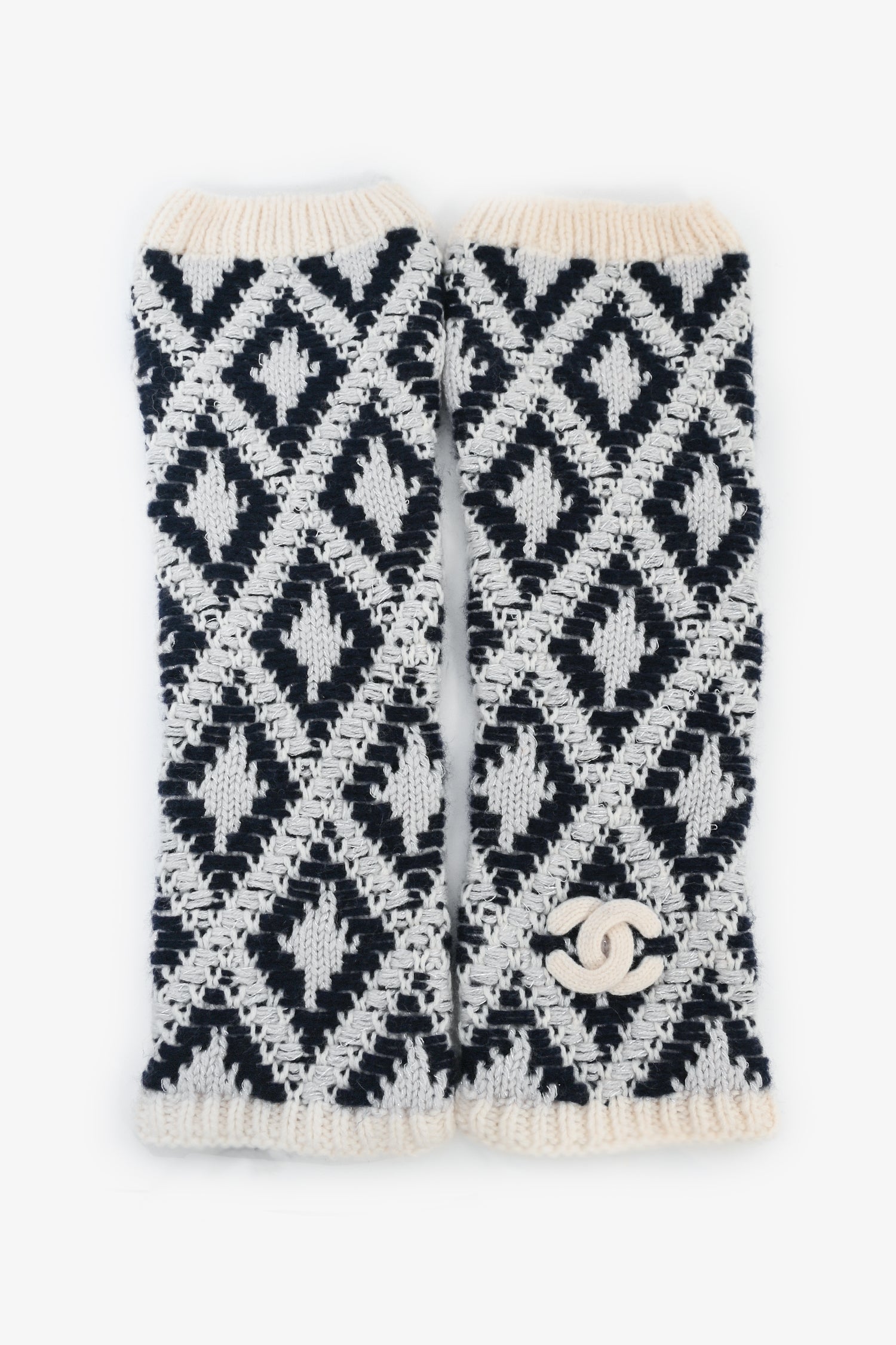 Pre-Loved Chanel™ Grey/Navy Blue Cashmere Blend Knit Beanie + Fingerless Gloves Set. silver details in knitting. Tonal stitching.