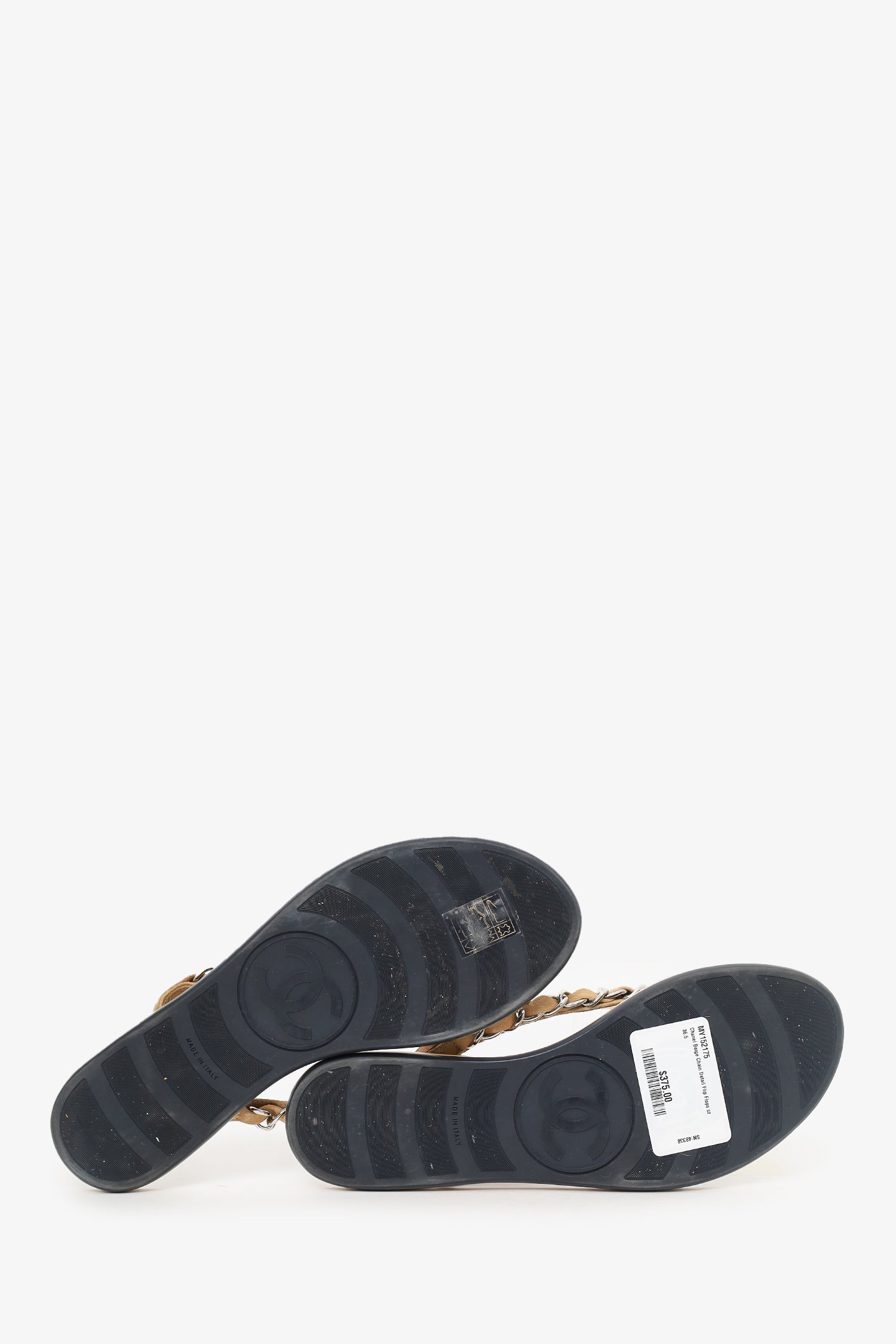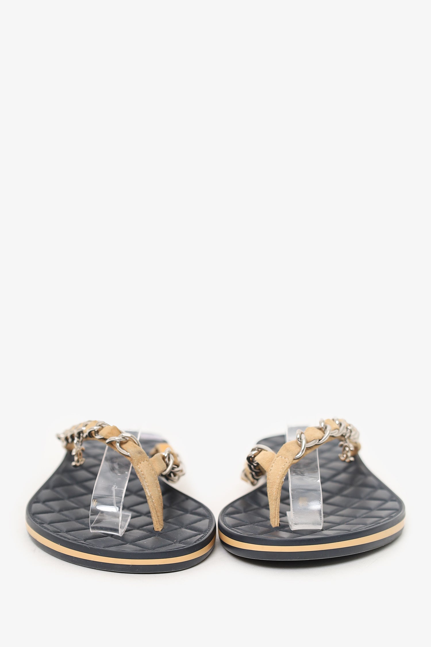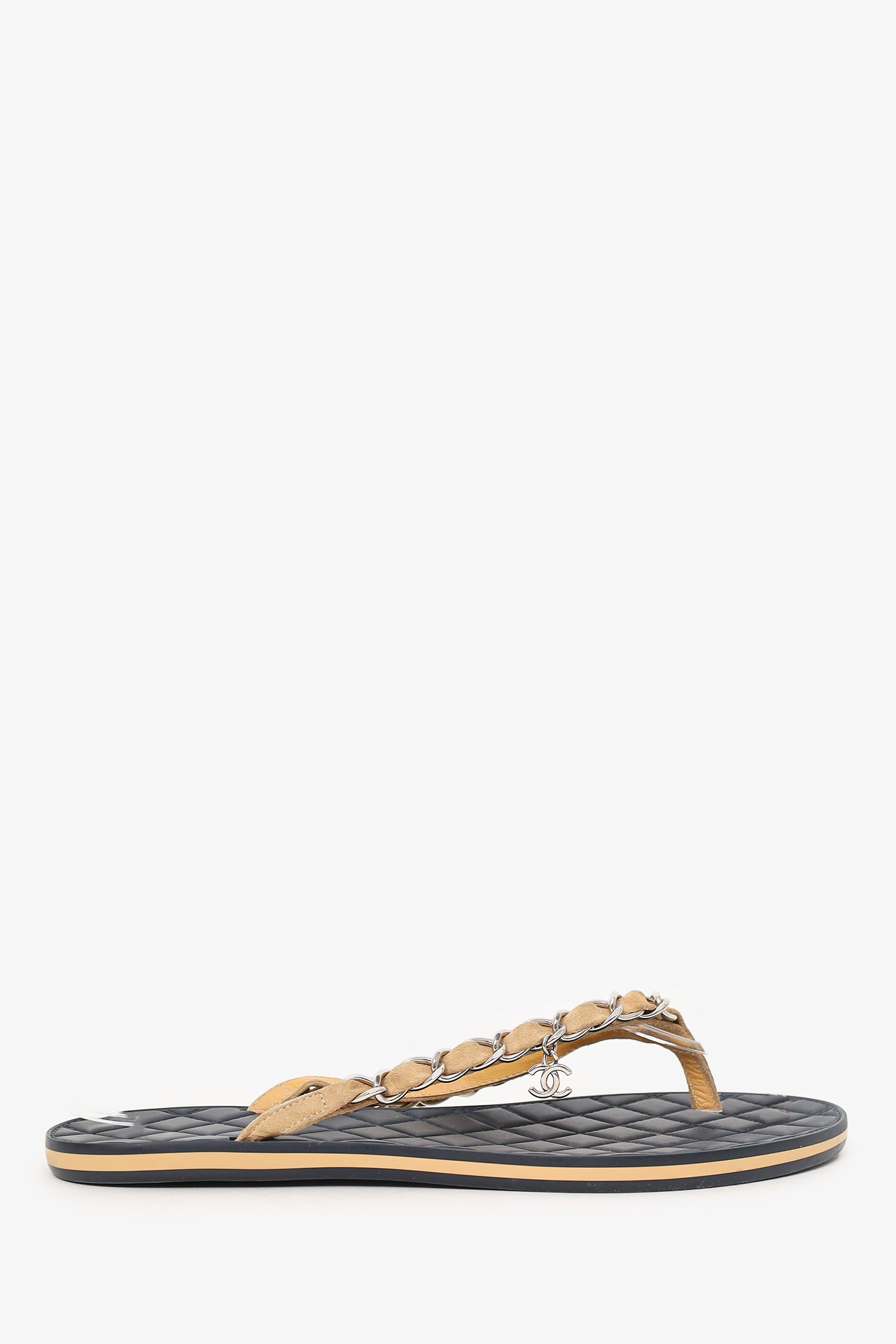 Pre-loved Chanel™ Beige Chain Detail Flip Flops Size 36.5