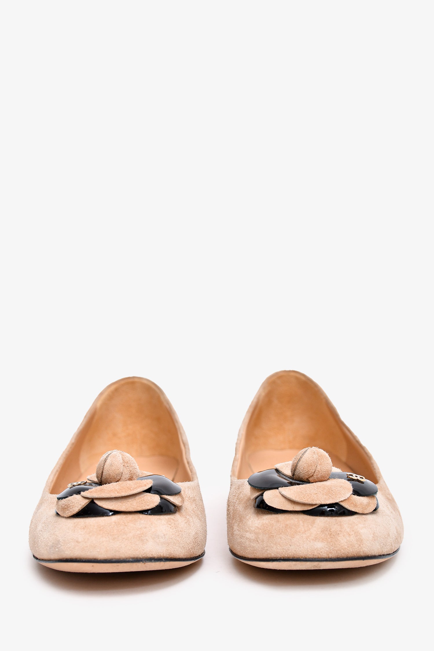 Refresh availabilityPre-loved Chanel™ Beige Suede Camellia Flower Flats. Slip on.