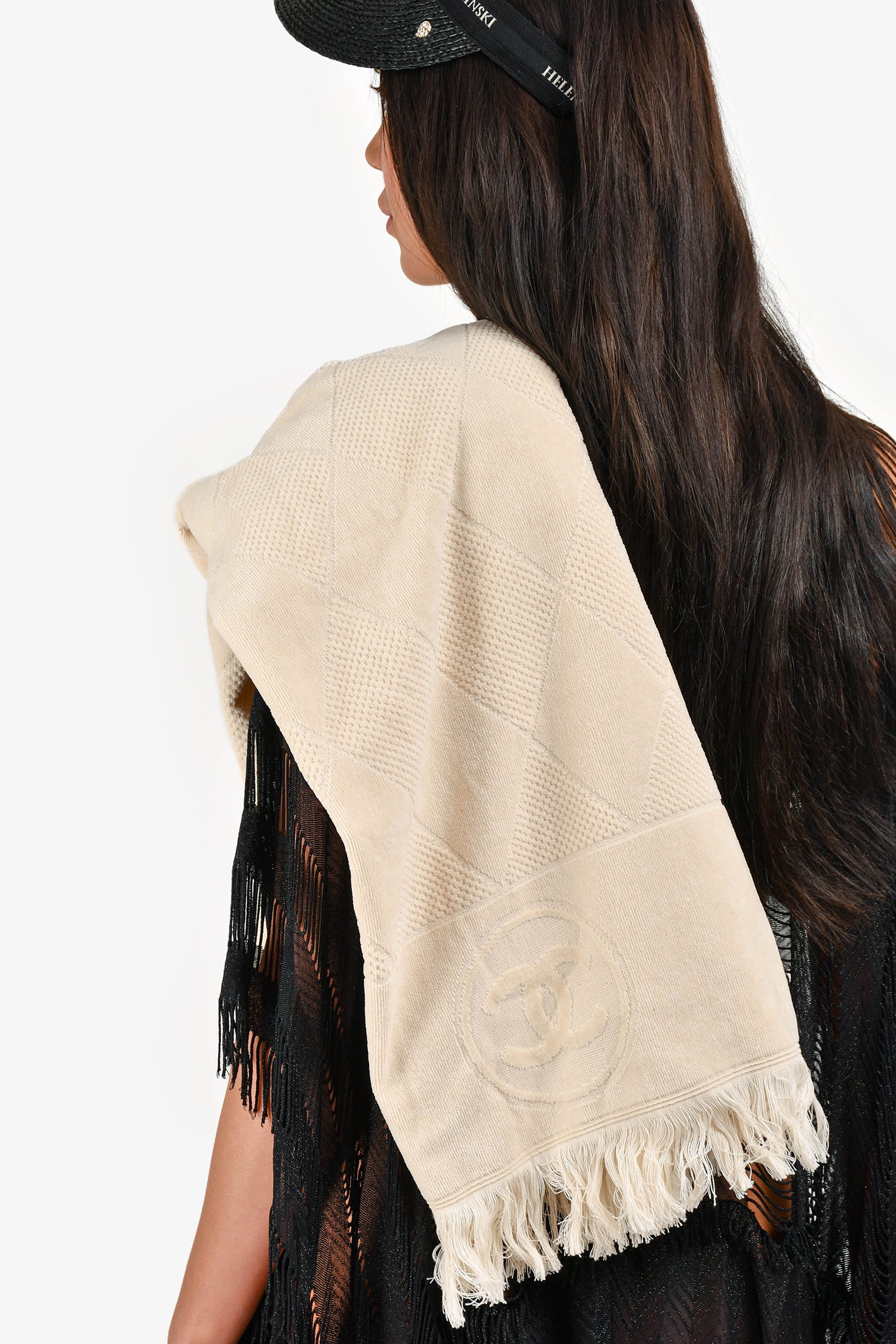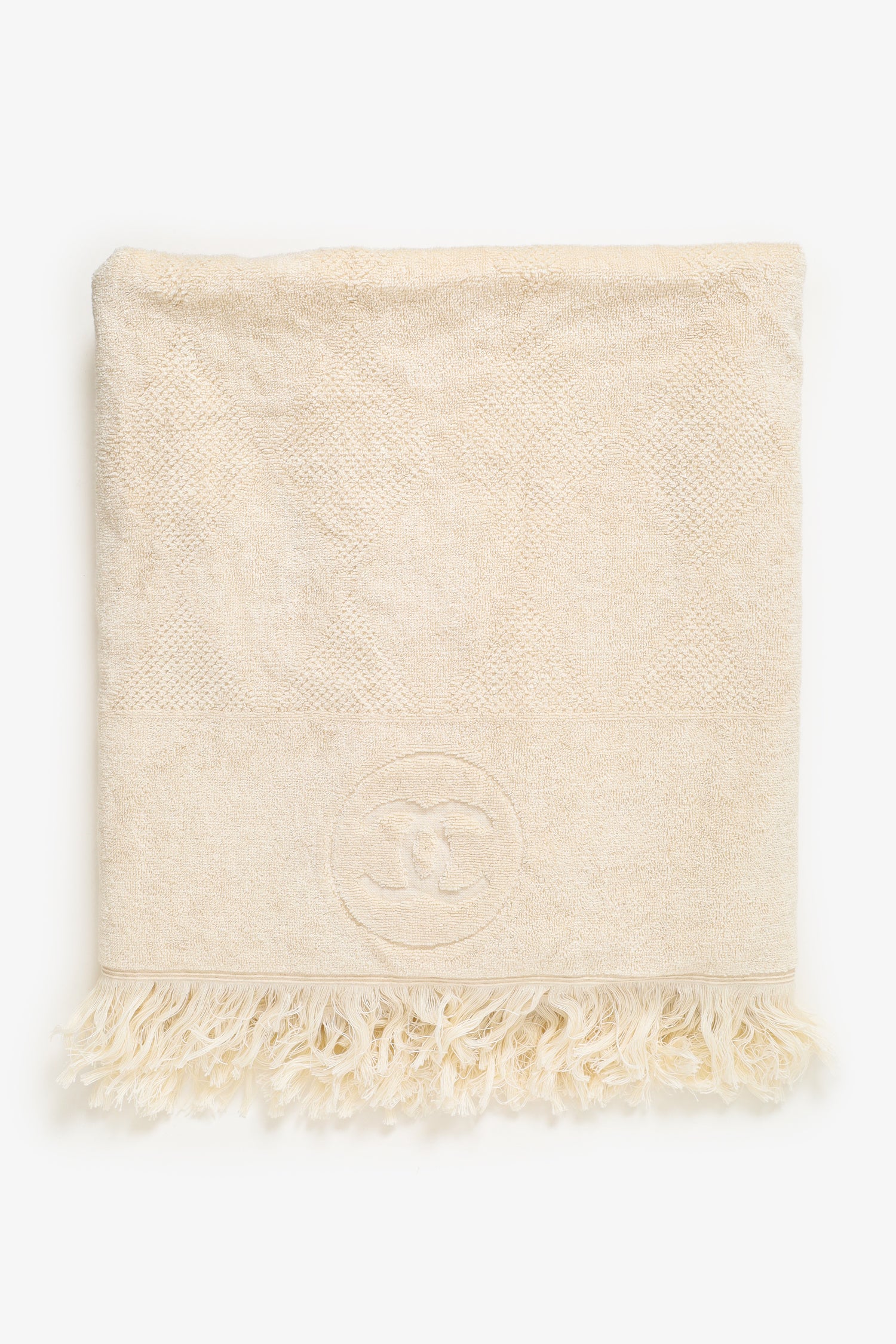 Pre-Loved Chanel™ Beige Terry Cloth Beach Tote & Towel Set