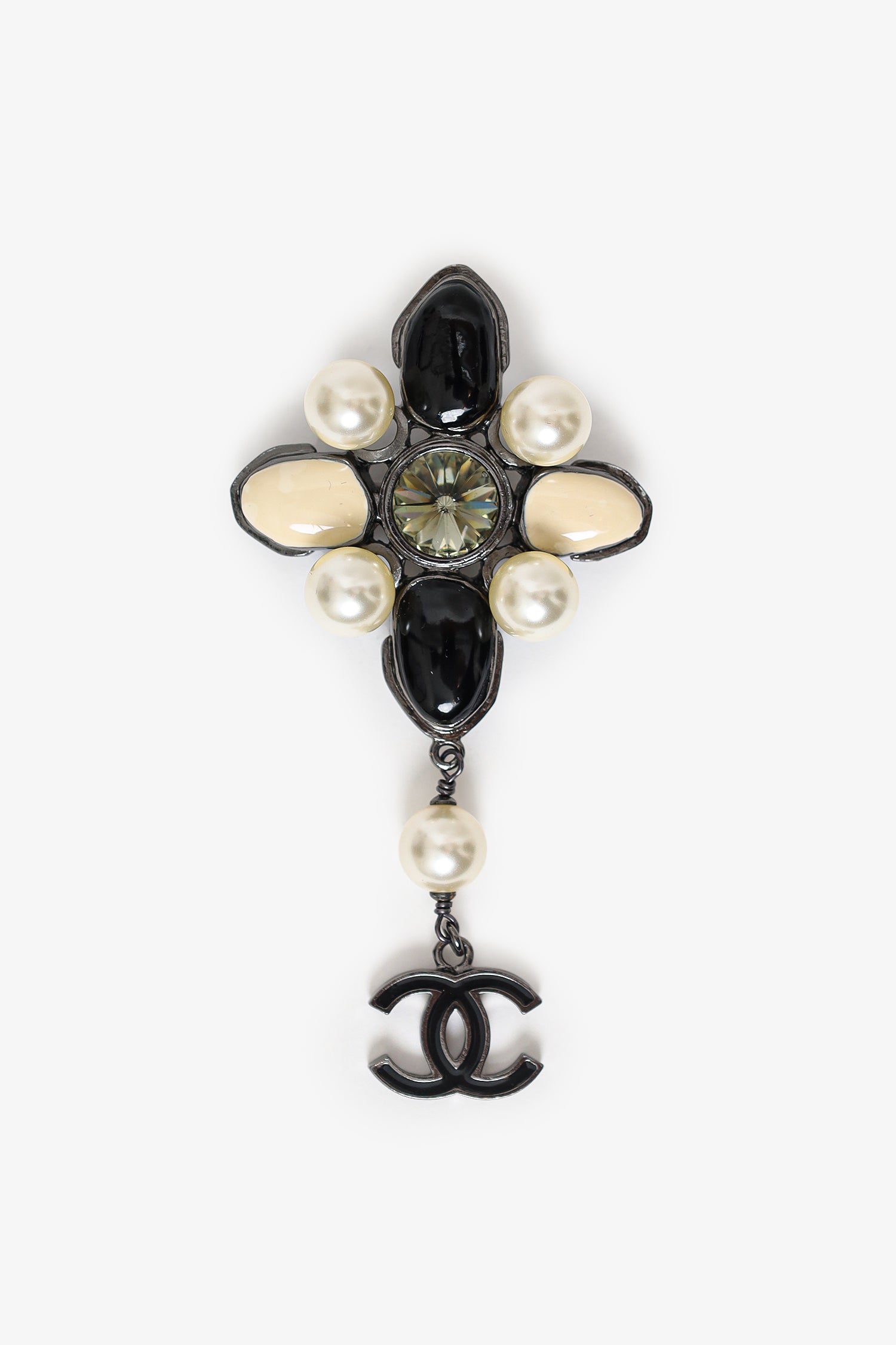 Pre-Loved Chanel™ Bicolour CC Drop Cabochon Brooch