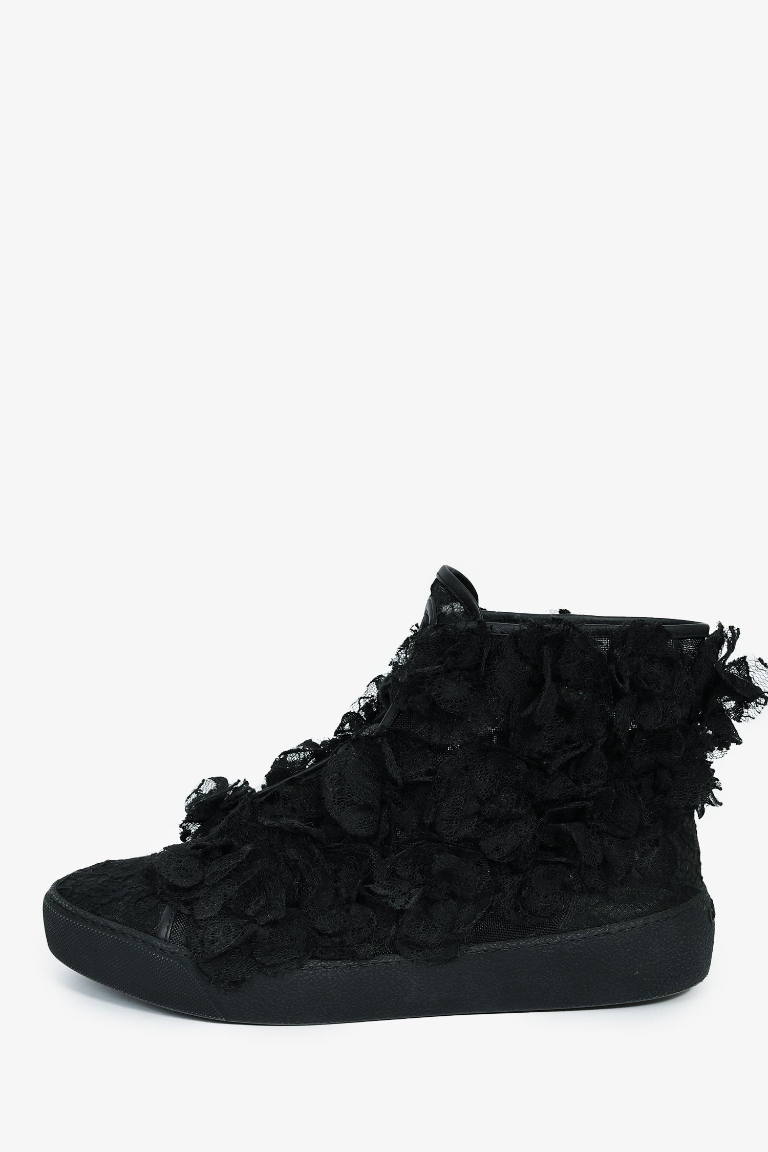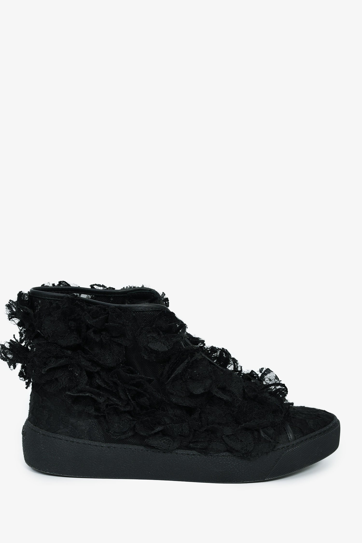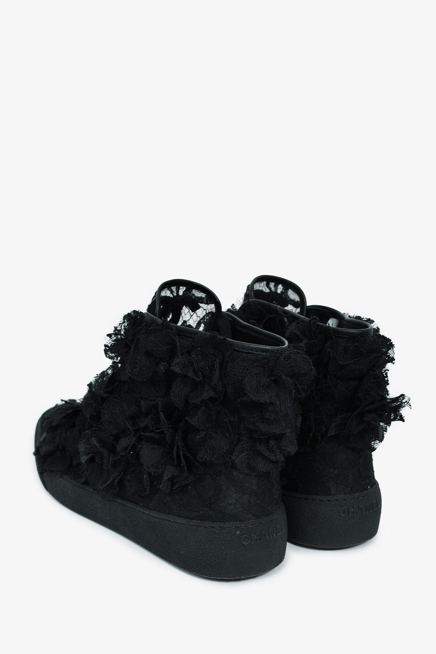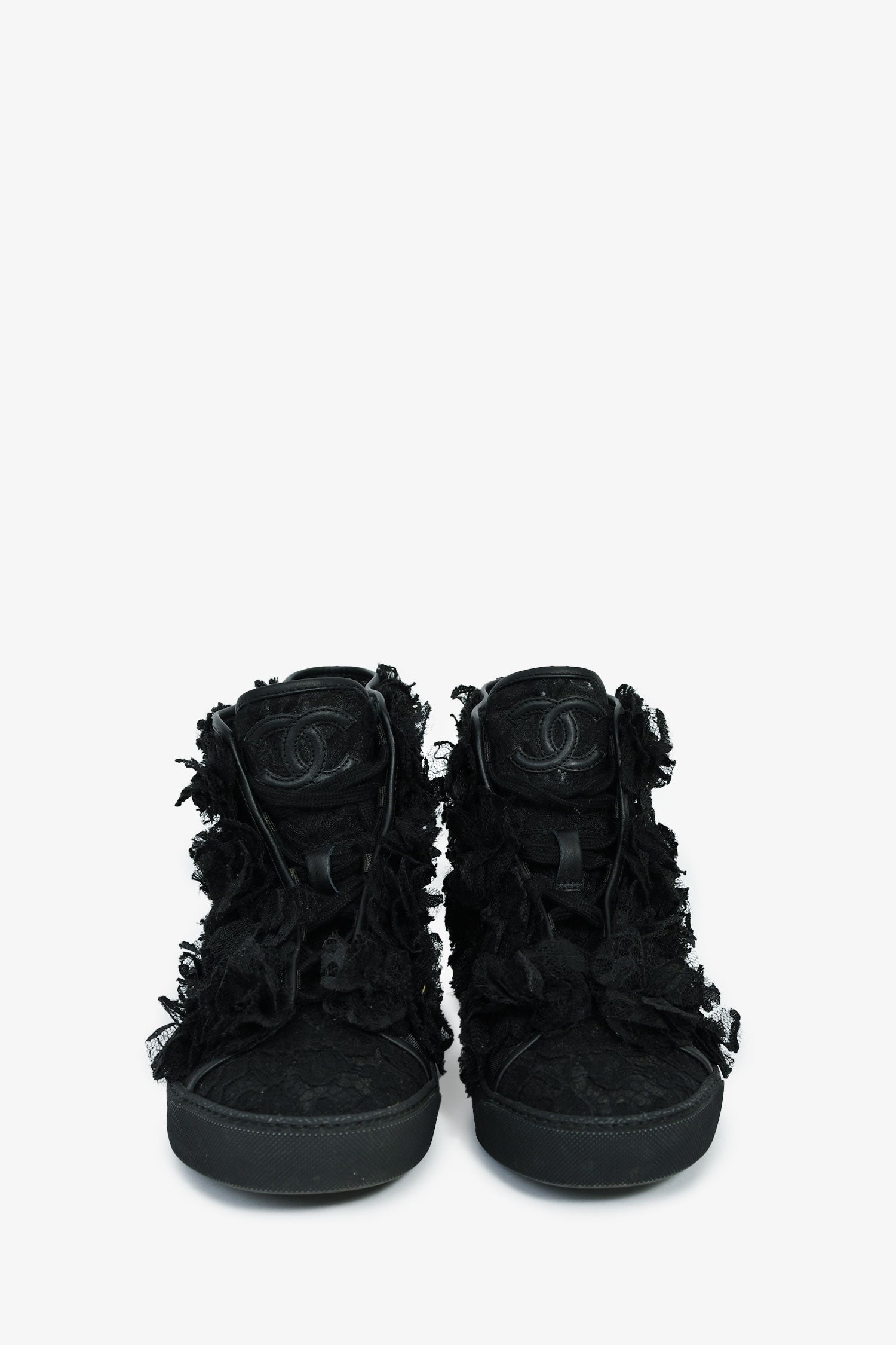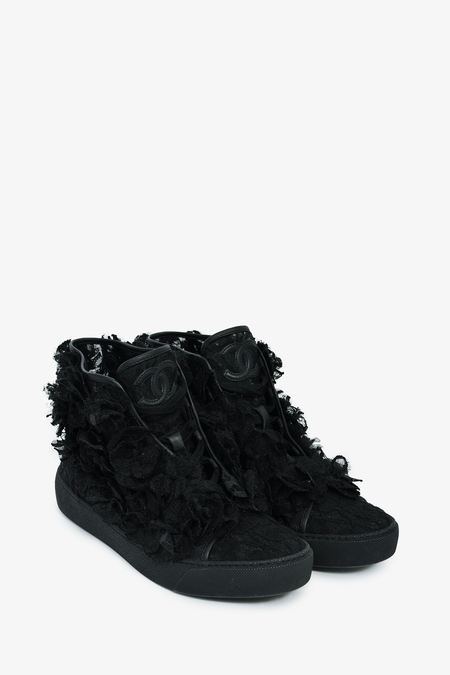 Pre-Loved Chanel™ Black Camellia Lace High Top Sneakers Size 38