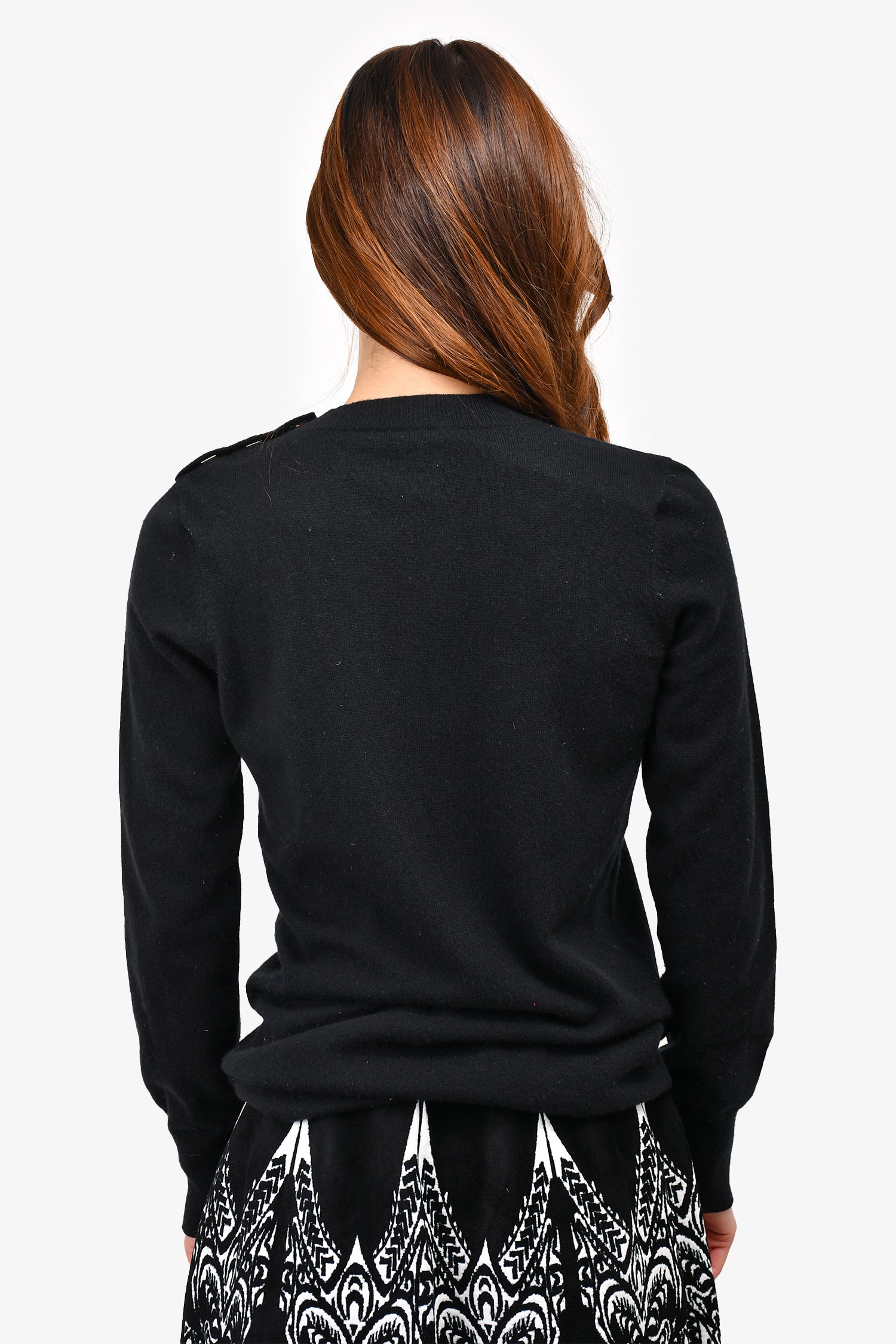 Pre-Loved Chanel™ Black Cashmere CC Detail Sweater. Gold-tone hardware. Ribbed at the sleeves, hem and collar. Tonal stitching.