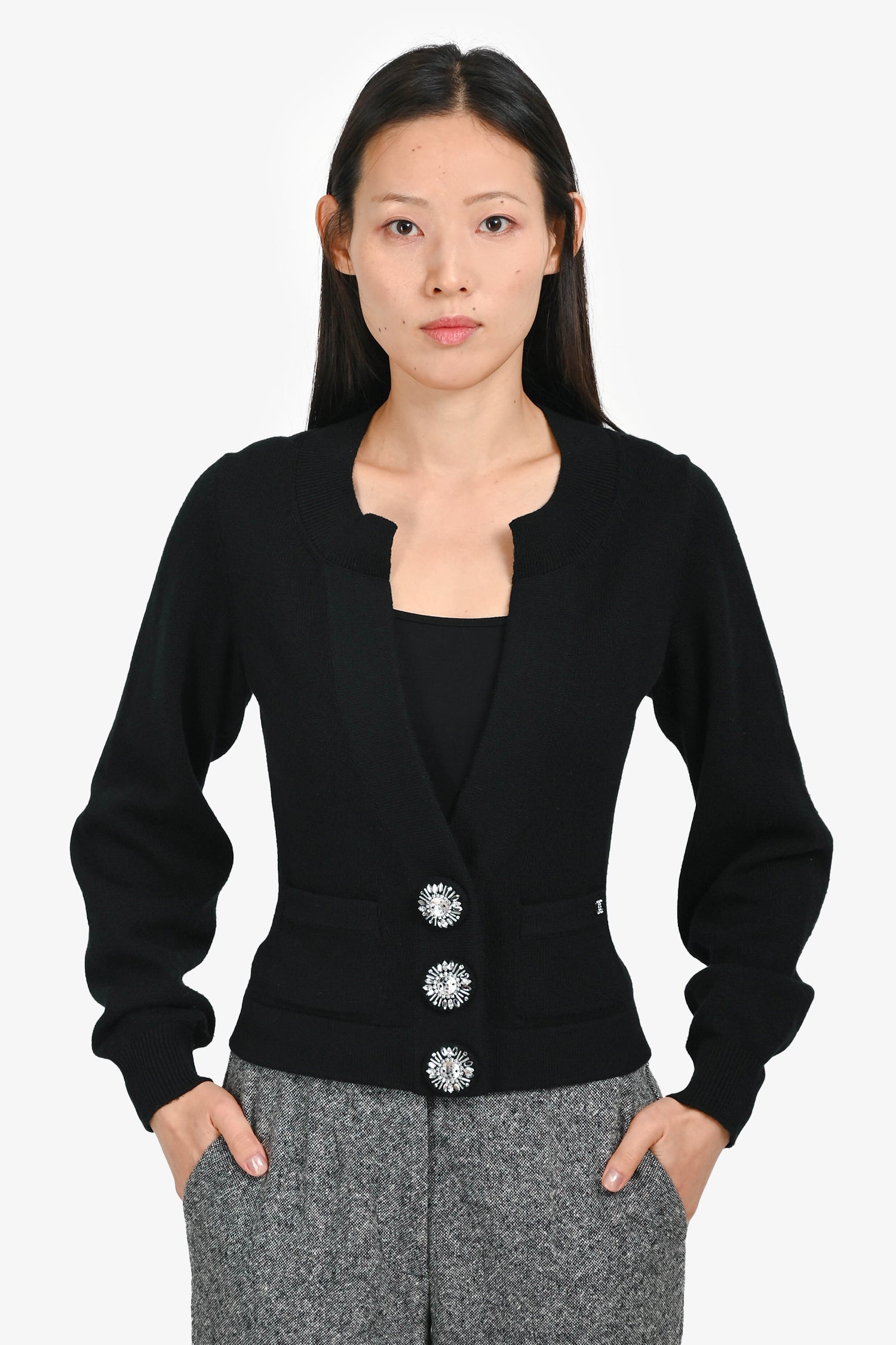 Pre-Loved Chanel™ Black Cashmere Embellished Button Cardigan Size 34