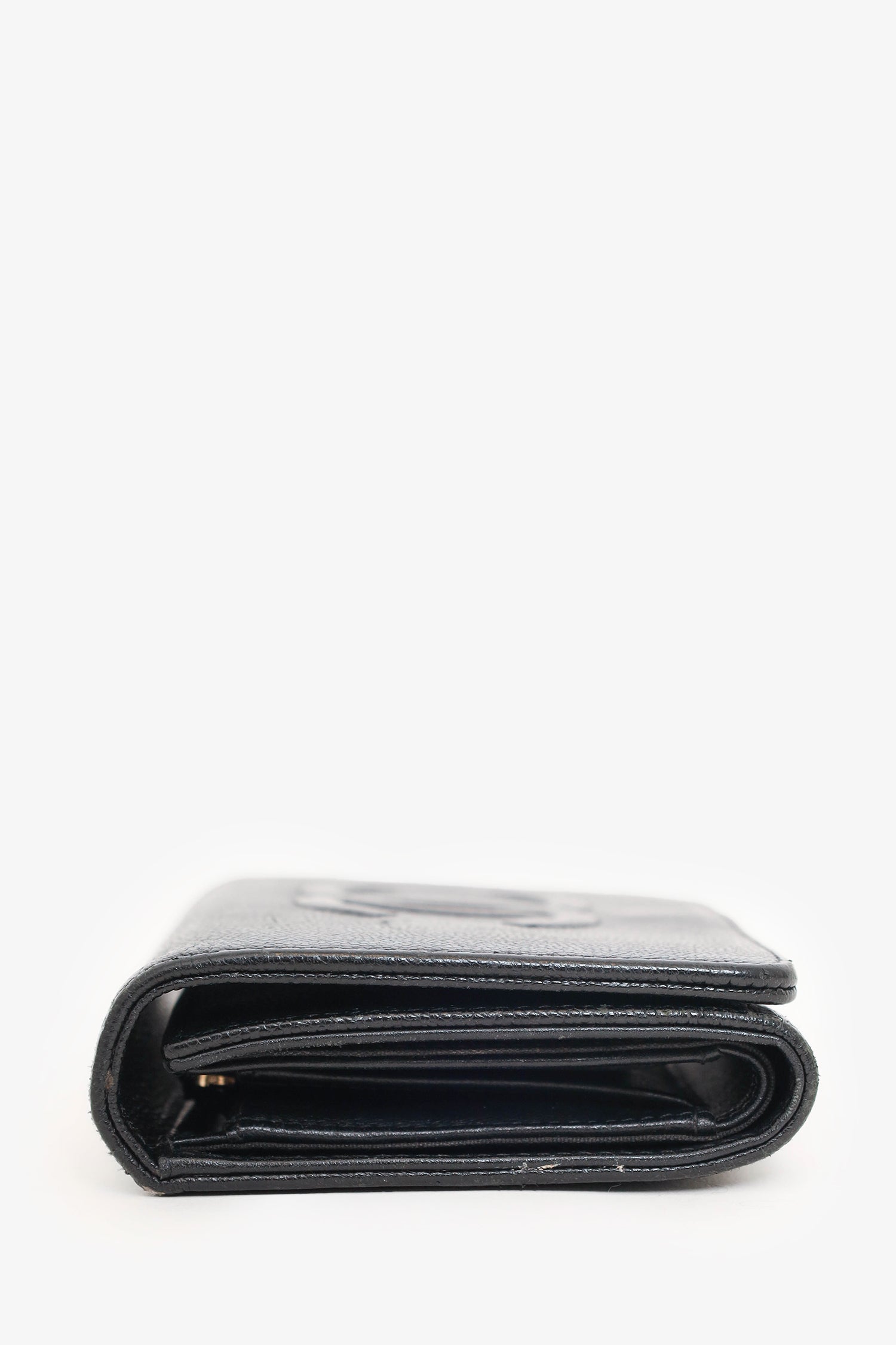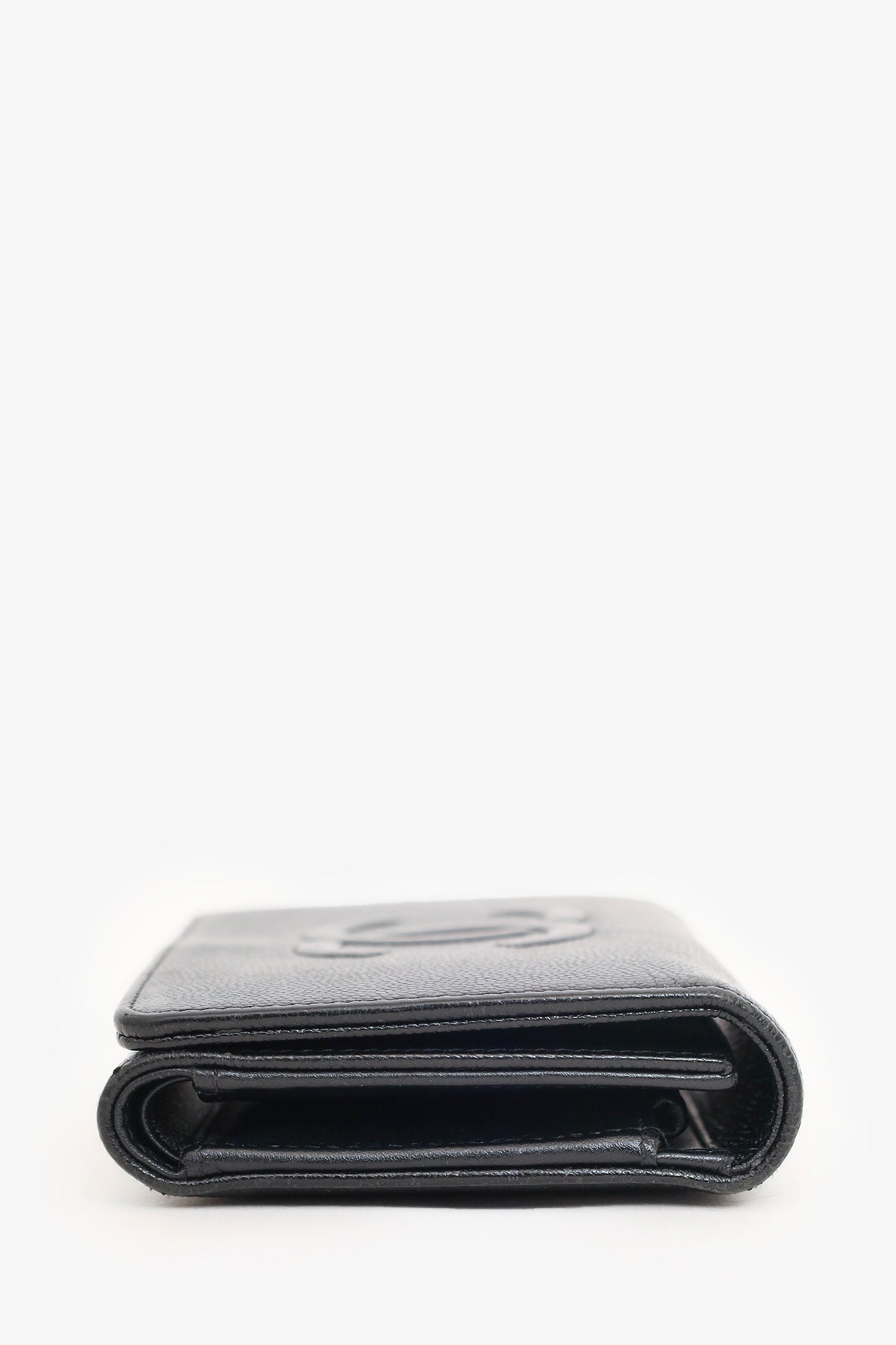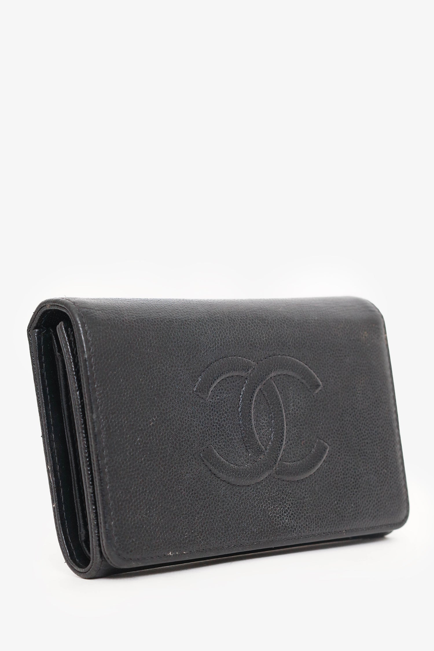 Refresh availabilityPre-Loved Chanel™ Black CC Medium Flap Wallet. Front fold-over flap with single snap button closure. 3 interior slip pockets, 5 interior card holder slots, and 1 interior zip closure pocket. Gold-tone hardware. Tonal stitching.