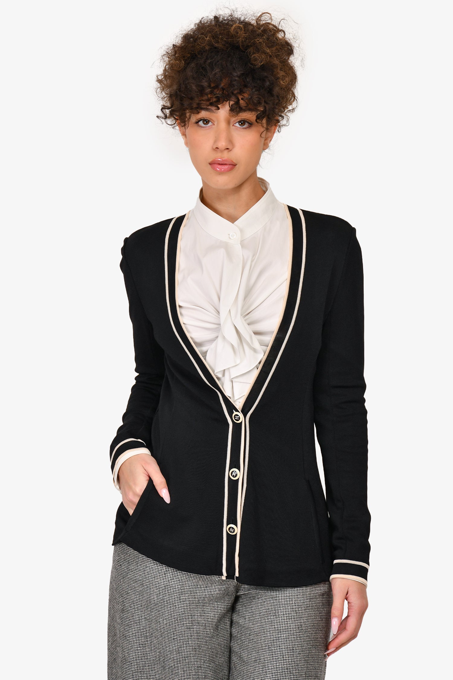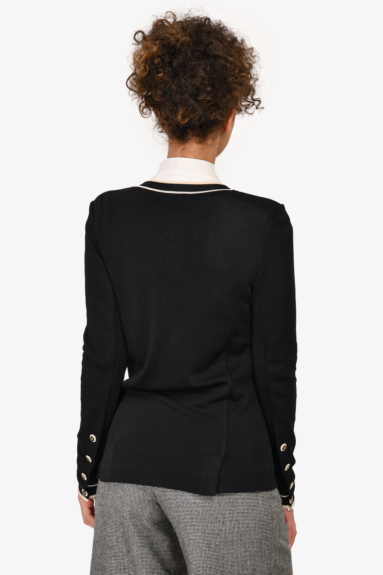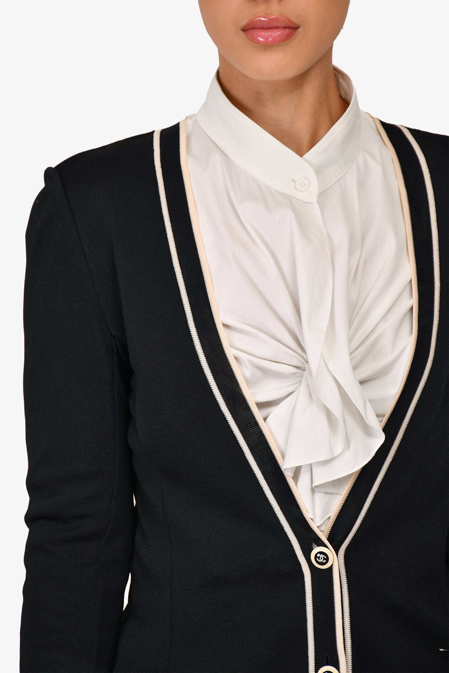 Pre-Loved Chanel™ 2014 Black/Cream CC Button Cardigan Size 34