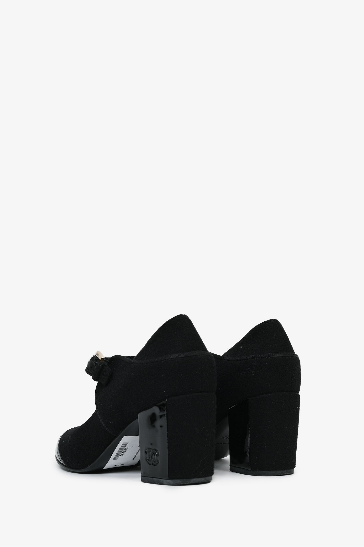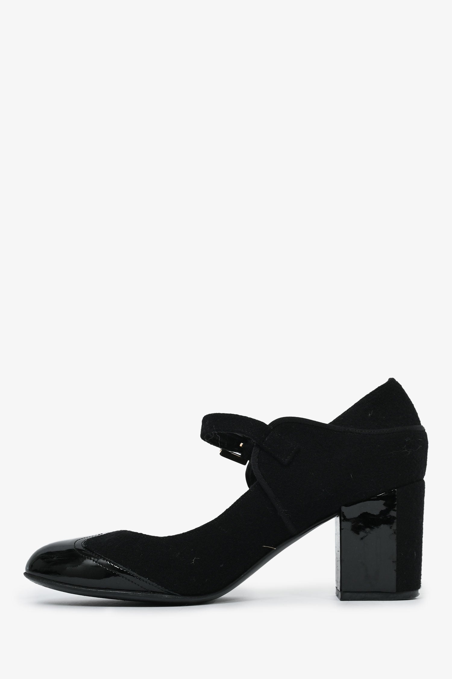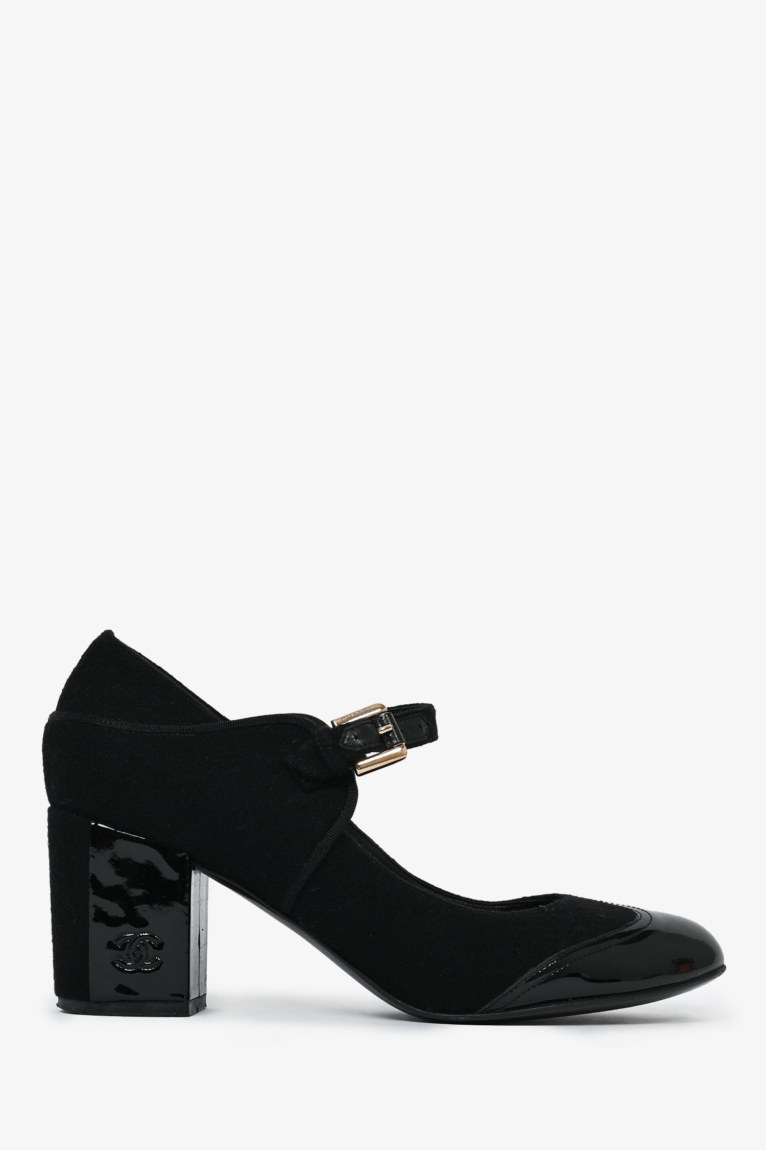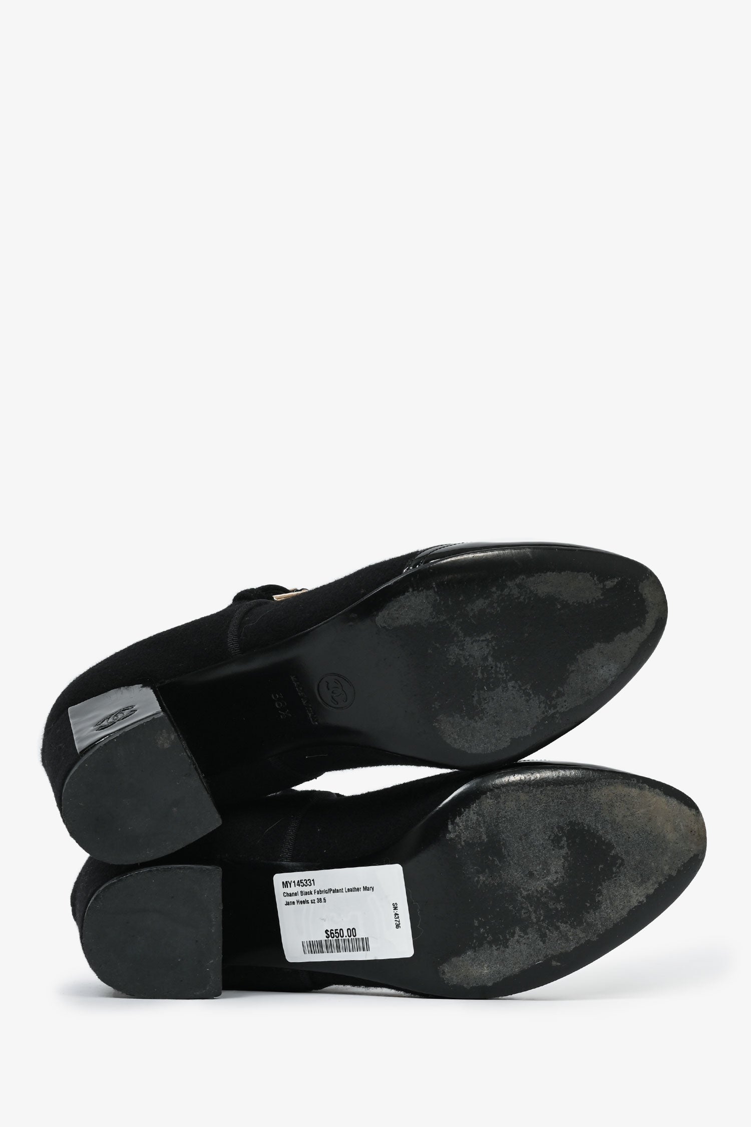 Pre-Loved Chanel™ Black Fabric/Patent Leather Mary Jane Heels Size 38.5