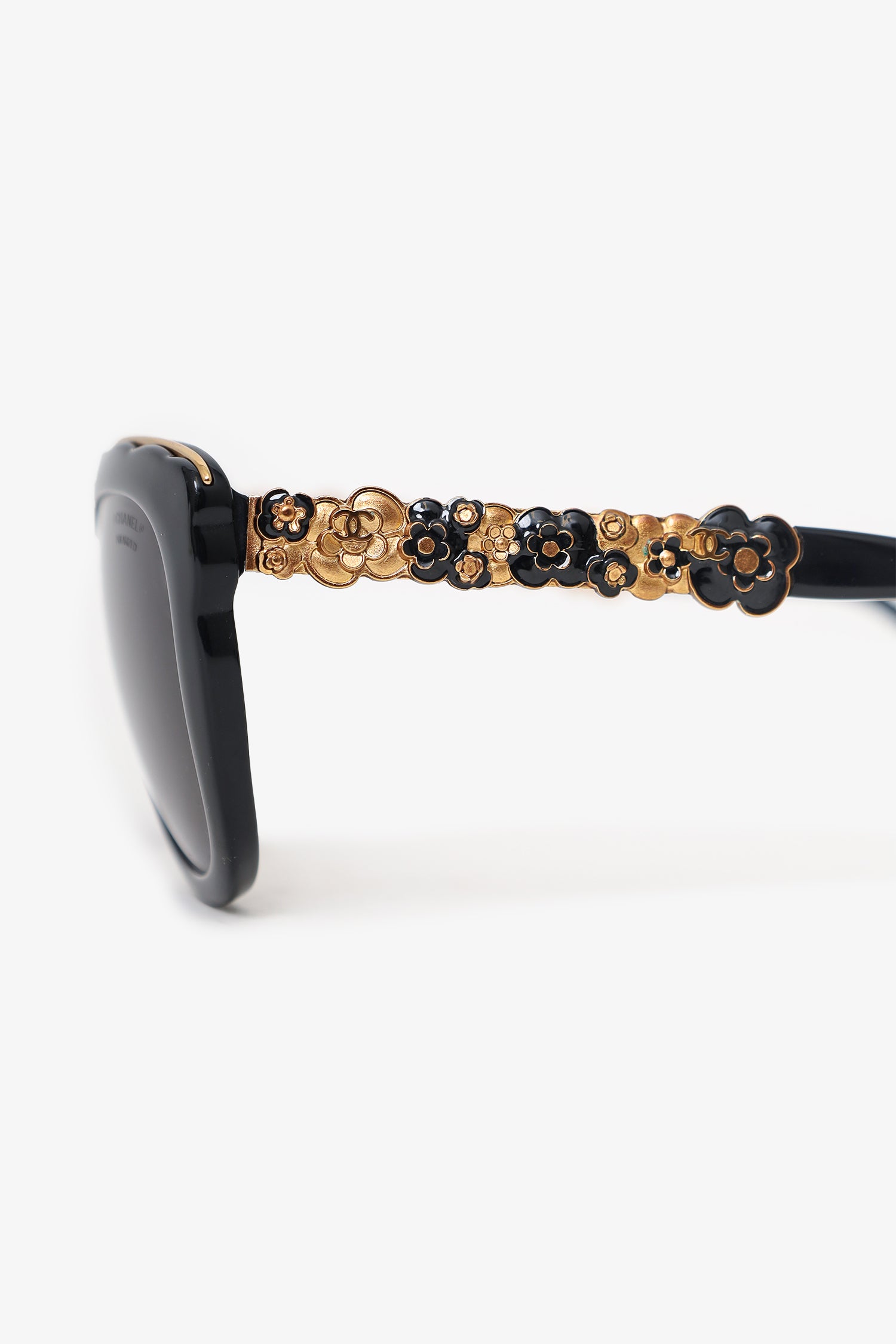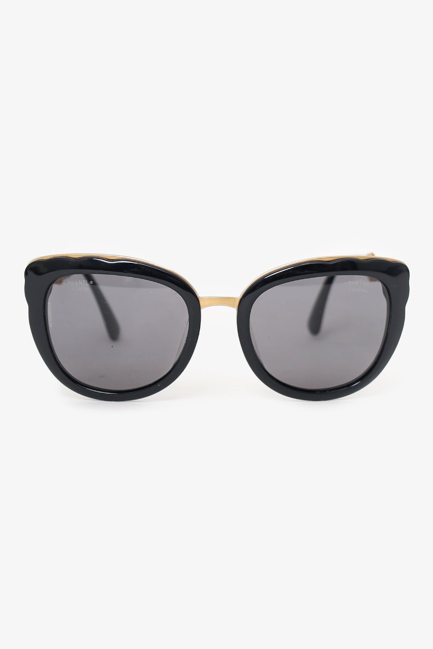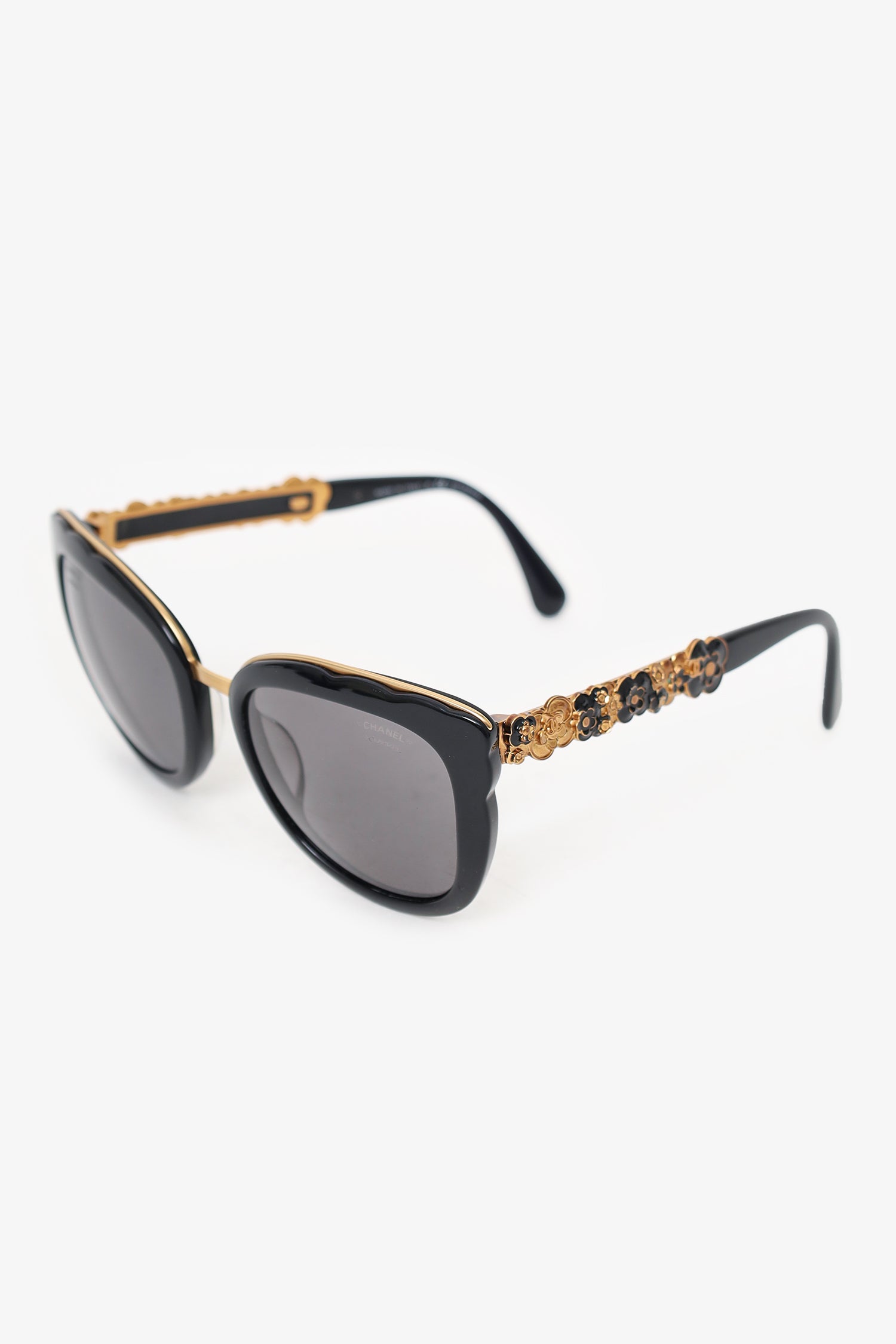 Pre-Loved Chanel™ Black Frame Camellia Flower Cat Eye Sunglasses