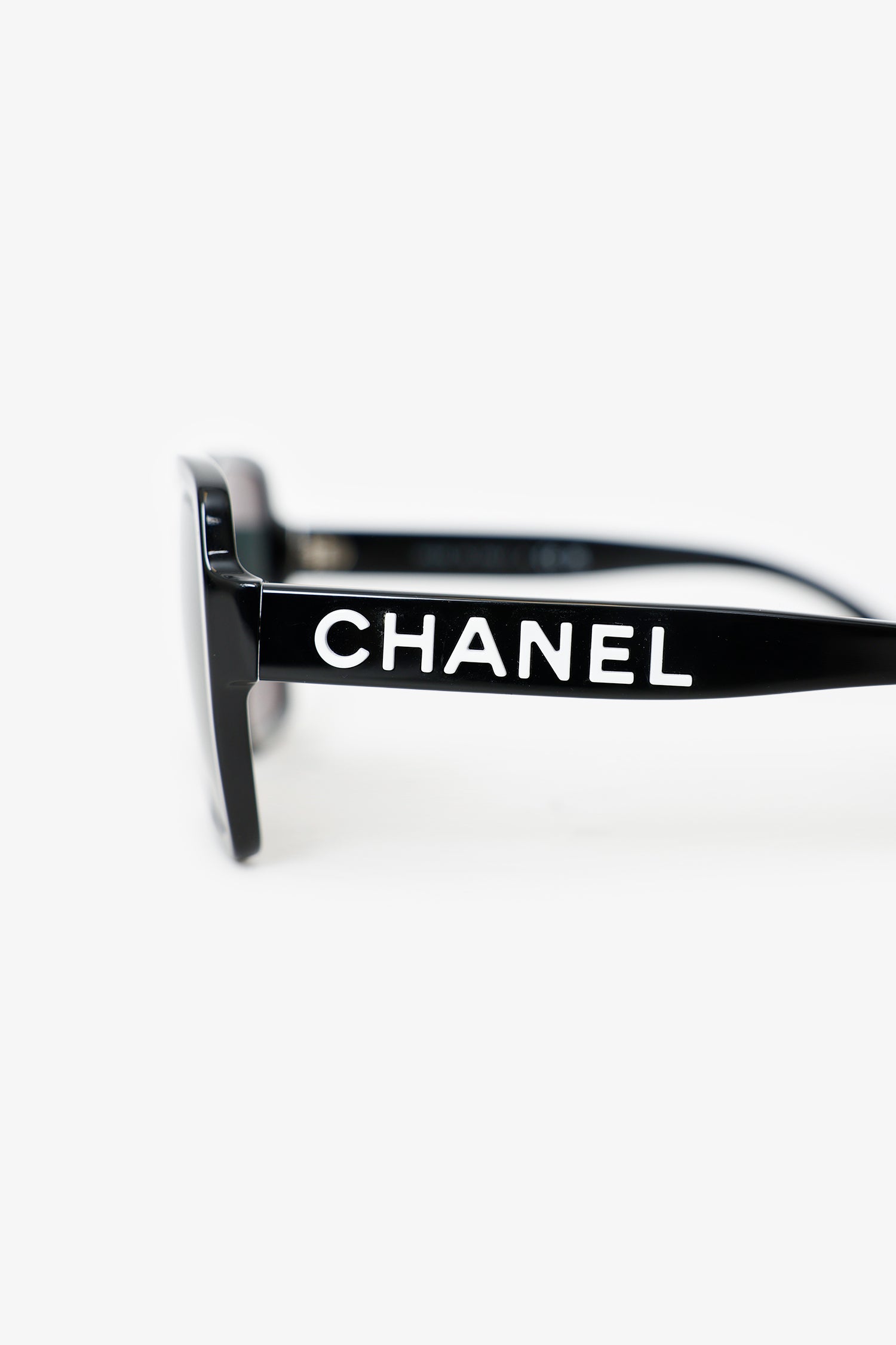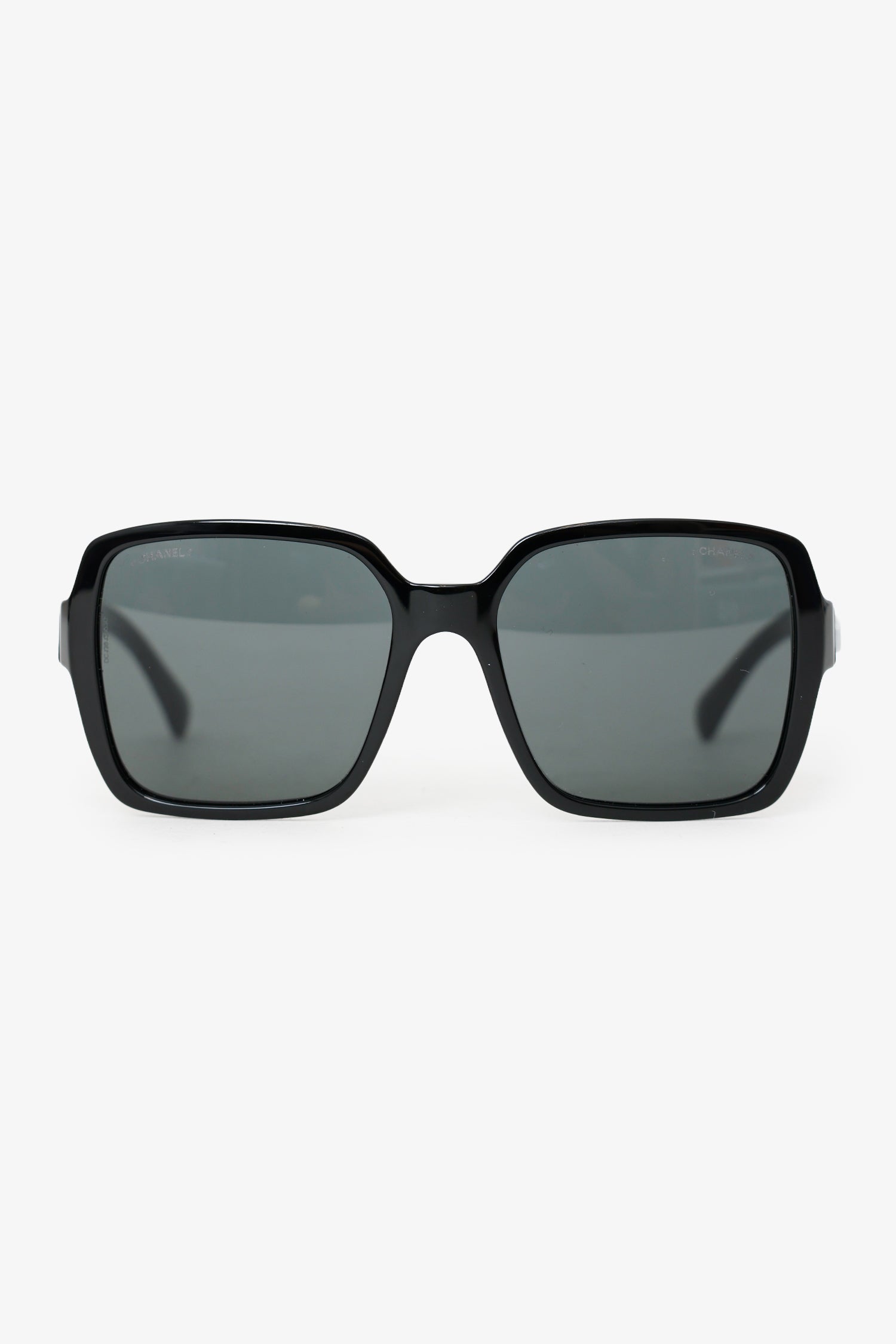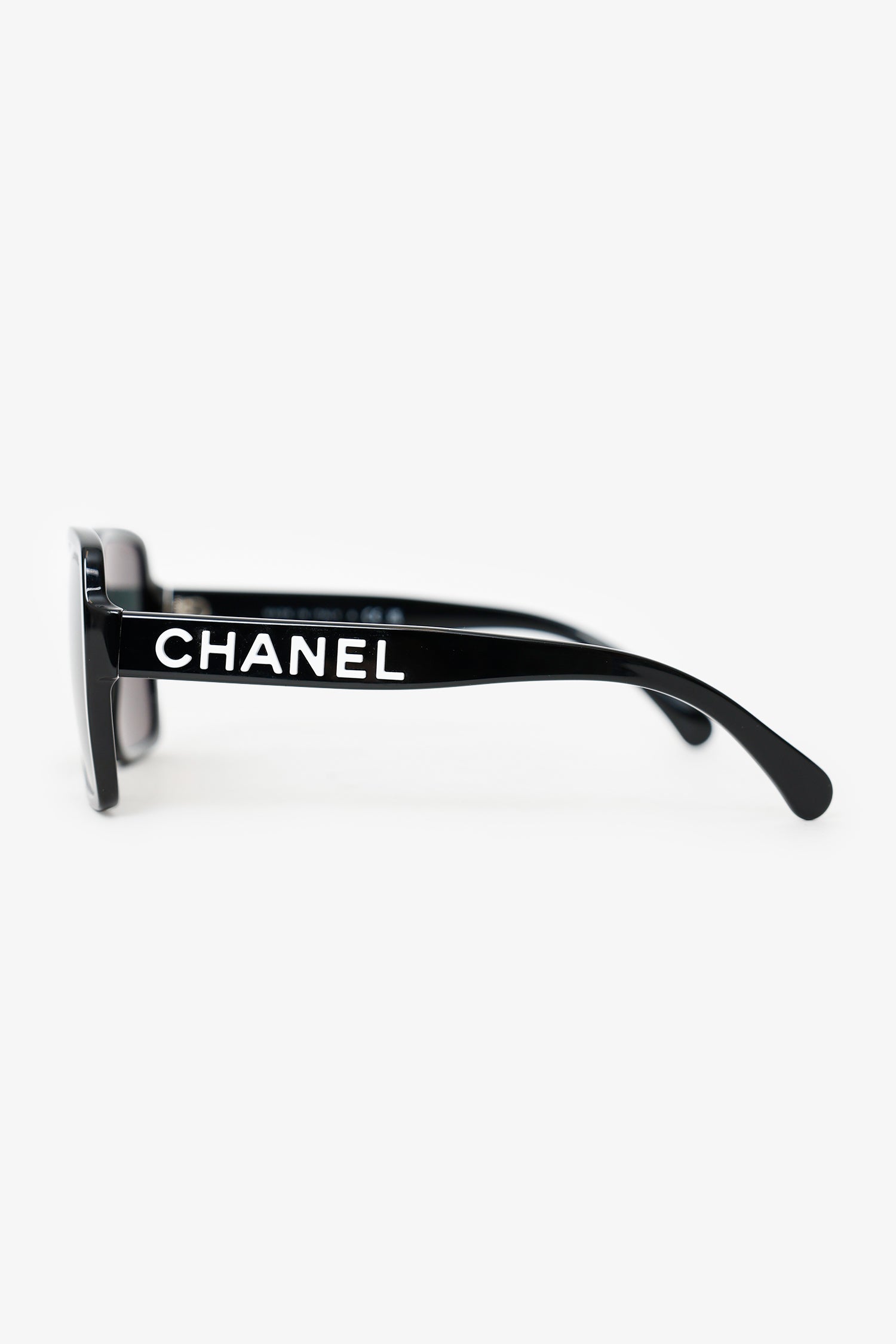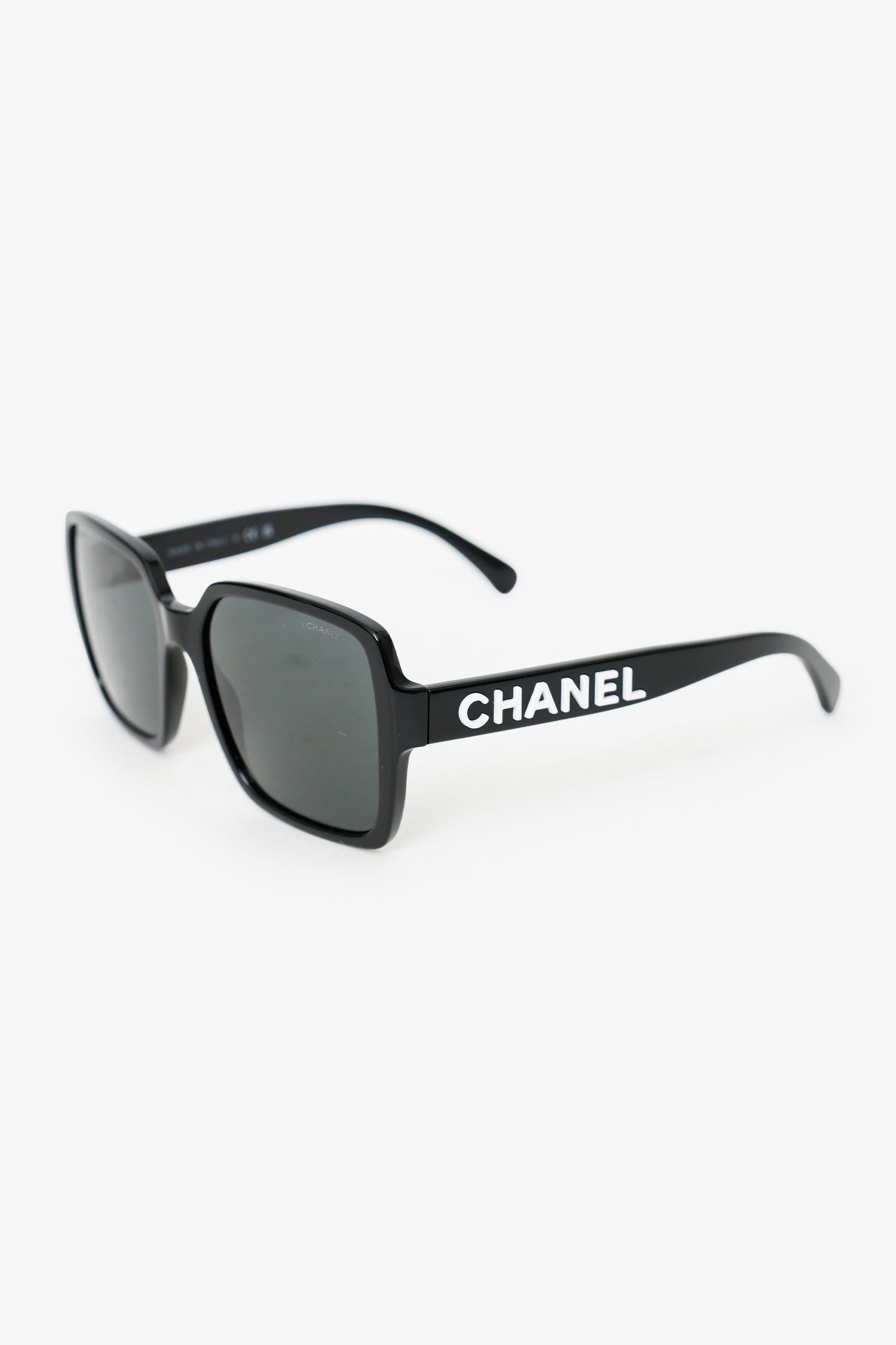 Pre-Loved Chanel™ Black Frame Logo Polarized Square Sunglasses