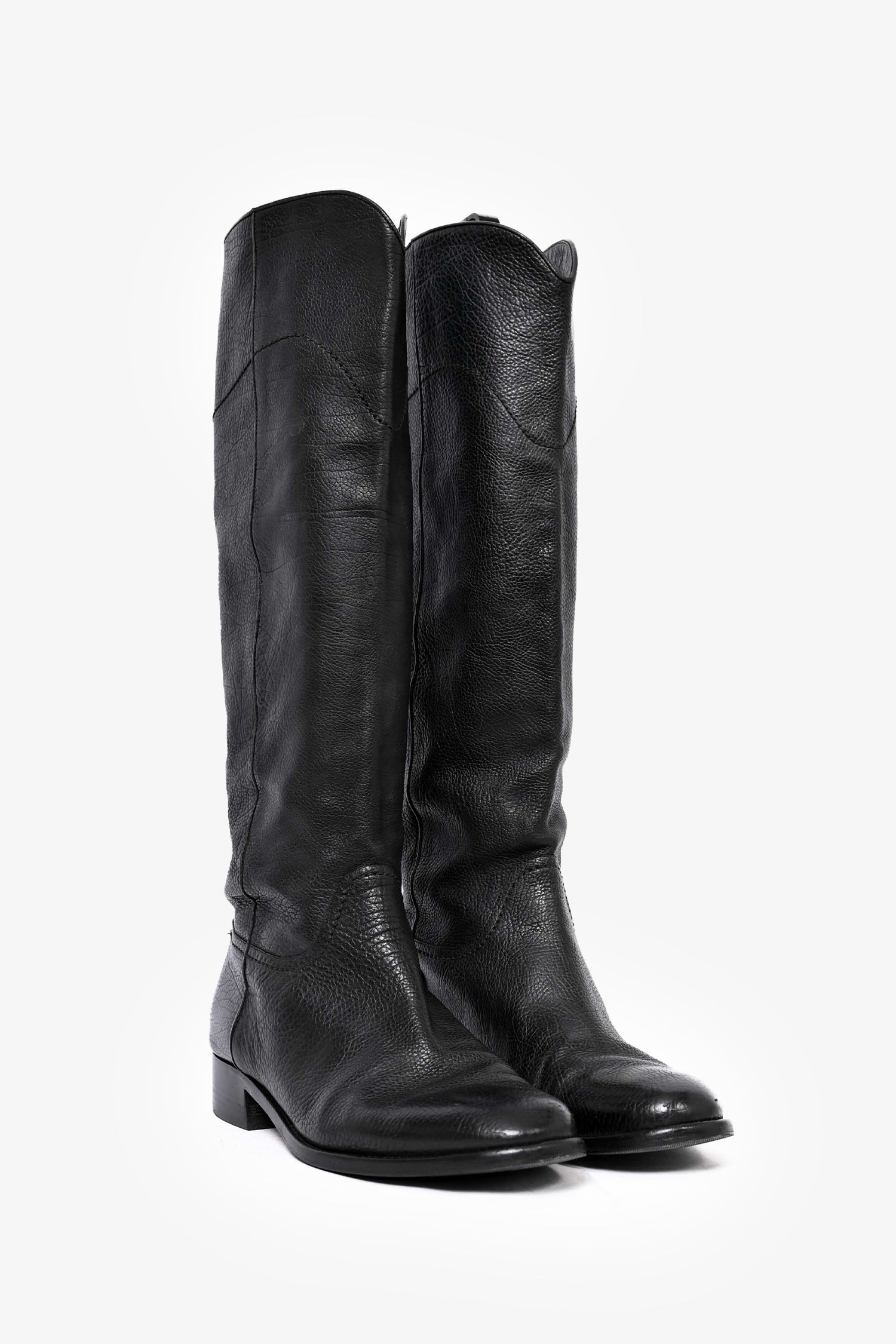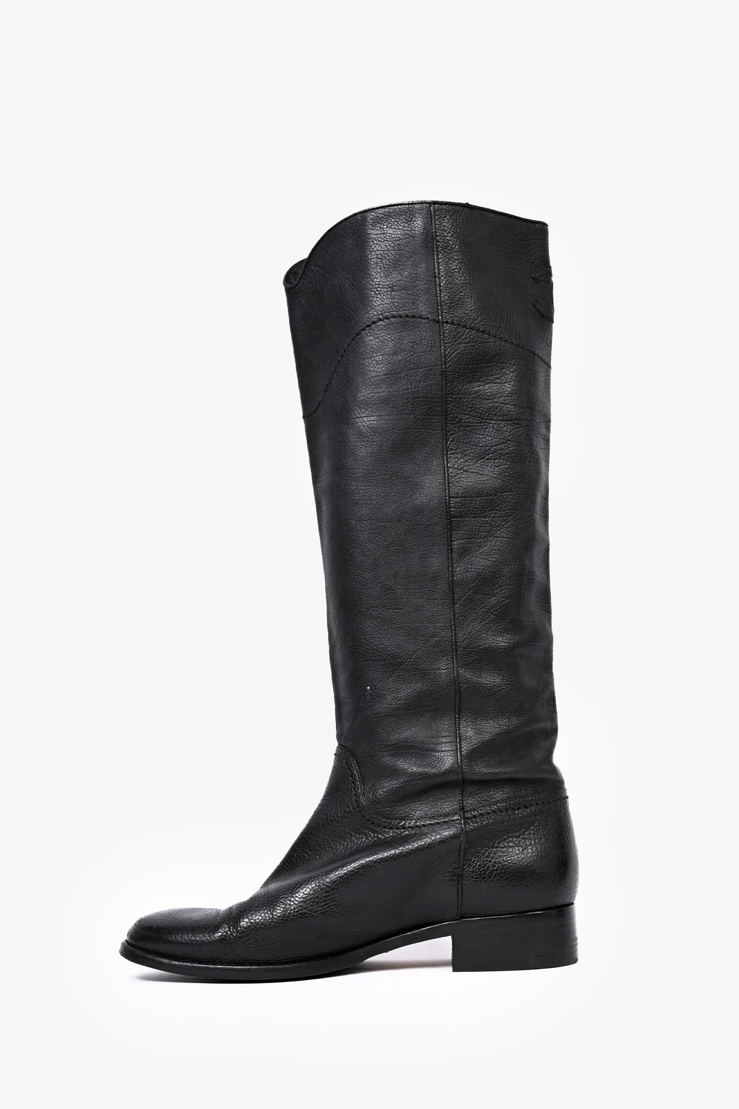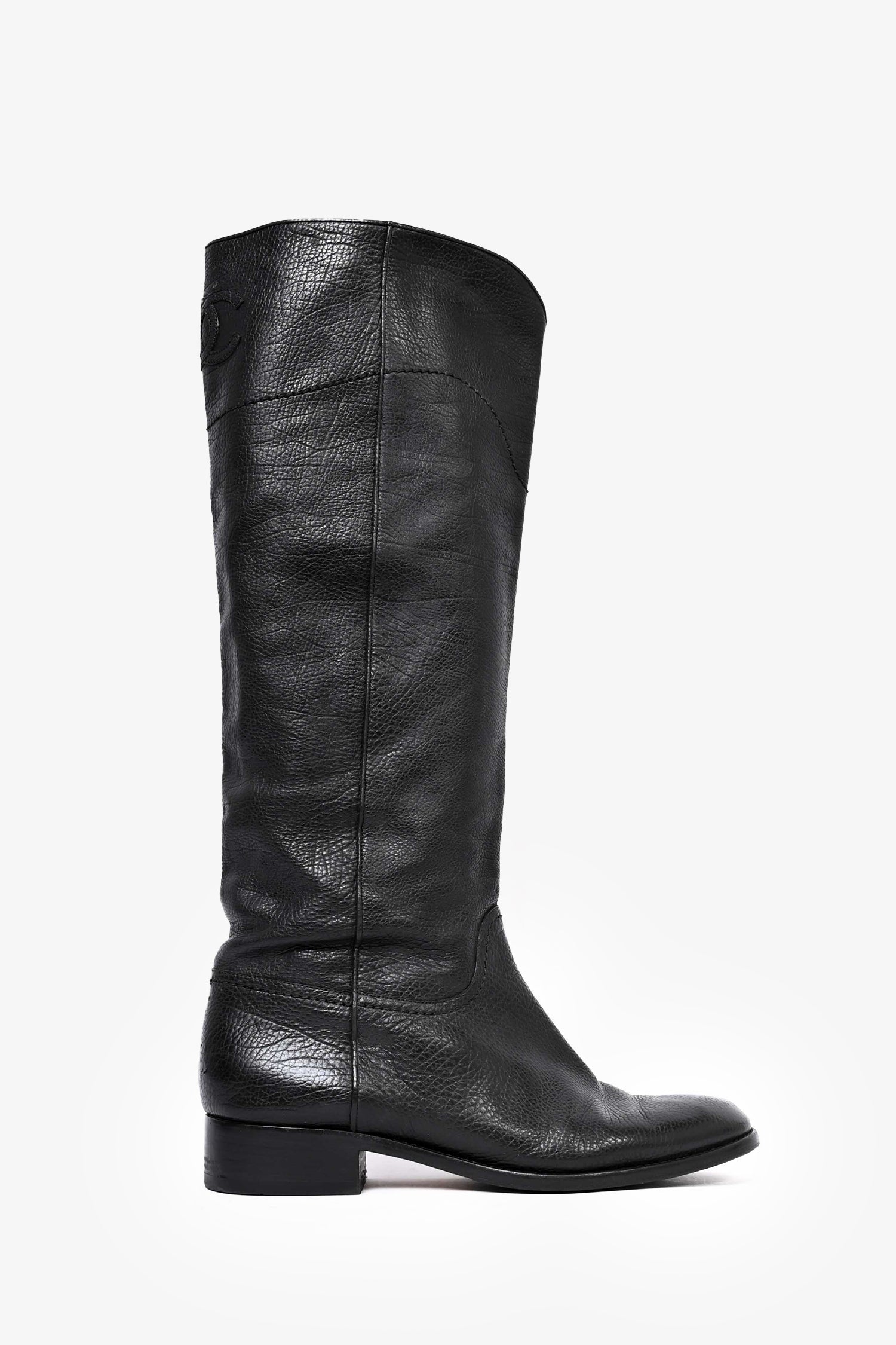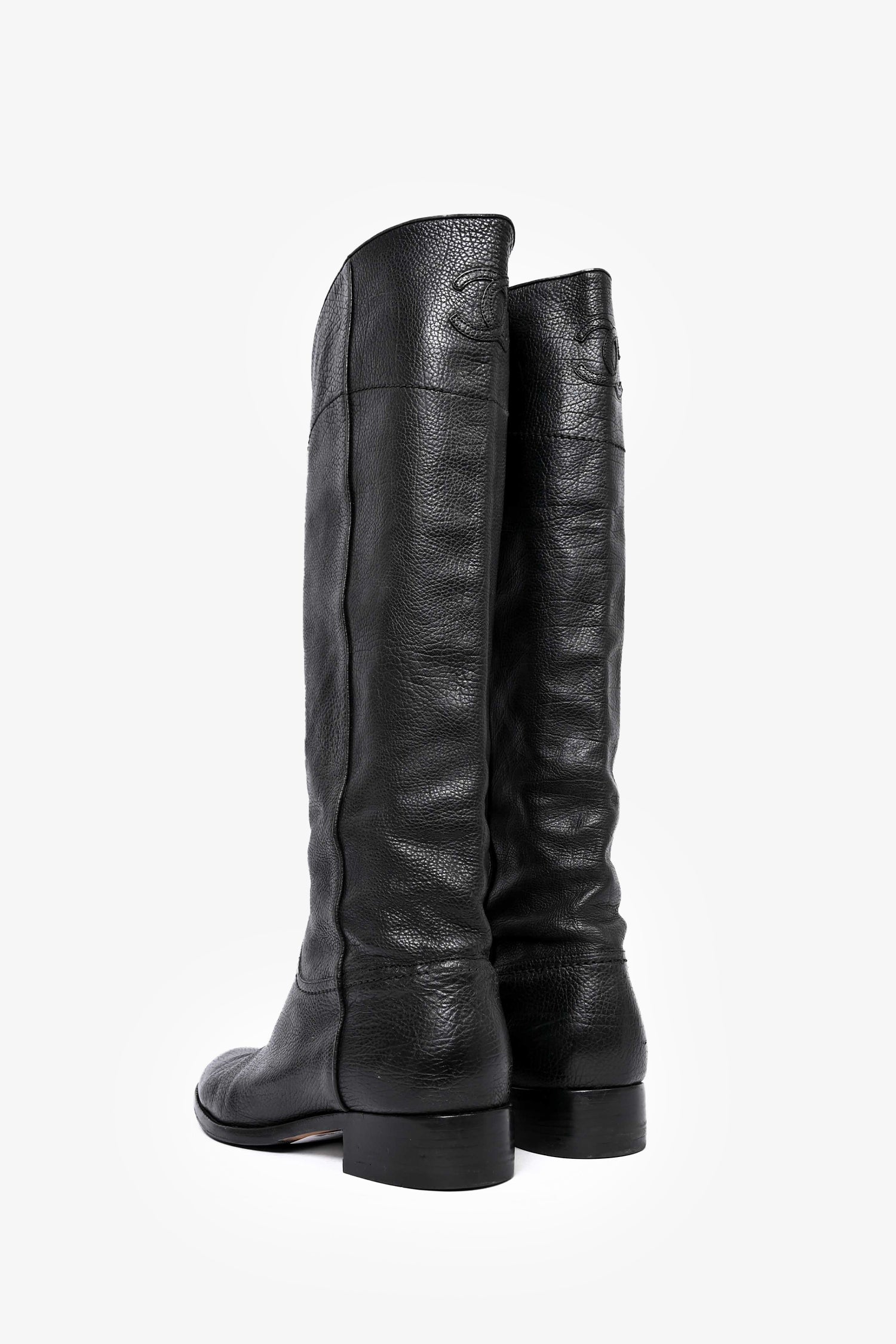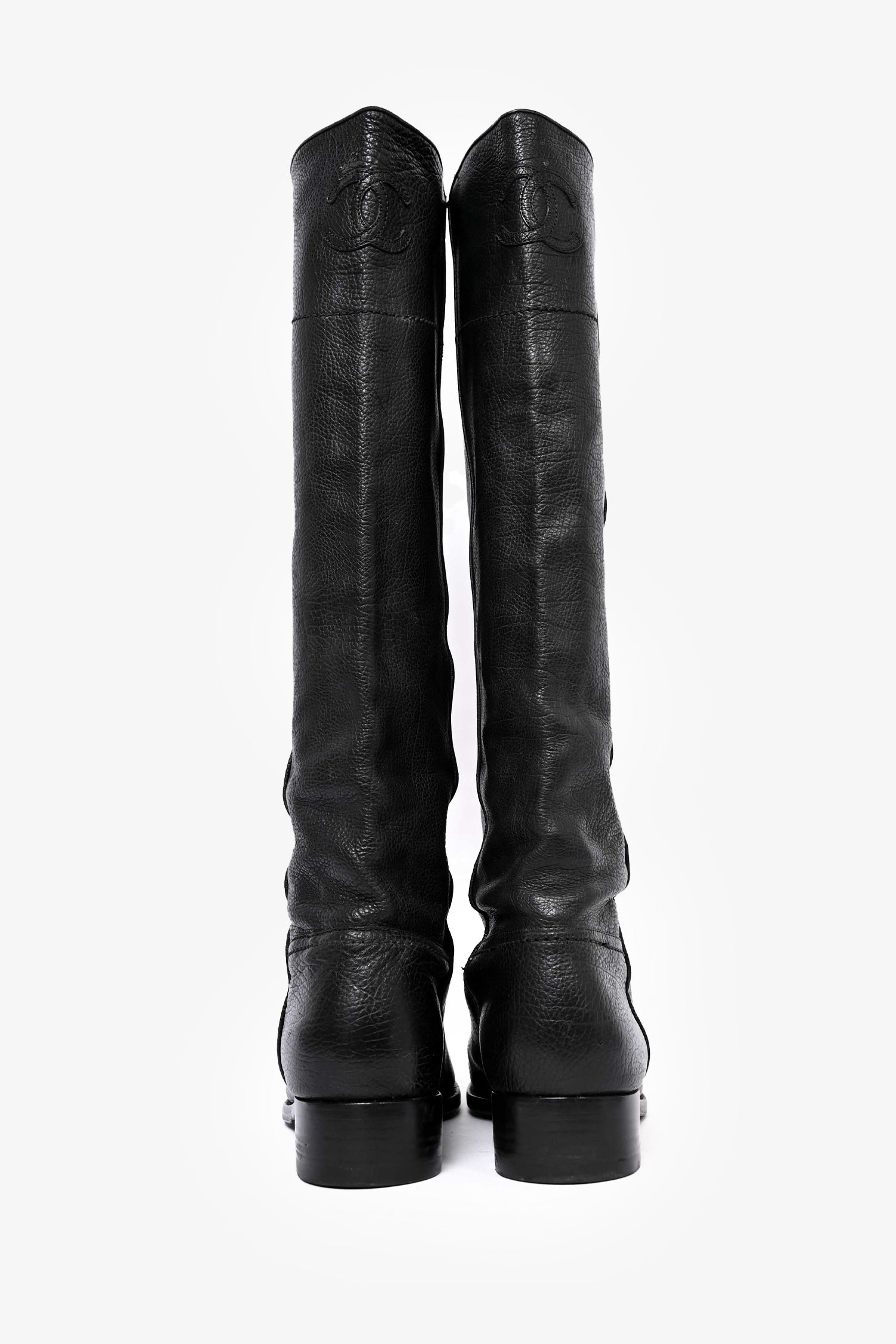 Refresh availabilityPre-Loved Chanel™ Black Leather CC Knee High Boots. Round toe. Pull-on. Topy soles.