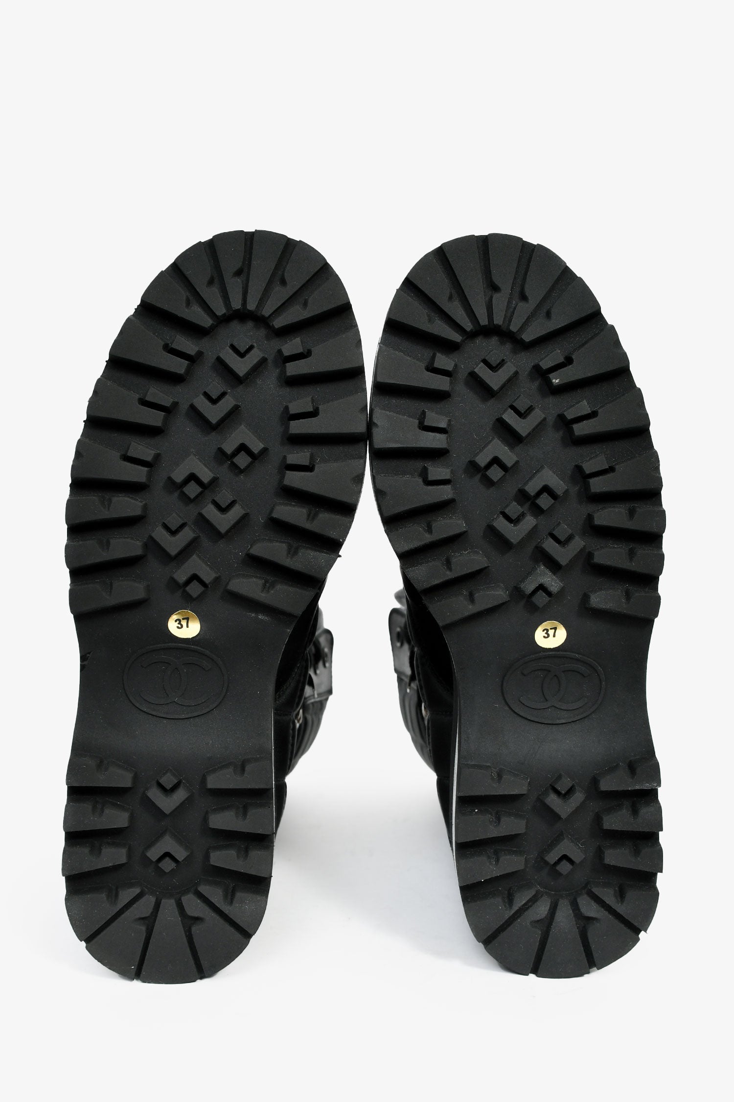 Pre-Loved Chanel™ Black Leather CC Logo Combat Boots Size 37
