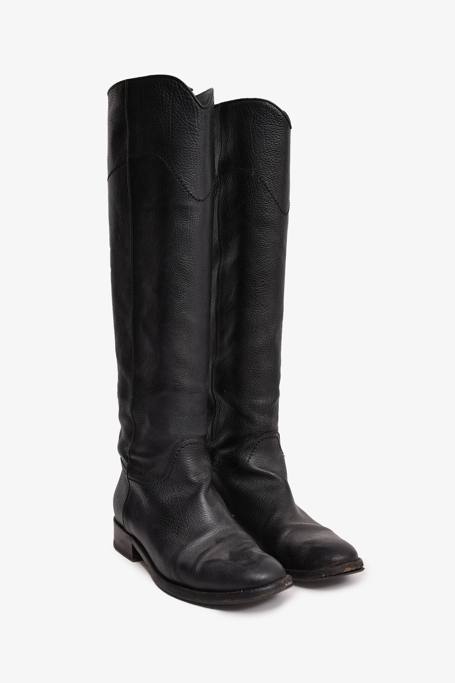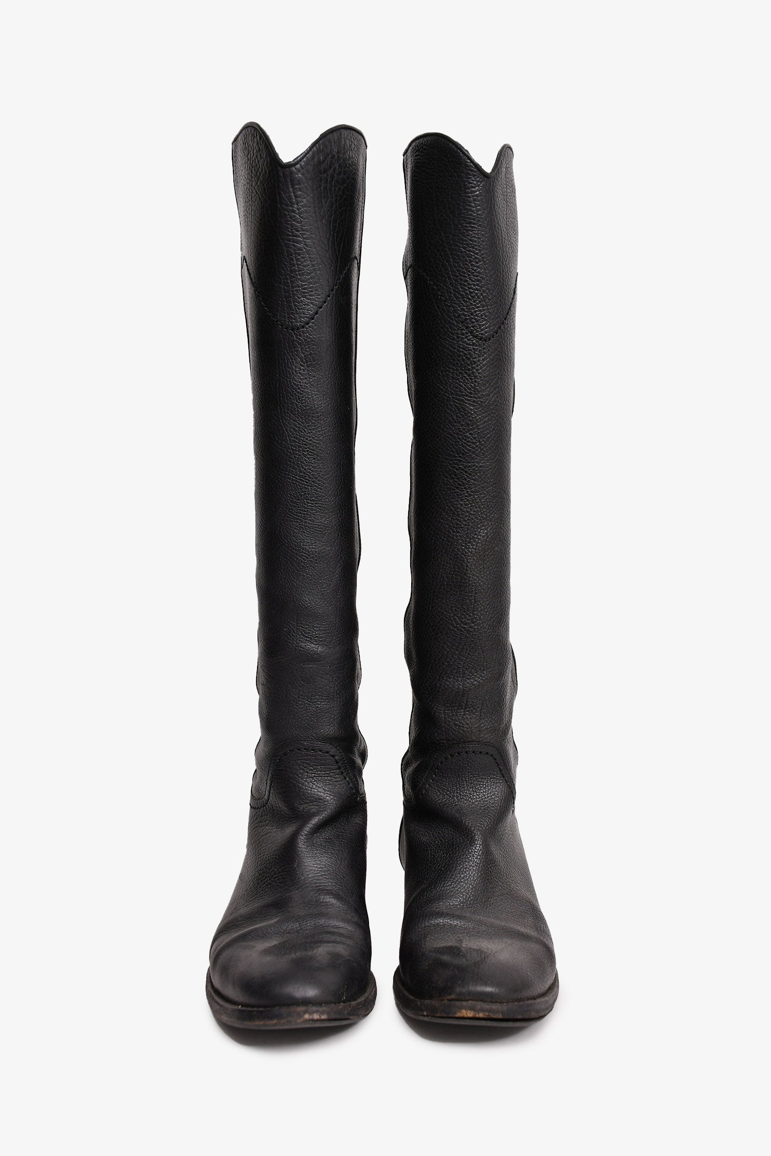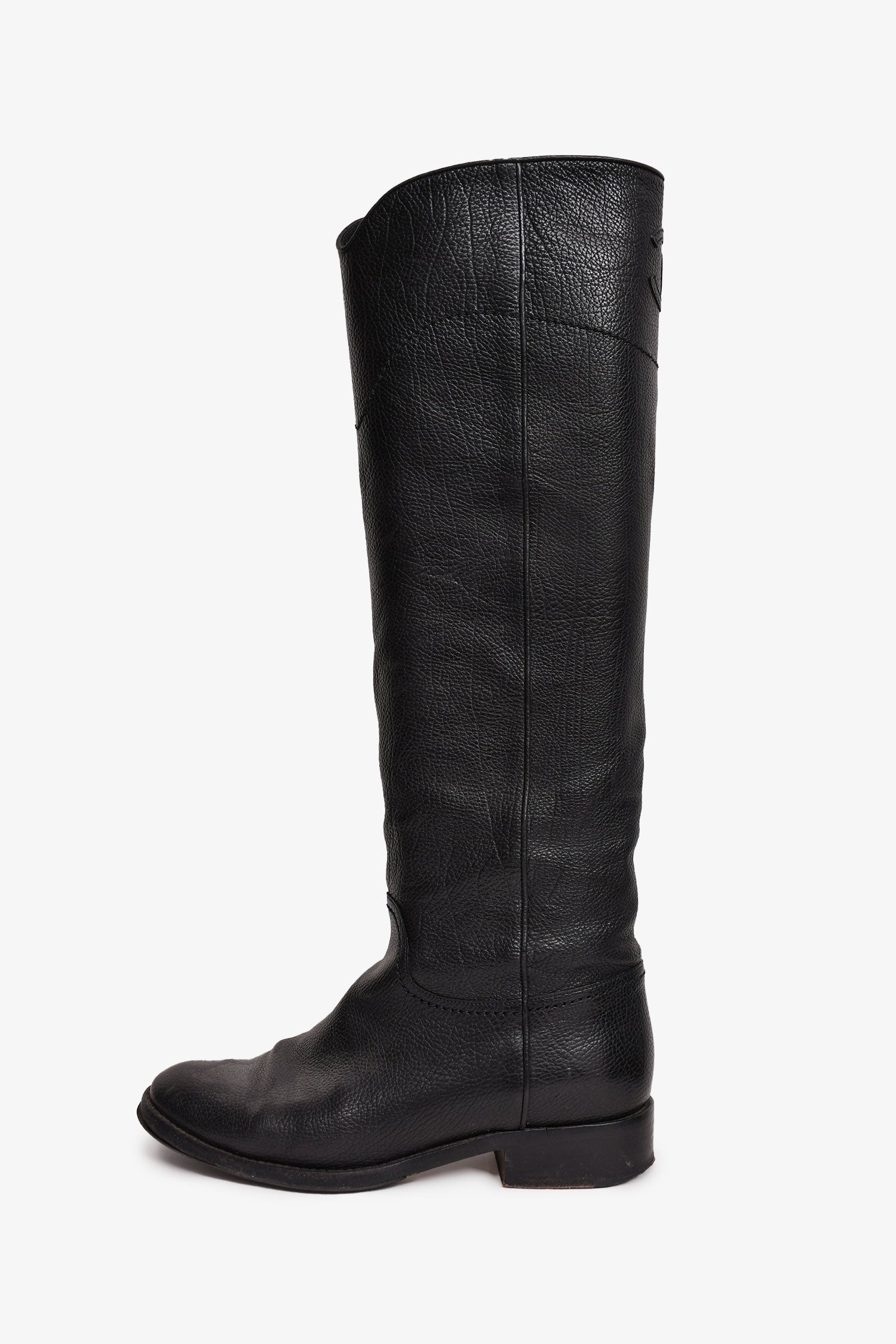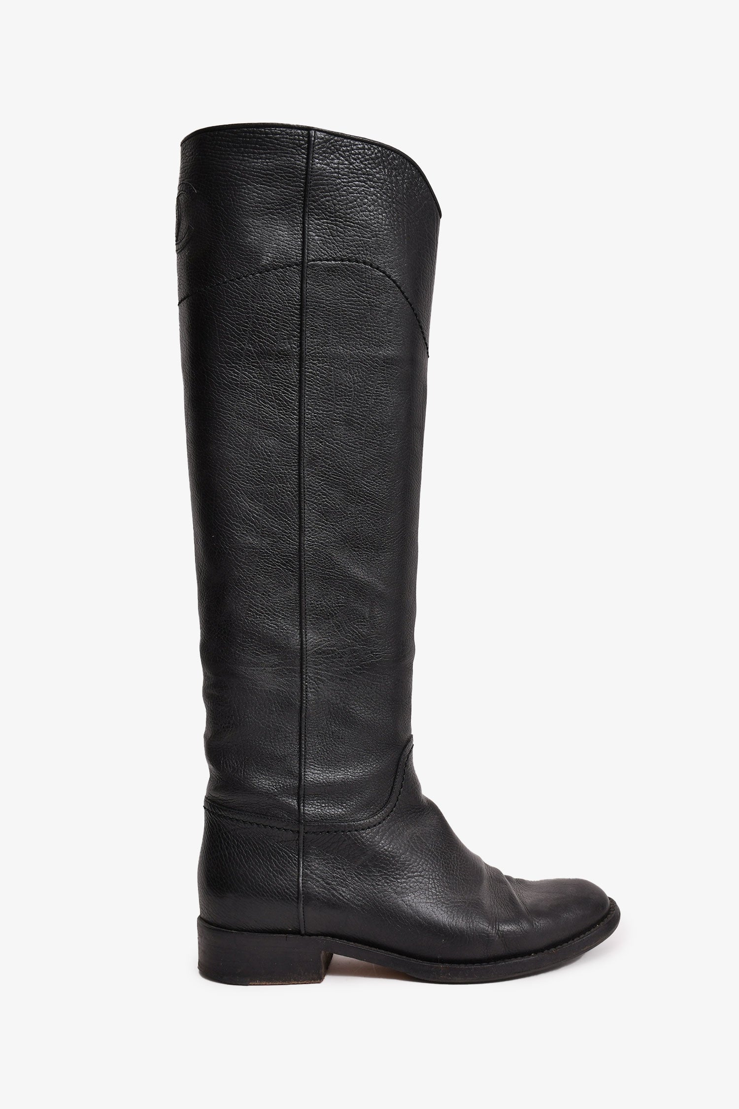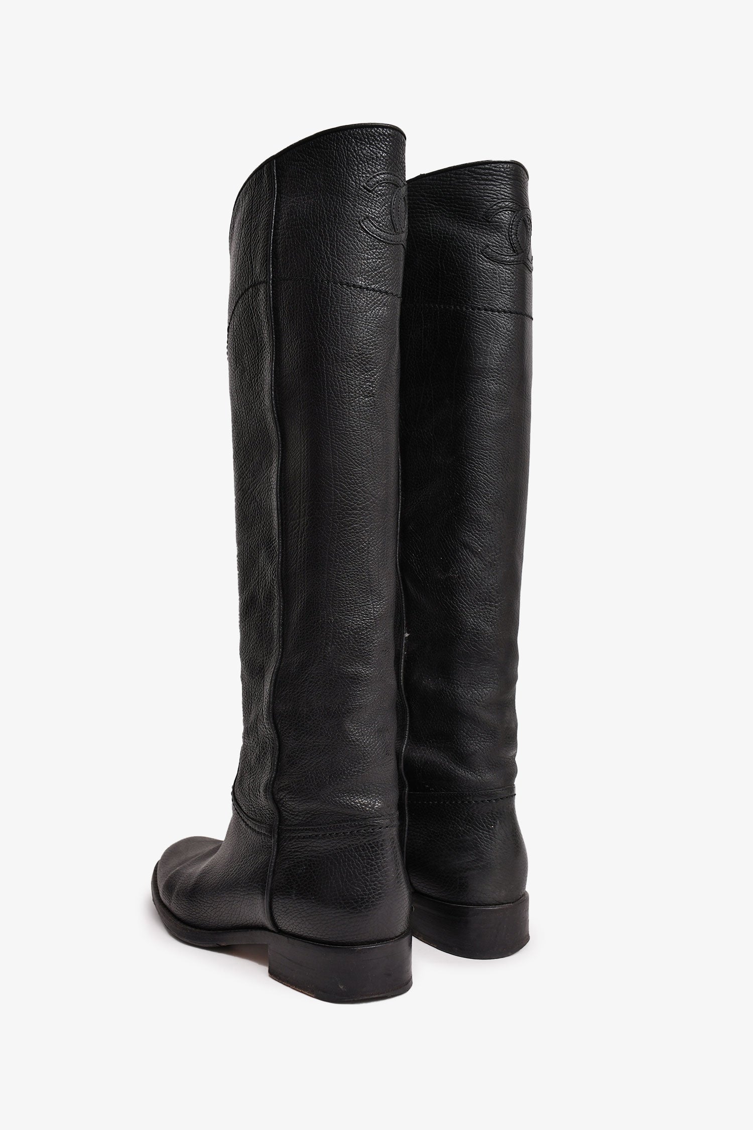 Pre-Loved Chanel™ Black Leather CC Logo Riding Boots Size 37 (As Is)
