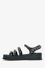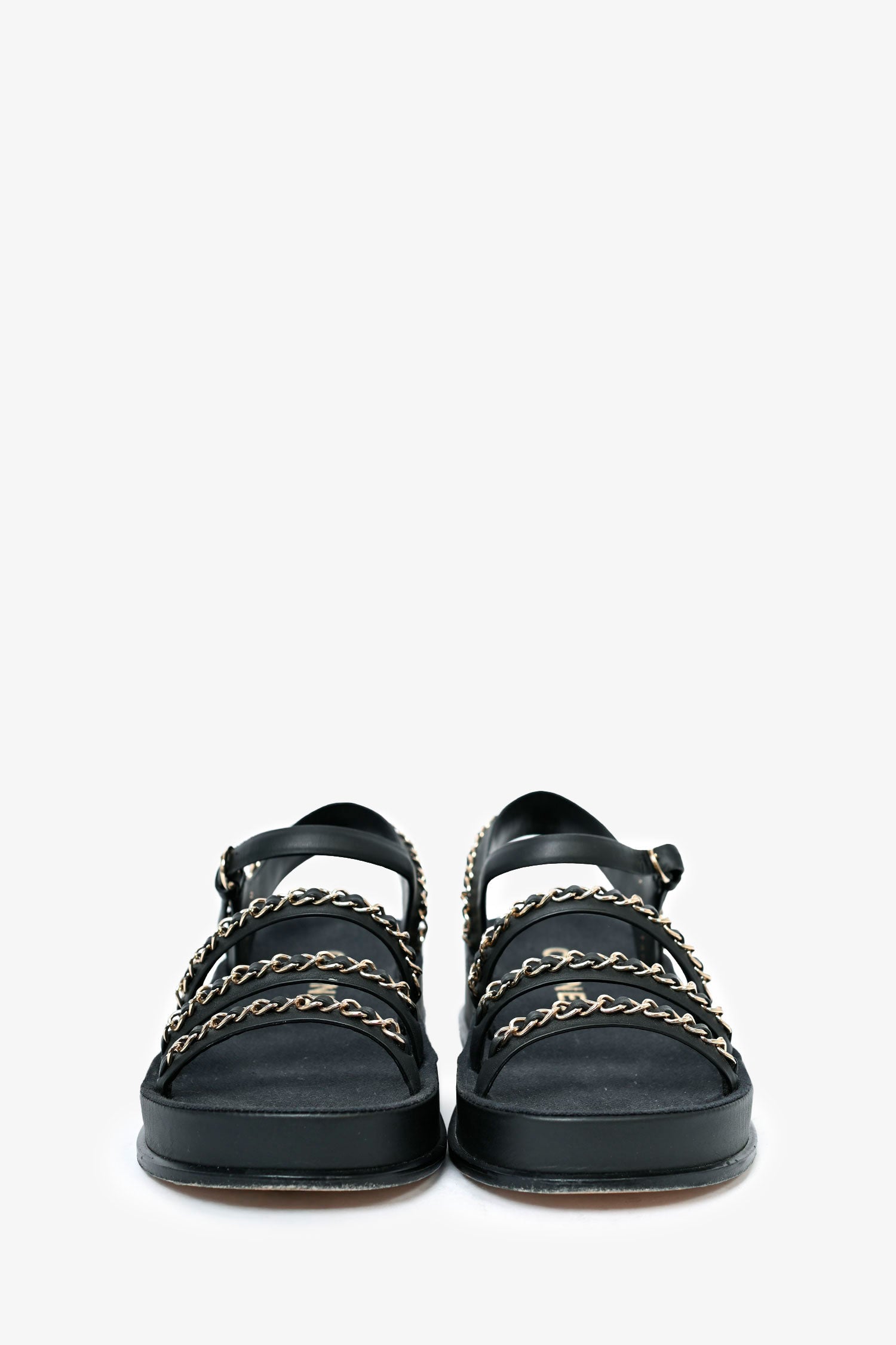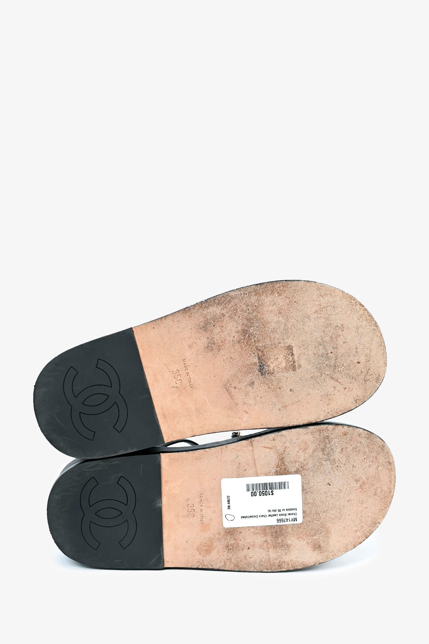 Pre-Loved Chanel™ Black Leather Chain Embellished Sandals Size 35 (As Is)