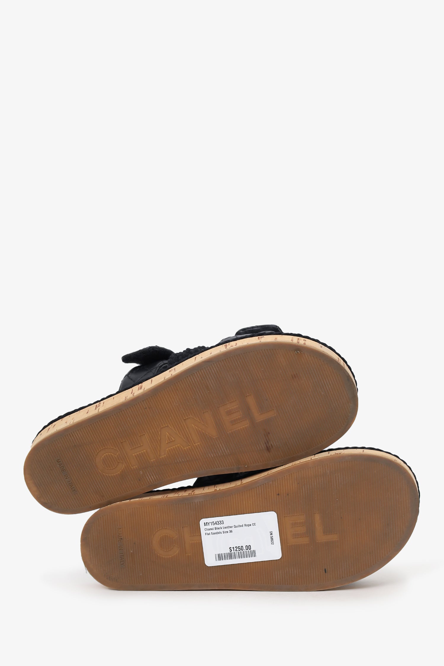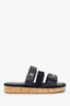 Pre-Loved Chanel™ Black Leather Quilted Rope CC Flat Sandals Size 36