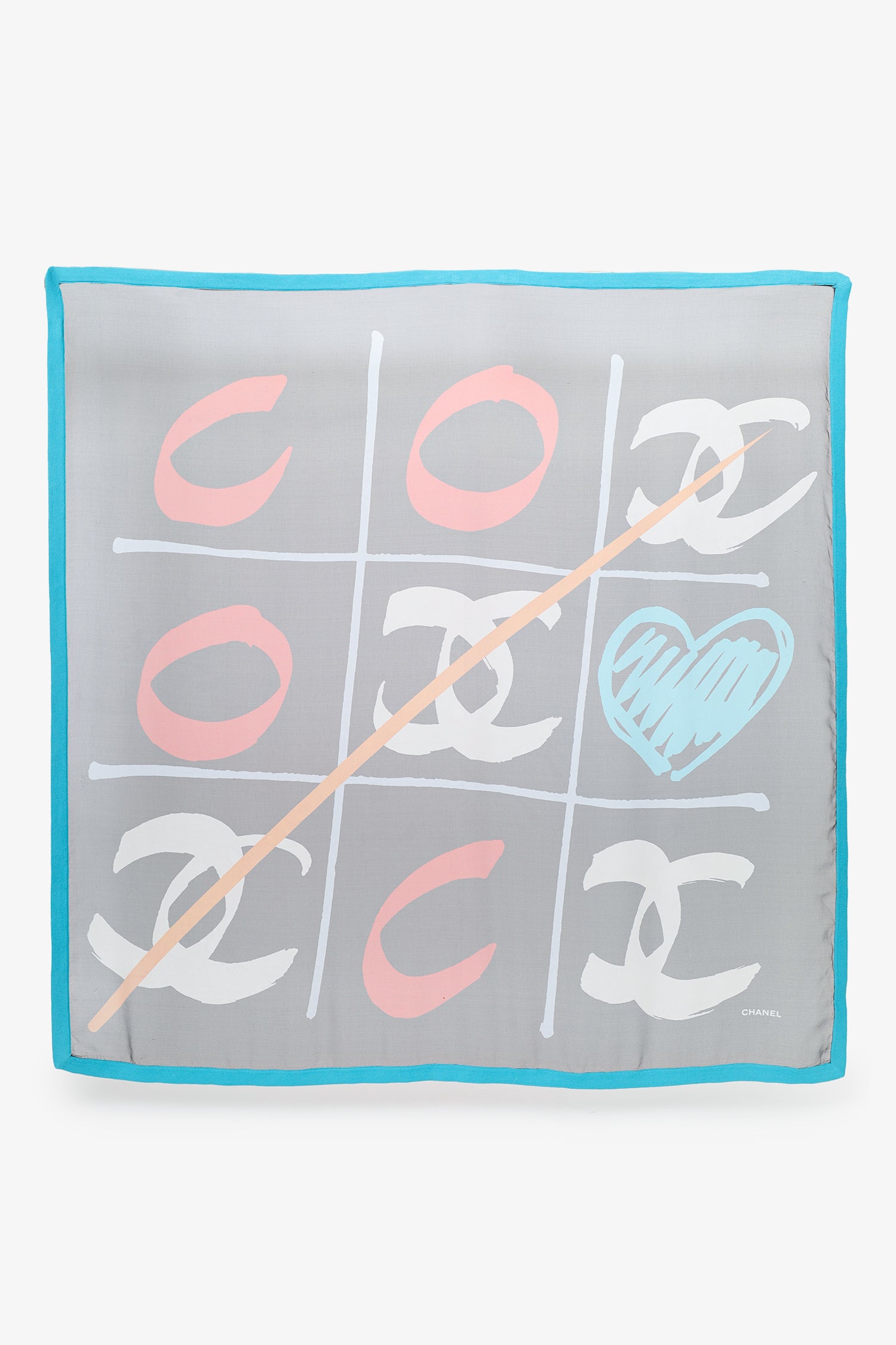 Pre-Loved Chanel™ Black/Multicolour Silk CC Chiffon Game Scarf