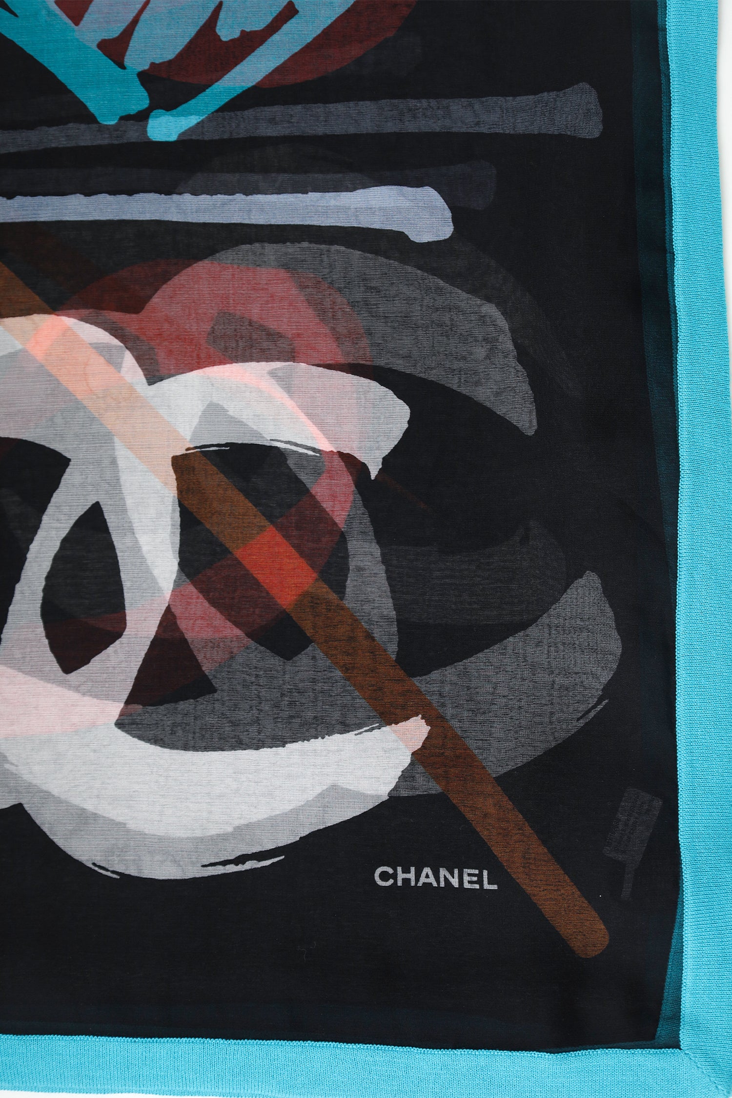 Refresh availabilityPre-Loved Chanel™ Black/Multicolour Silk CC Chiffon Game Scarf. Tonal stitching.