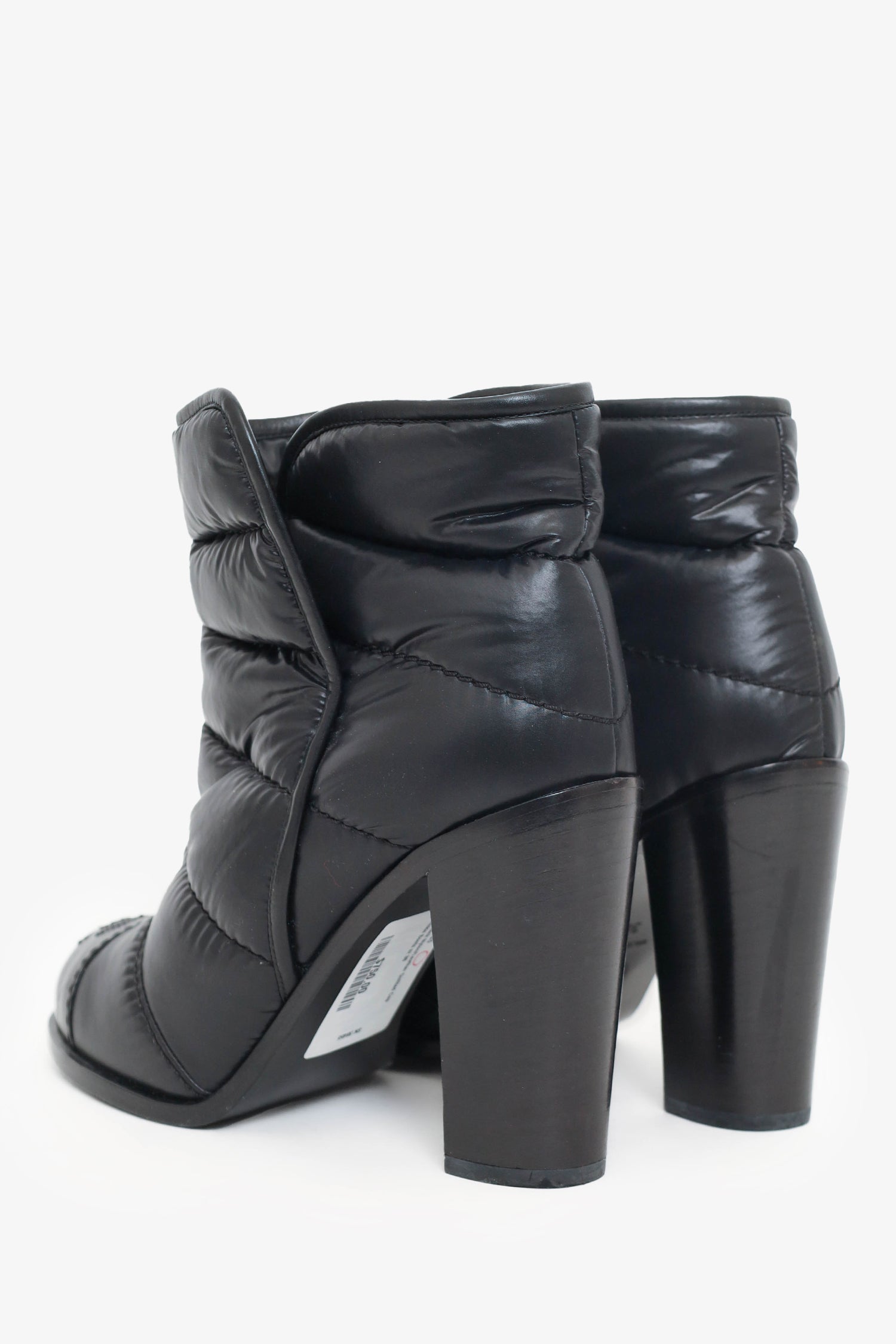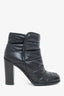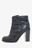 Pre-Loved Chanel™ Black Nylon/Leather Quilted Cap Toe Ankle Boots Size 38