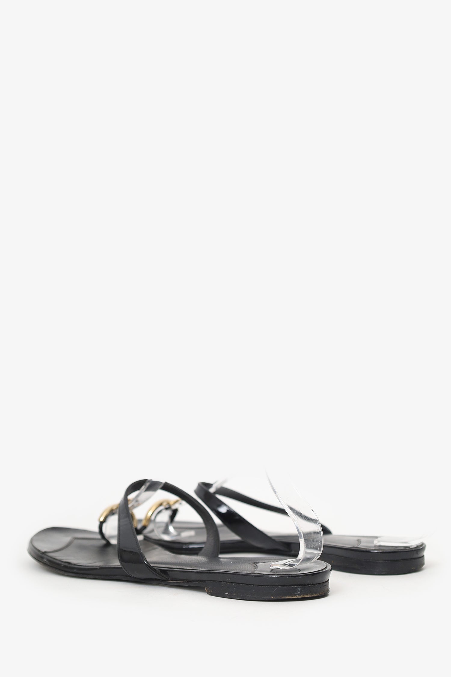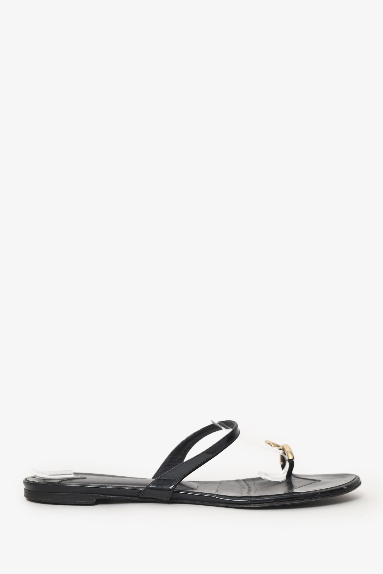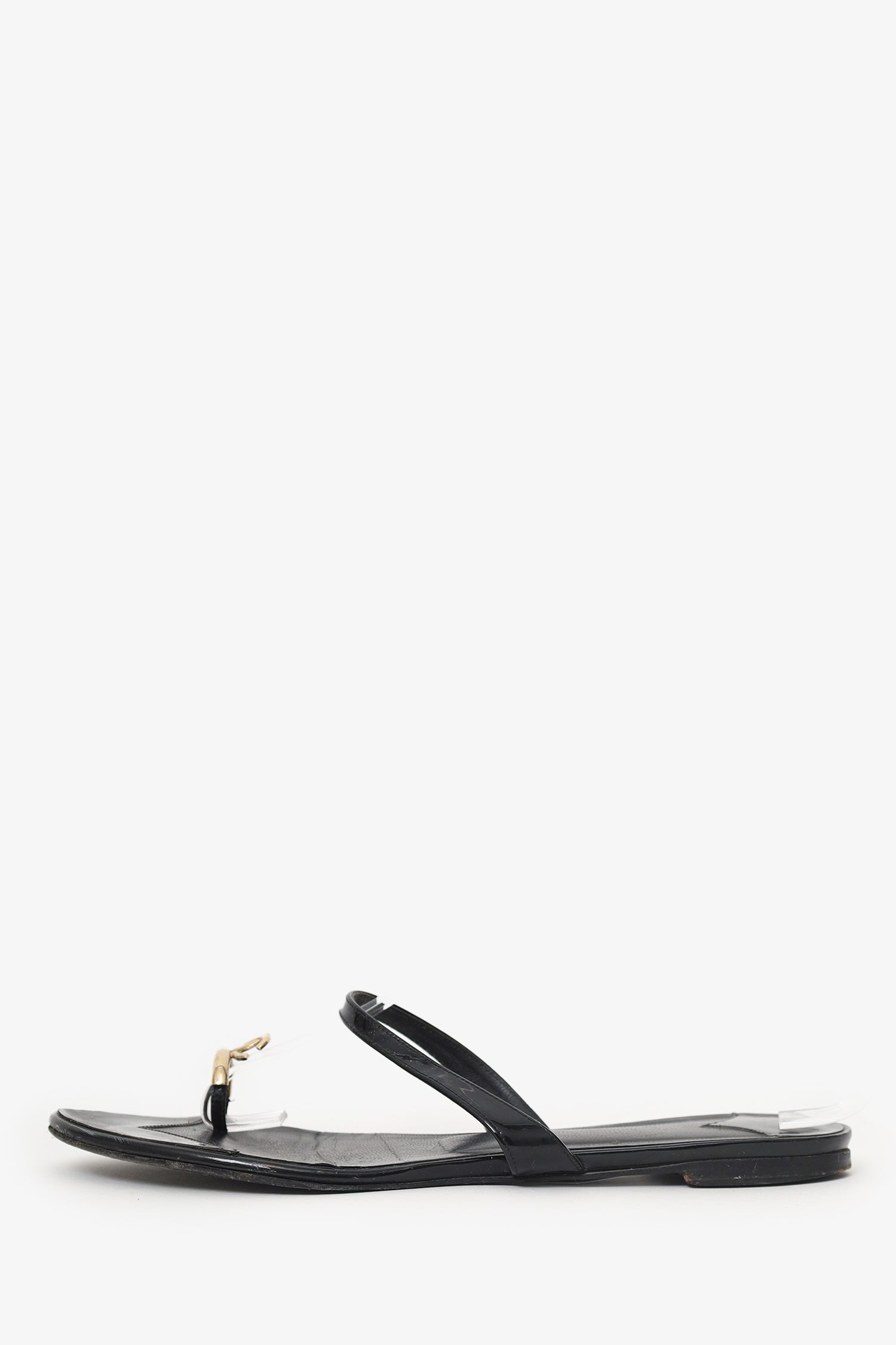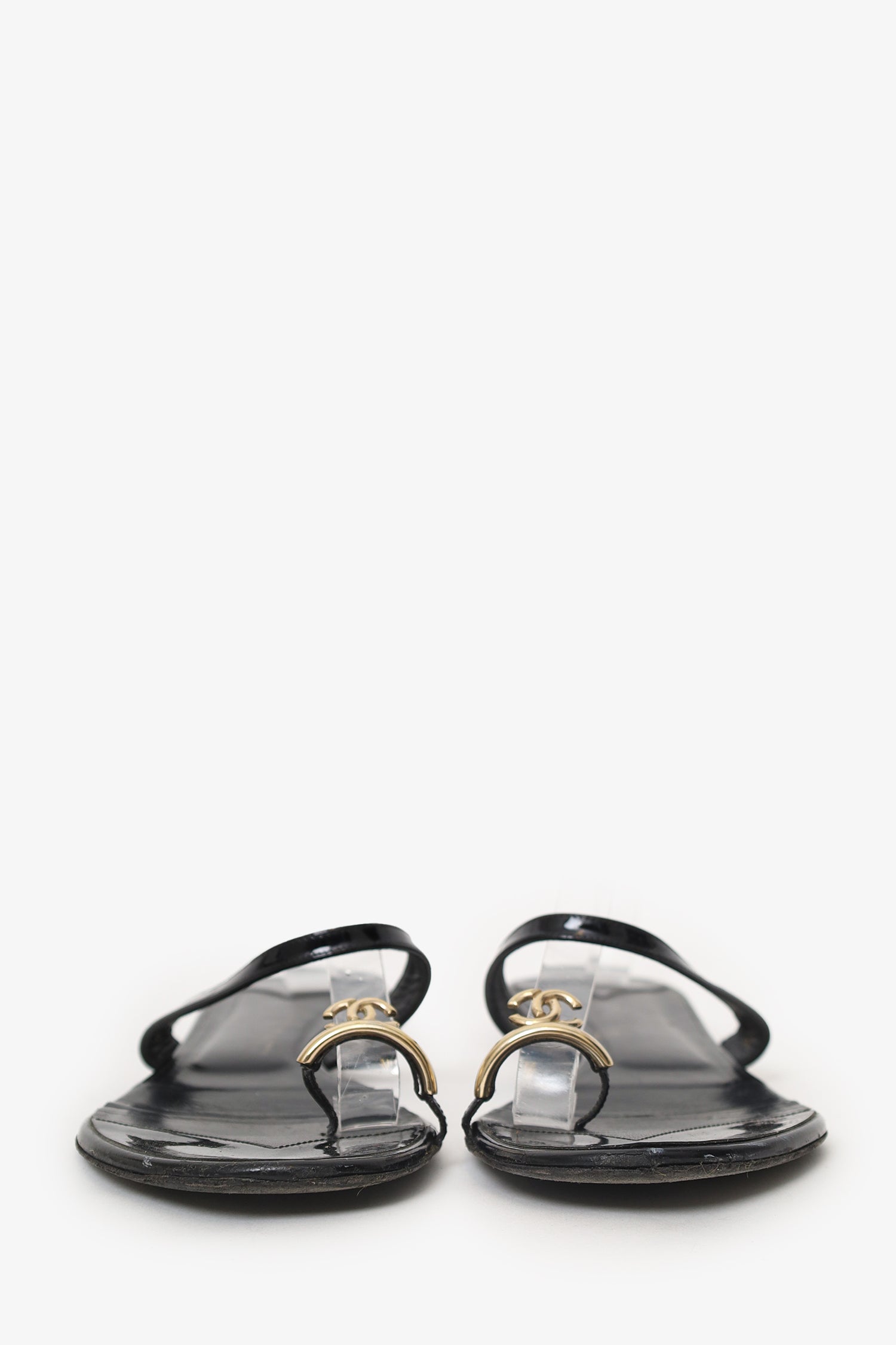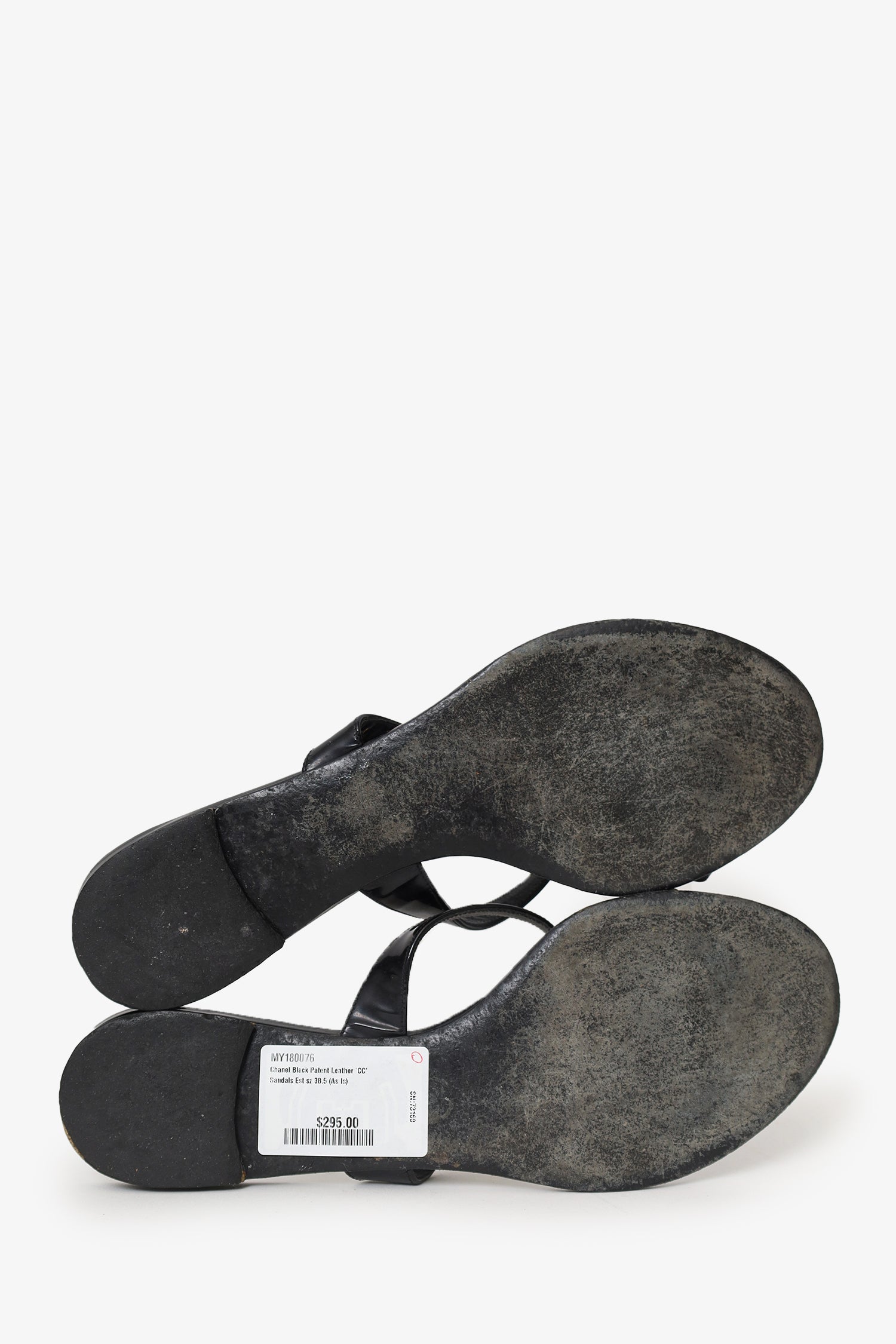 Pre-Loved Chanel™ Black Patent Leather 'CC' Sandals Estimated Size 38.5