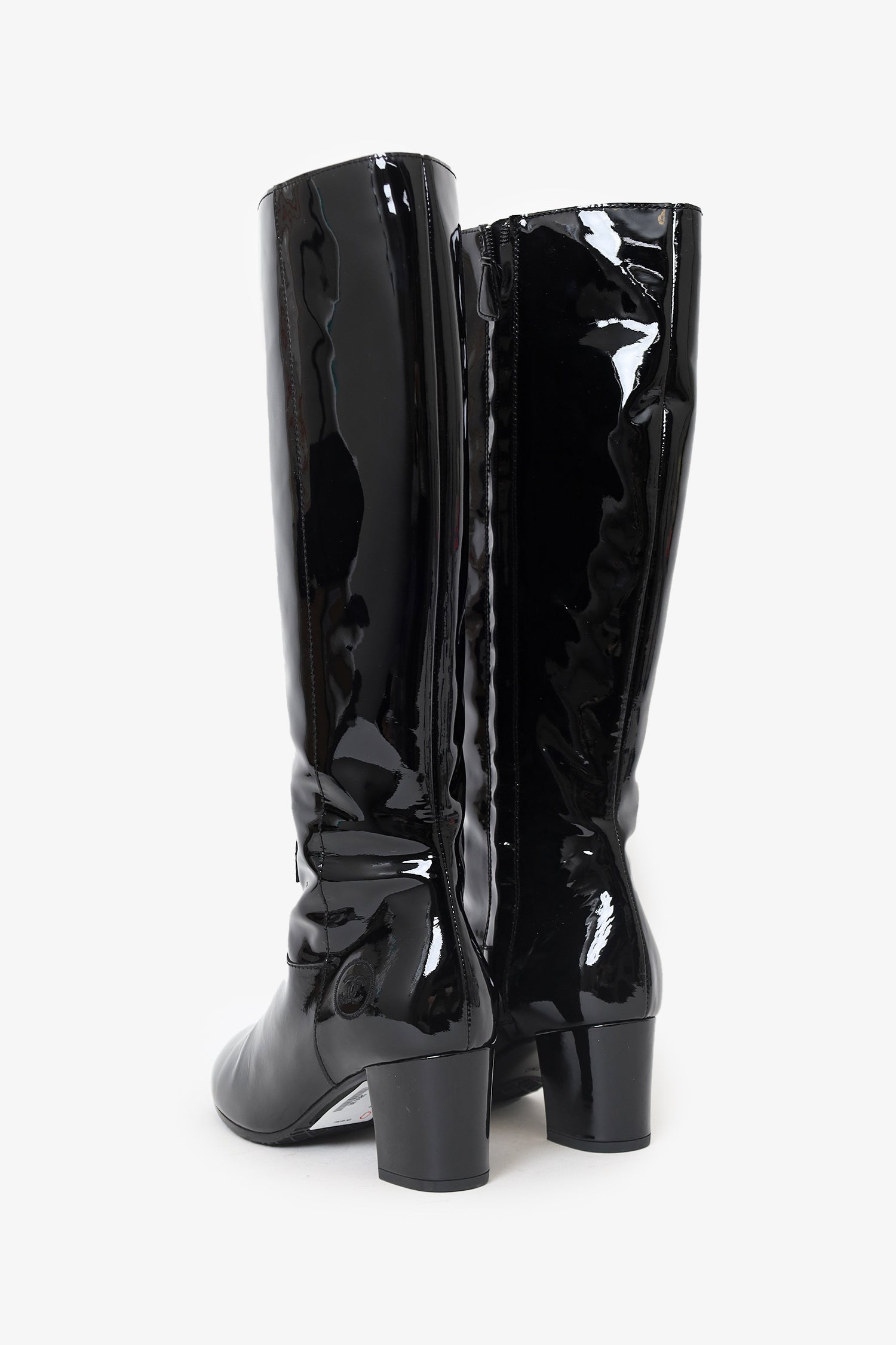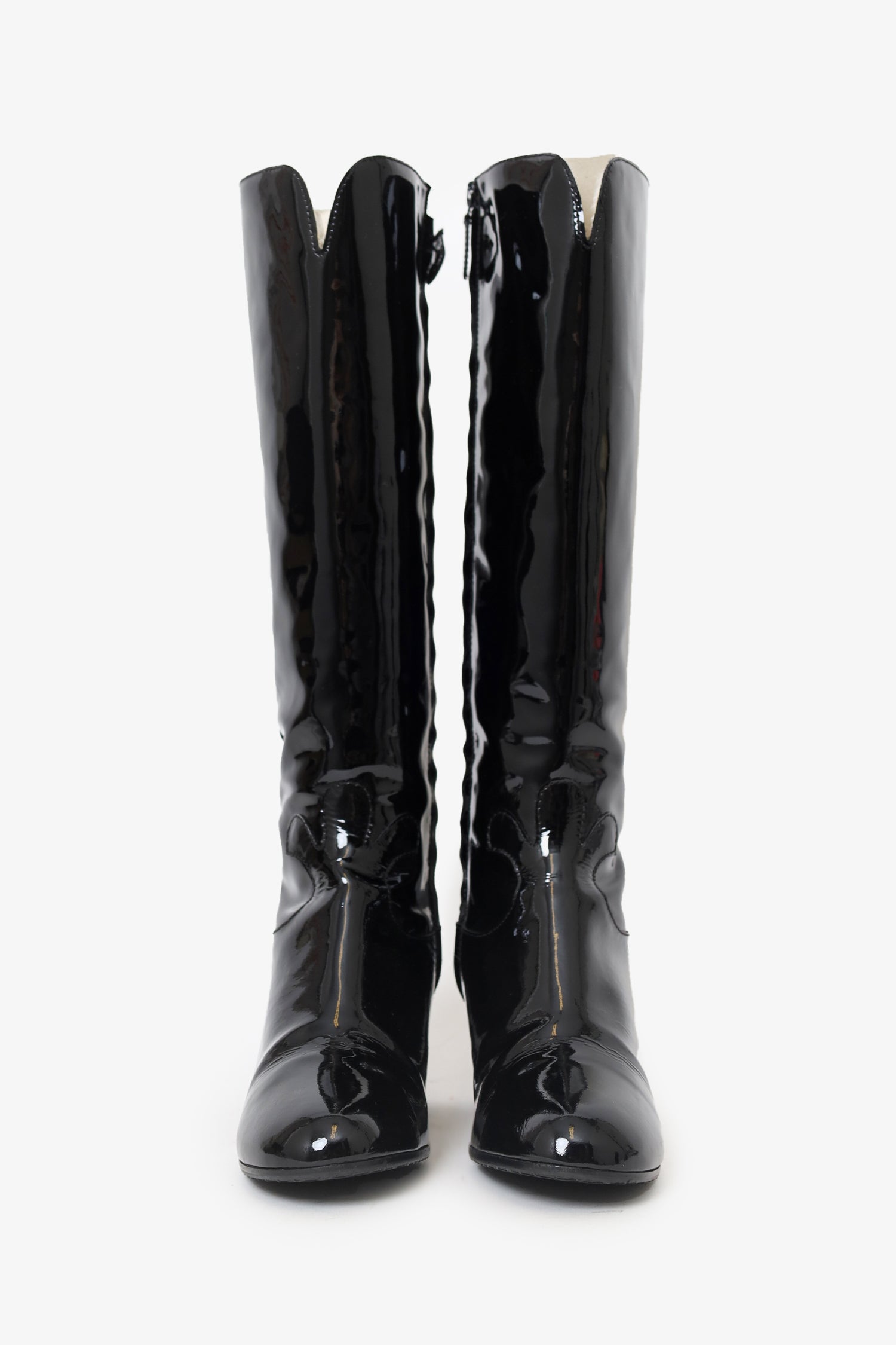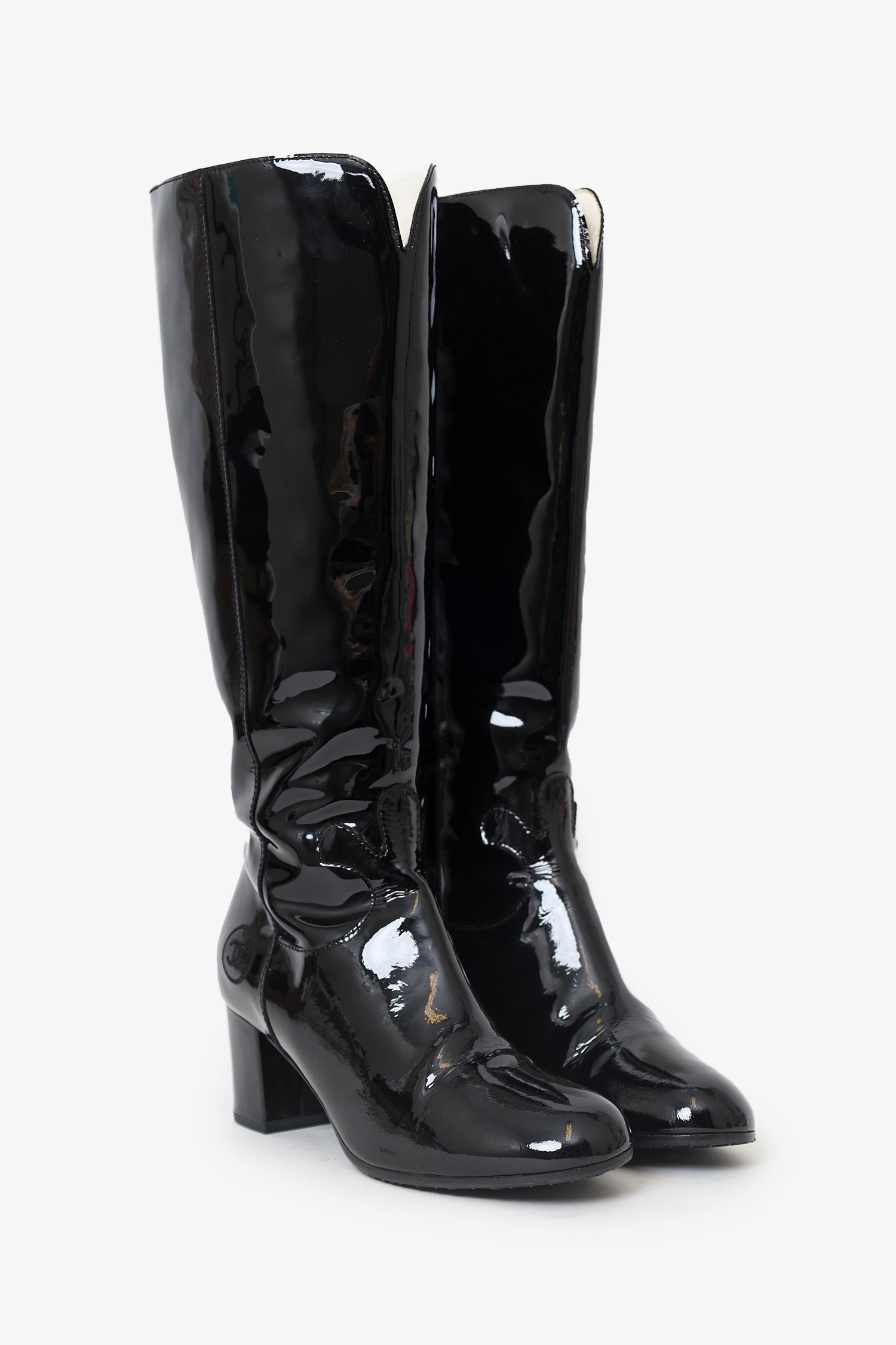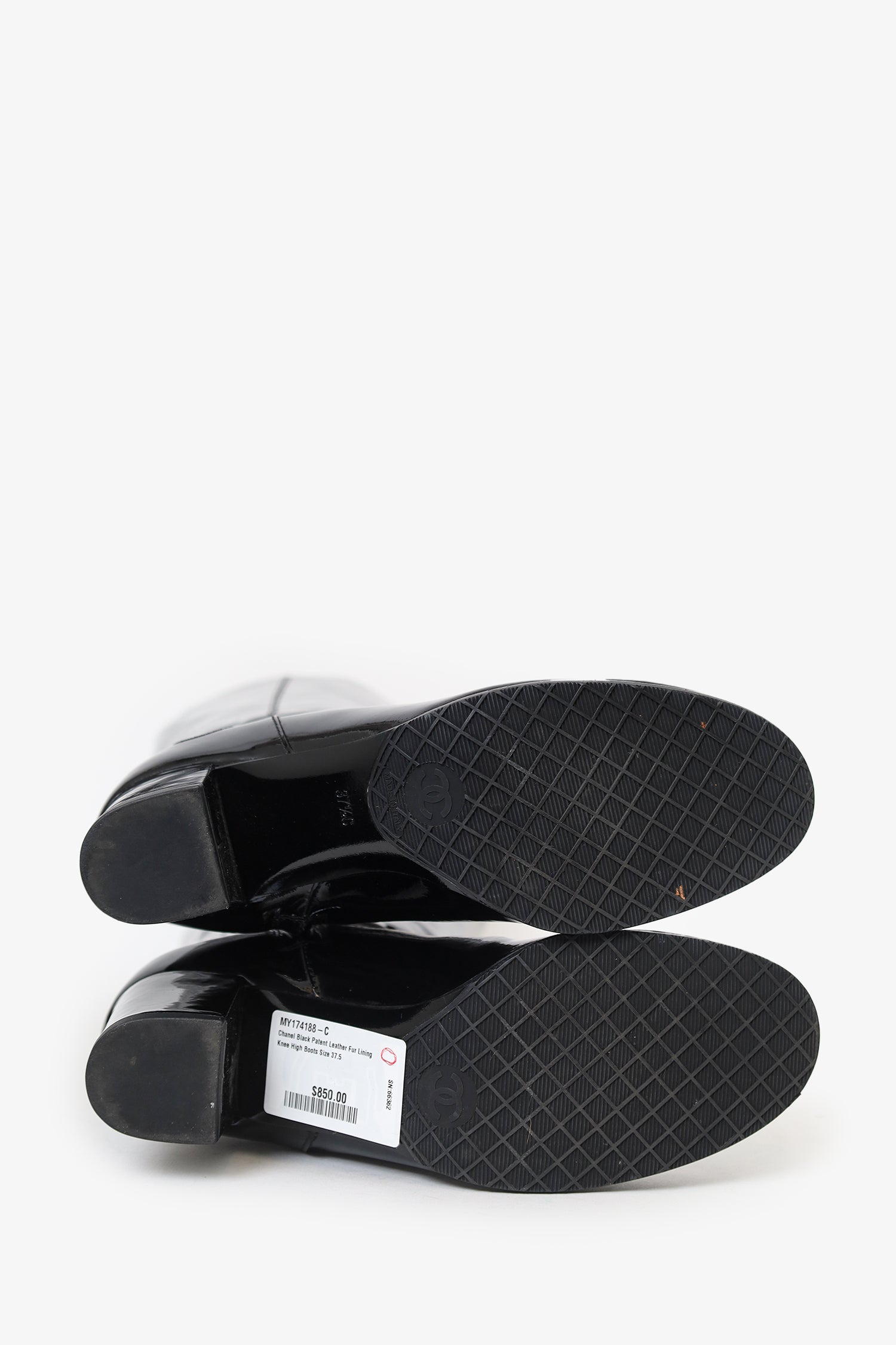 Pre-Loved Chanel™ Black Patent Leather Fur Lining Knee High Boots Size 37.5